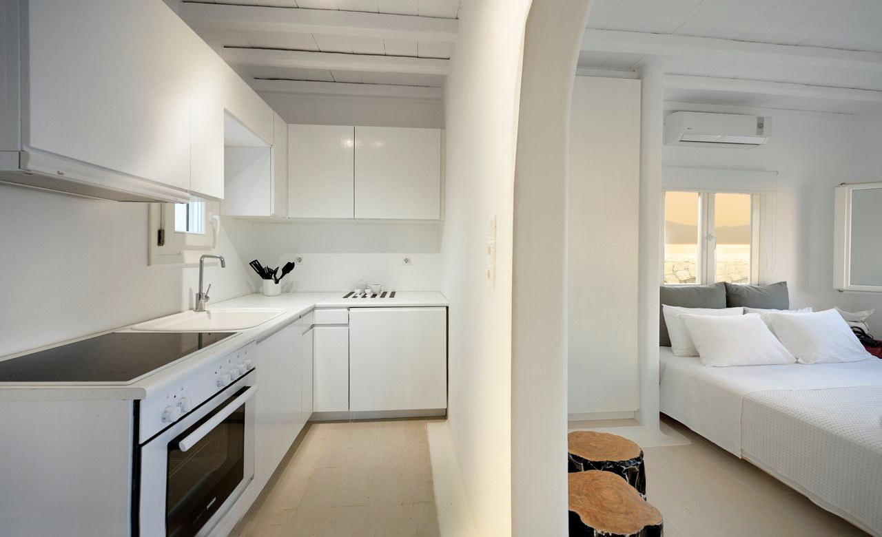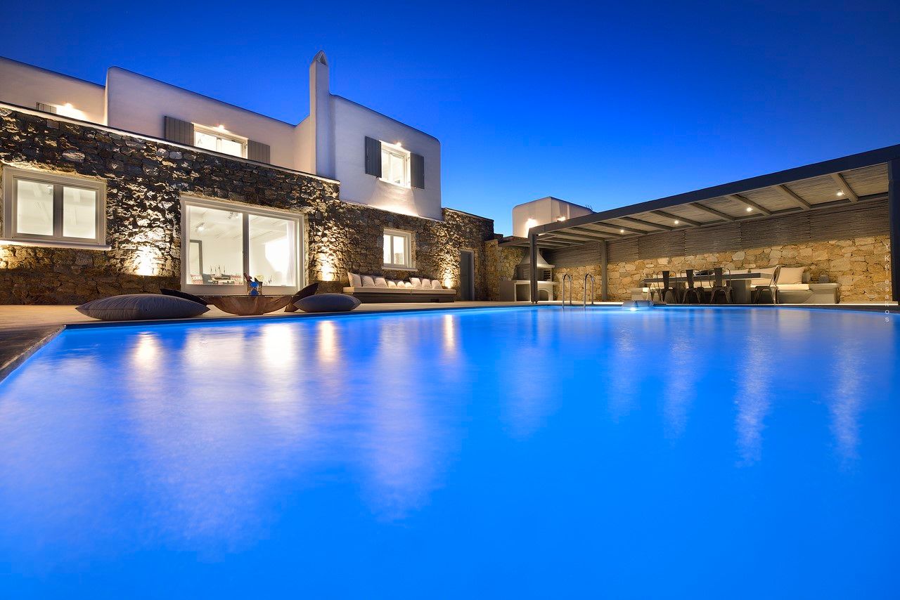 Mykonos Town, while lounging in the private pool.