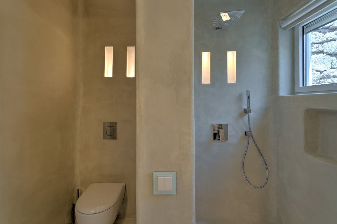 The 5-bedroom private villa is newly built, located just above Platis Gialos combining some of the most sought-after features for a holiday getaway. The property is reached by a narrow street and perched just above the beach of Platis Gialos which literally a few steps away from the front door.
