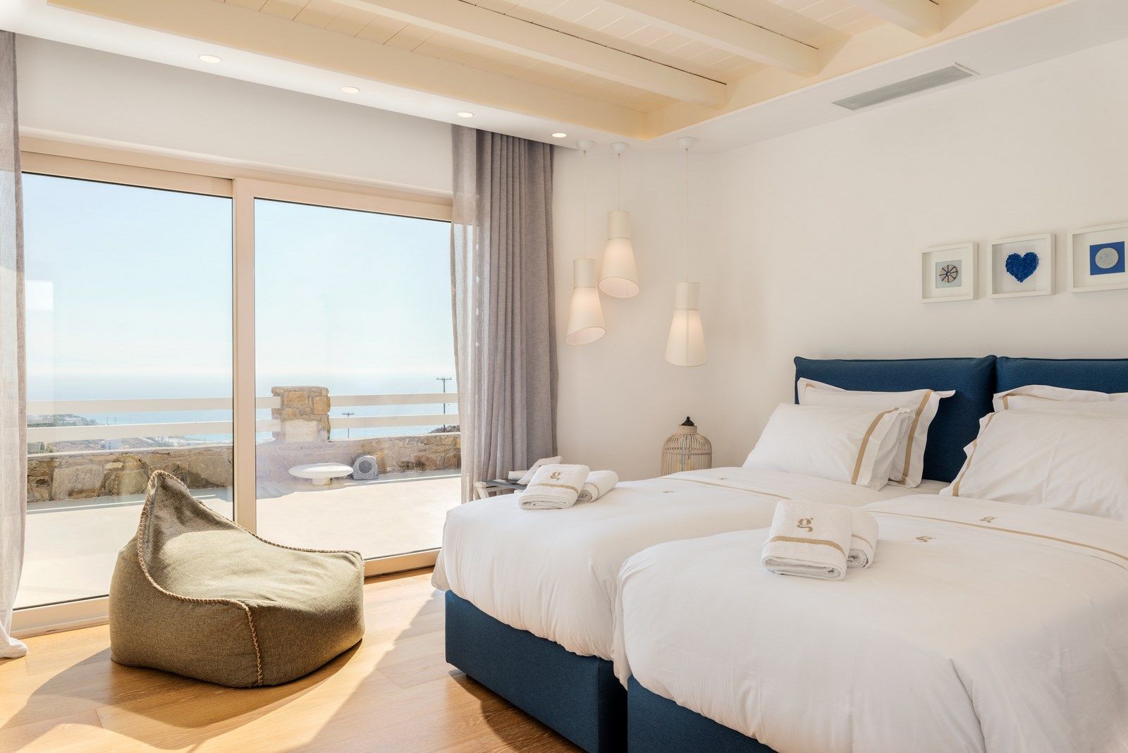 Villa Nicole reflects the spirit of a cosmopolitan island, making it ideal for guests who want to experience Mykonos in private, yet ultra-luxurious mode. The villa is formed in 2 levels, featuring 4 en-suite bedrooms, including two very spacious suites with transparent wall bathrooms and two twin bedrooms.