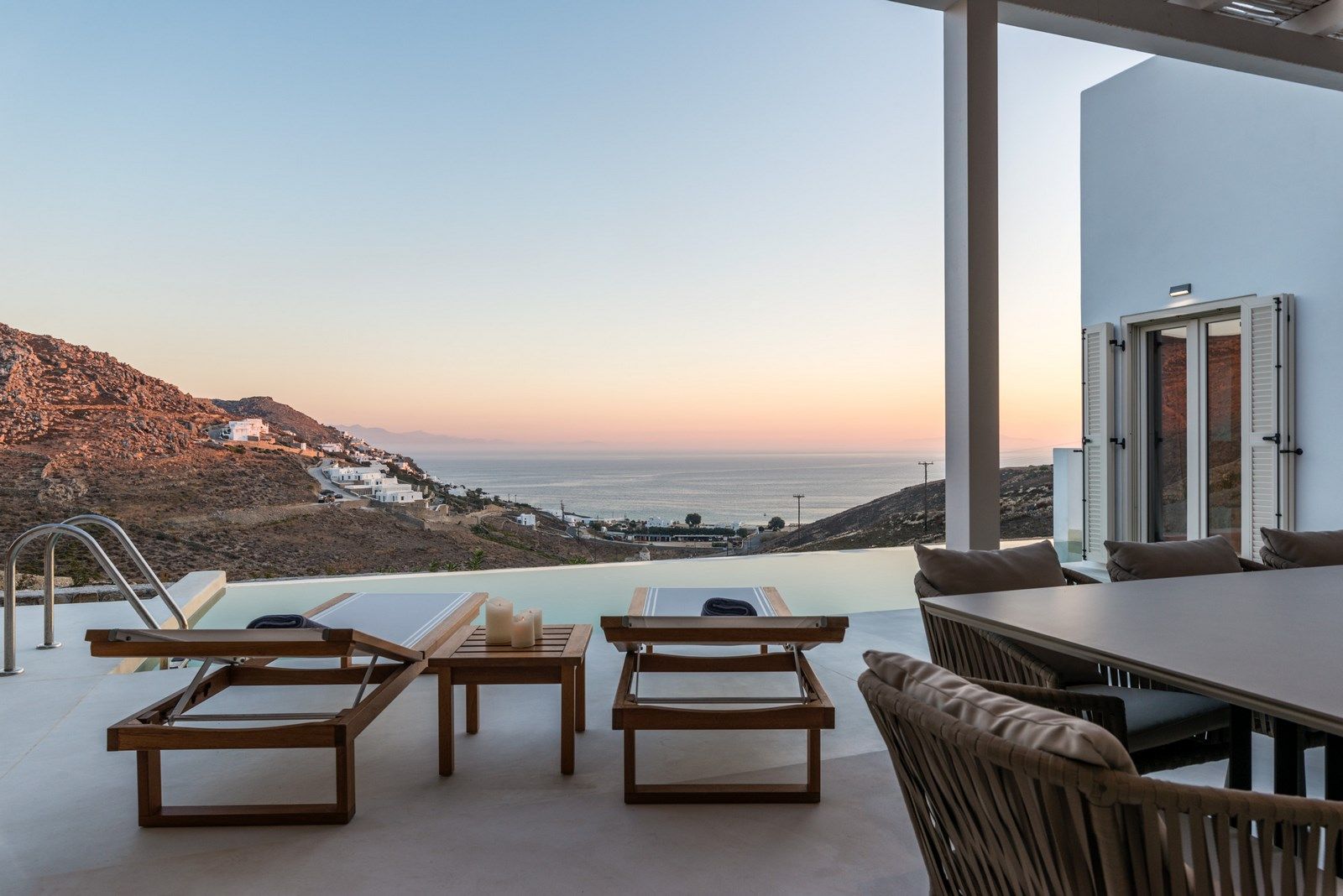Villa Nicole is located in an ideal location in the Cycladic island of Mykonos. It boasts an incomparable panoramic position on the hillside of Elia Beach with stunning, uninterrupted, views of the Aegean Sea and the beauty of the surrounding Myconian landscape.