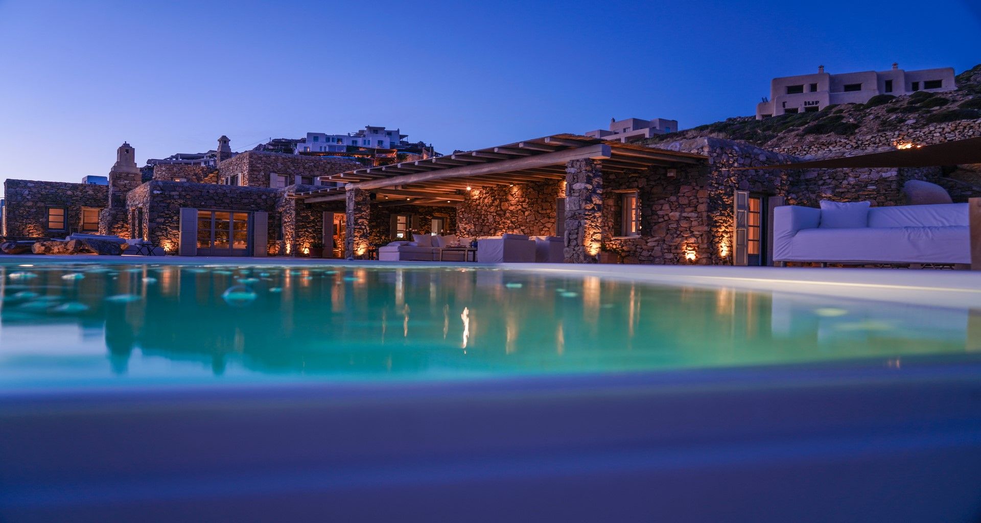 Villa Sandstone is a beautiful 400 sq.m stone-built villa with 7 bedrooms at the area of Kastro, with amazing sea and sunset view, the perfect option for your vacations in Mykonos! The property is located in a 9000 sqm plot, close to Agios Stefanos beach, Mykonos’ new port, Mykonos Town (Chora) and Choulakia Bay, with uniquely shaped pebbles of natural interest are close.