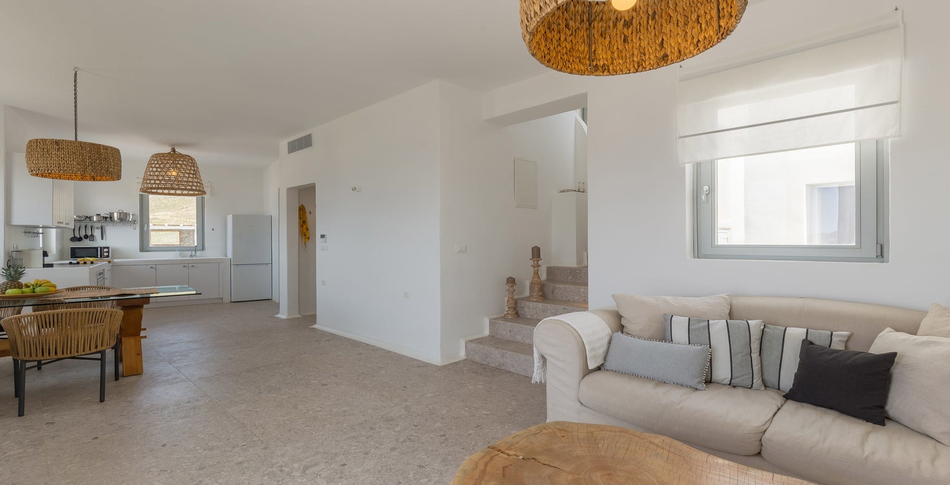 Admire-or join- the surfers and rub shoulders with the boho chic set at Ftelia beach just a minute away; or stay in and chill out at this quietly luxurious home away from home.