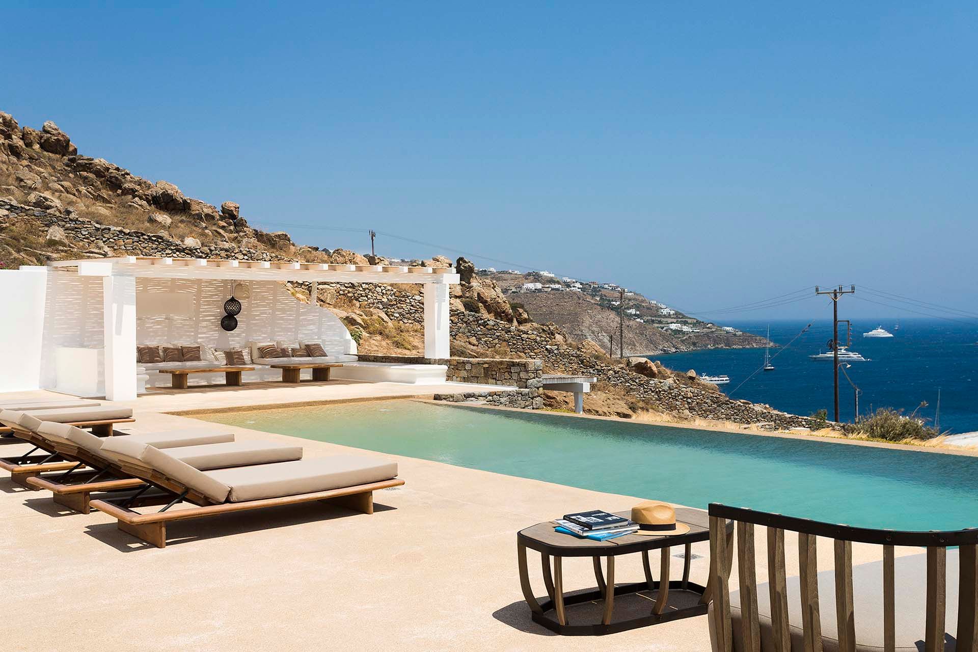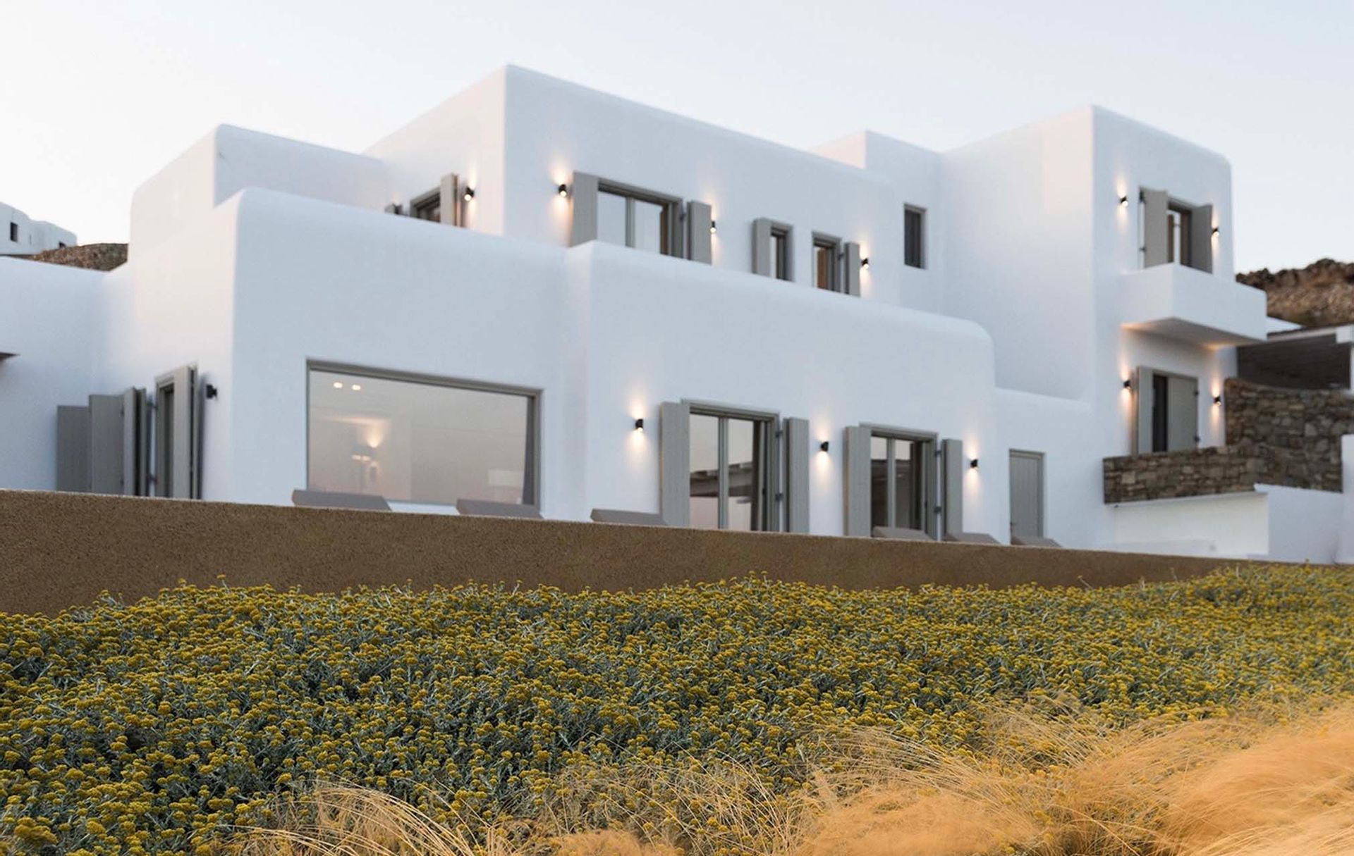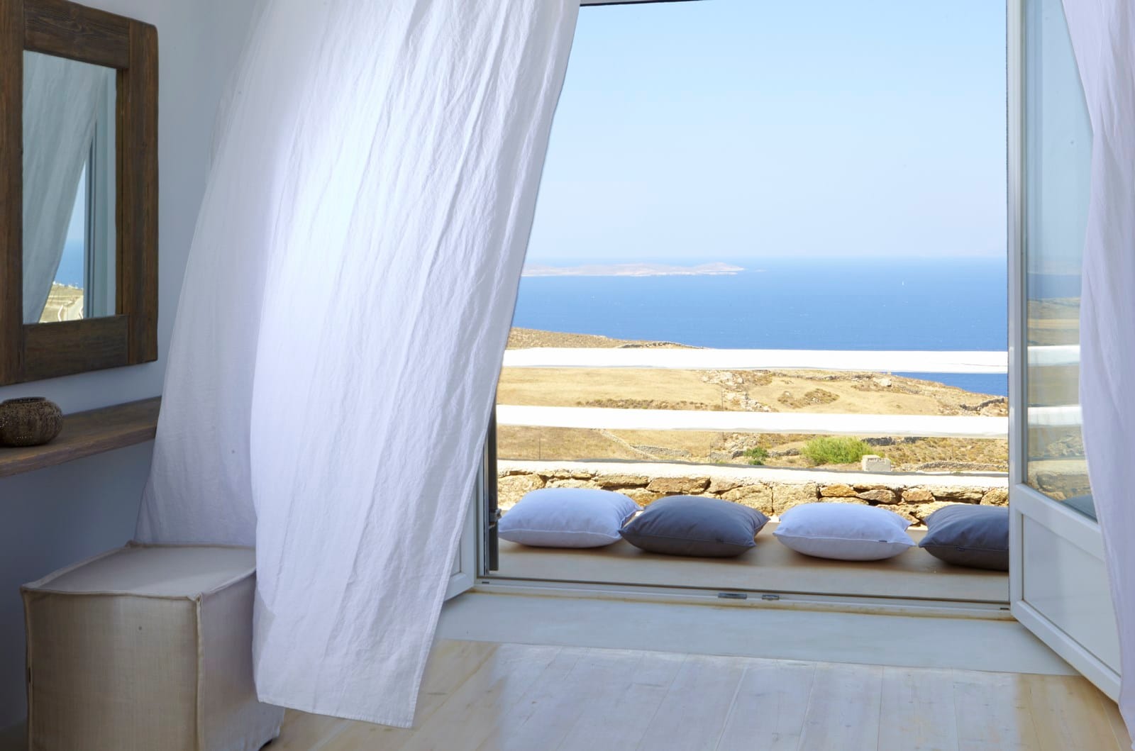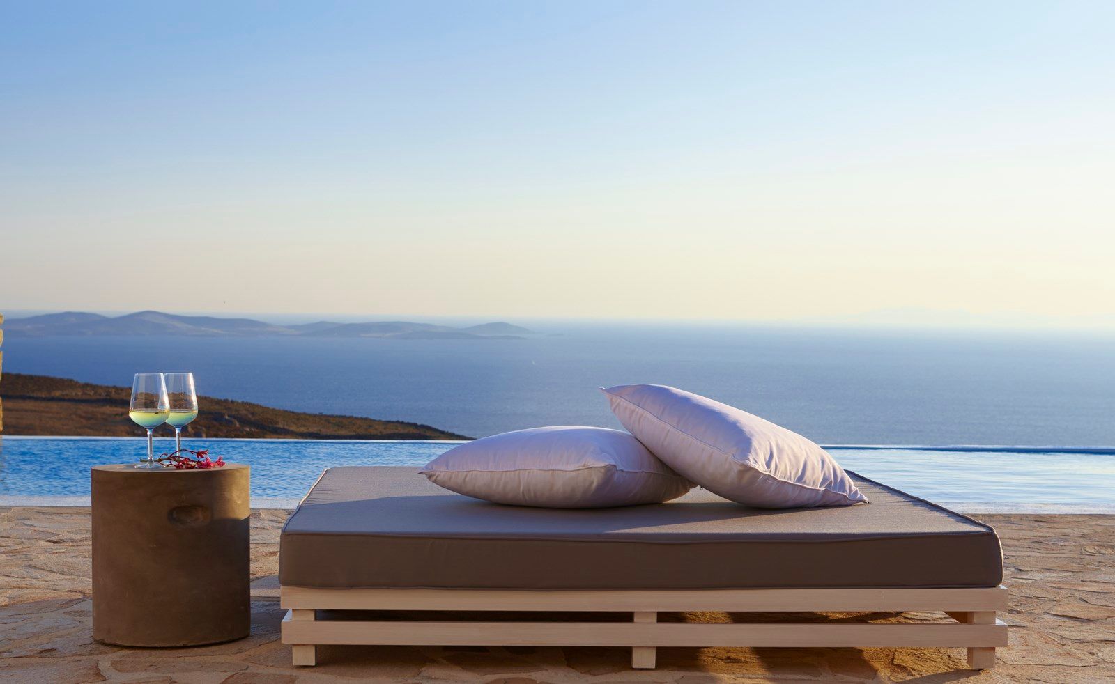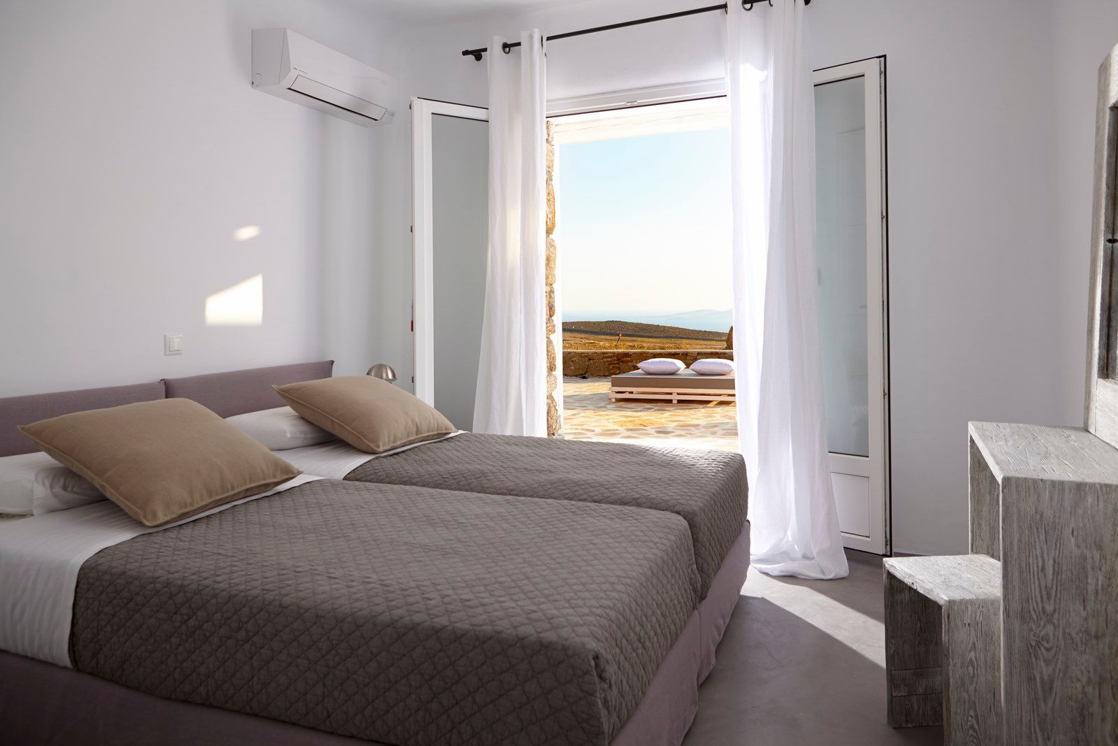 The Mykonian landscape with a font of the sea’s big blue plays the protagonist role in our group of villas. After you settle-in at your dreamy Villa, be prepared for a highly experiential stay portrayed by joyful swimming in your private swimming pool, evening dinners with friends with majestic sea views, endless hours of gazing the boats as they enter the island’s port and the distant islands of Tinos and Syros. Relax and unwind in the comfort of your double bed with anatomic mattresses, on fluffy sofas and extra-large sun beds.