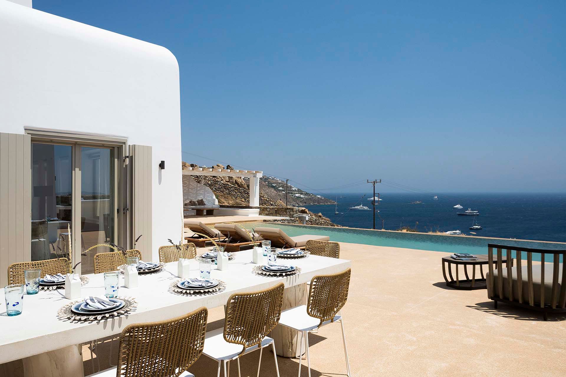 Morning awakening with views to the wild Cycladic landscape of the western side of Mykonos. Afternoon relaxation session at the spacious living room under the cool whitewashed walls and the domed arches. Sunset time by your private infinity pool with a majestic font of the Aegean and the island of Tinos. Dinner with friends at the balcony with the cool and refreshing sea breeze. Your stay at Villa Shirley is going to be highly experiential and memorable.