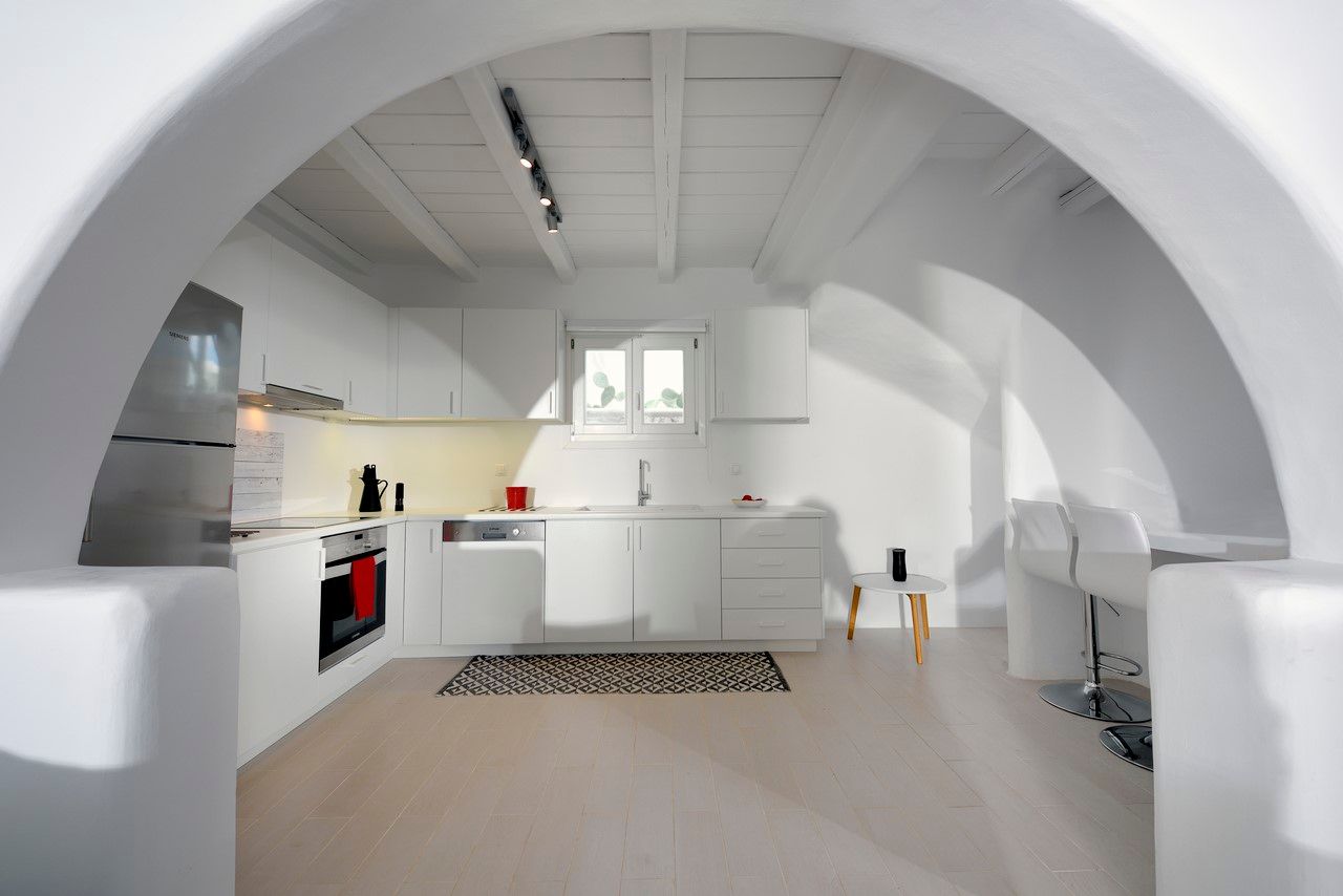 This is a modern villa built in 2015 in a unique location in Kanalia, Mykonos with view of Mykonos Town, the port and the island of Tinos. The property has a private entrance and parking area for 4 cars.