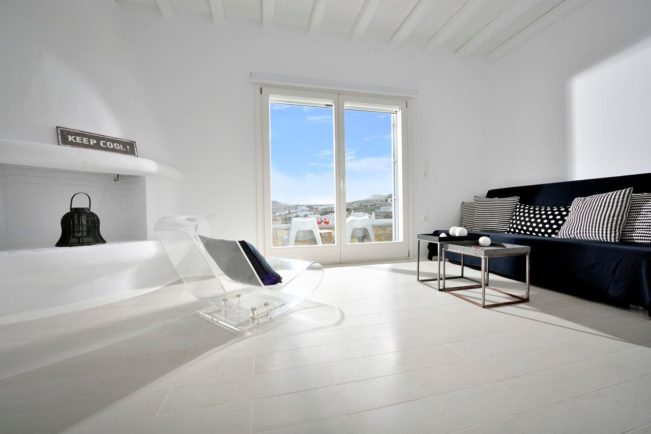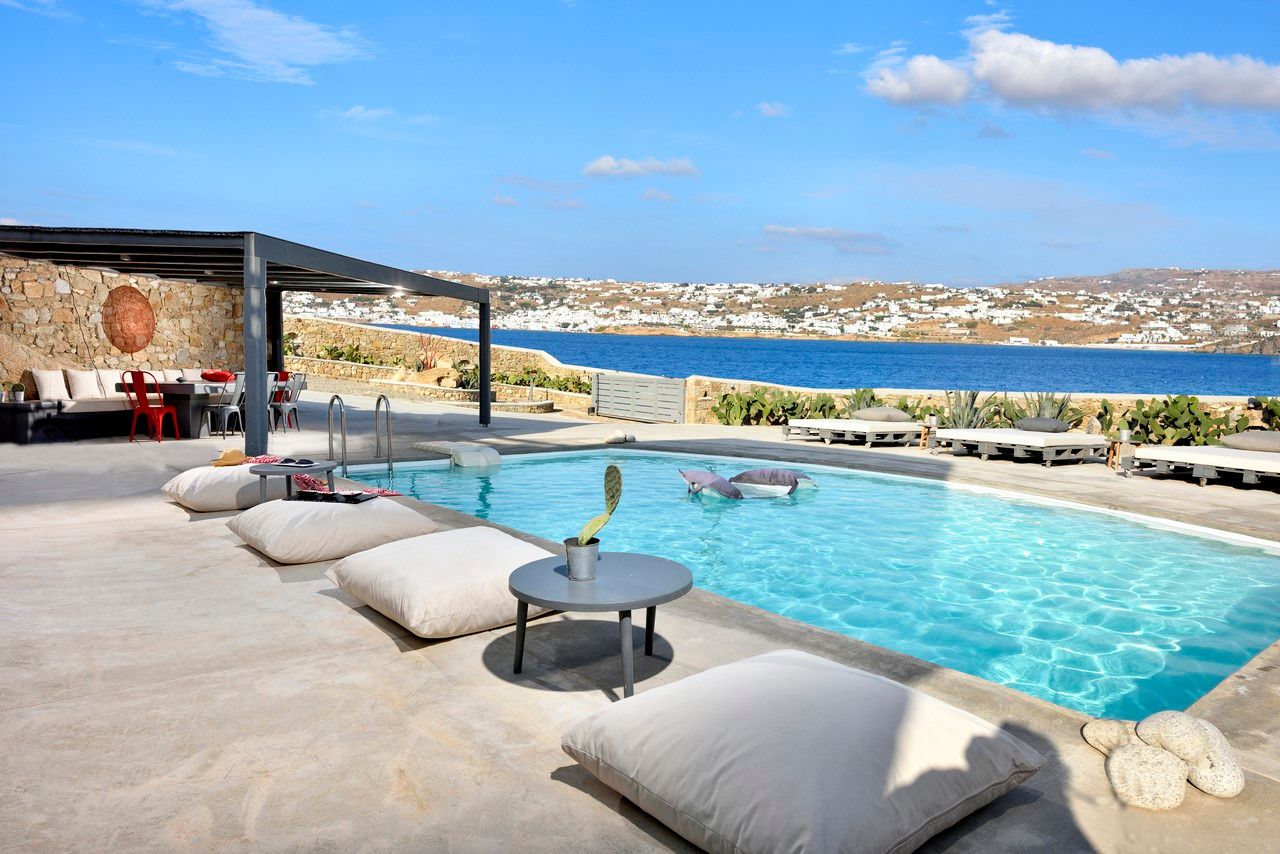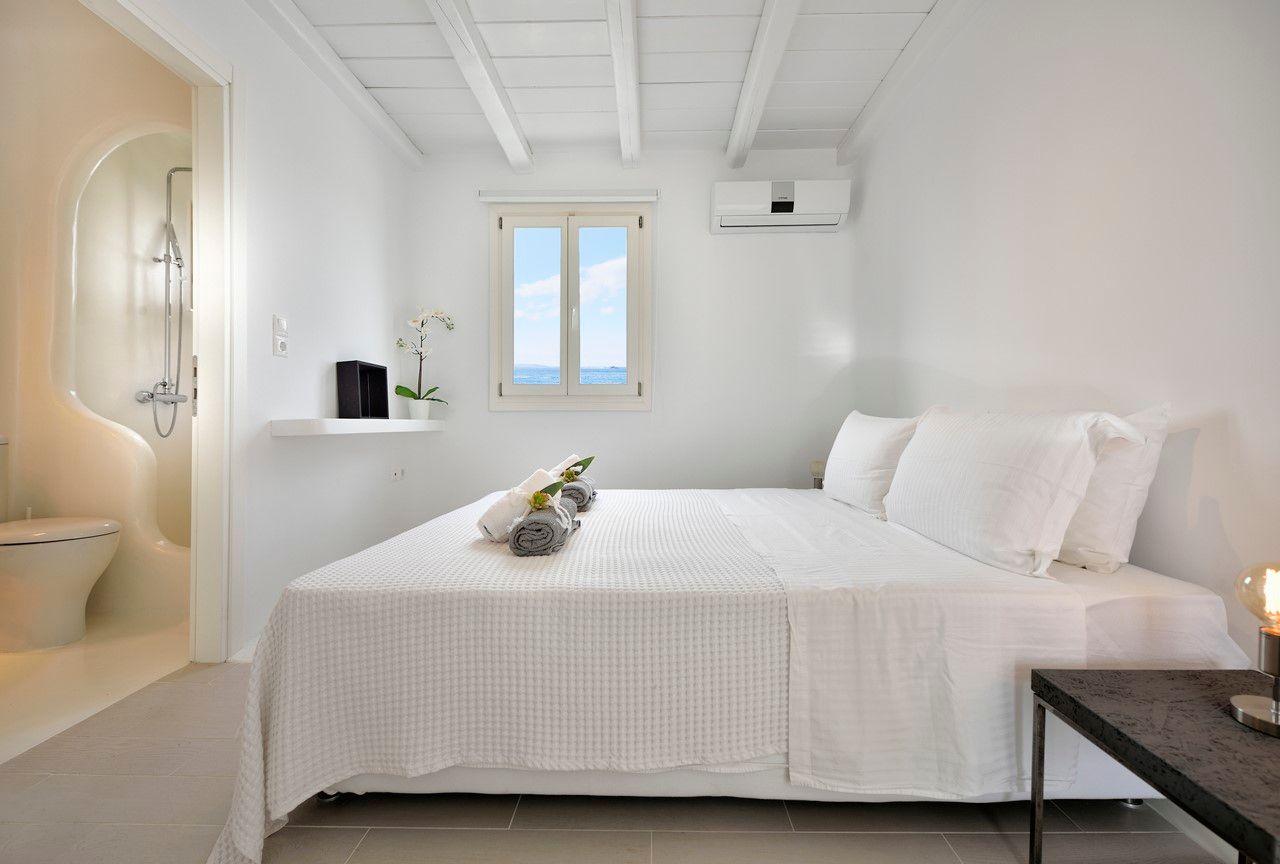 The area combines easy and short accessibility to popular destinations of the island as well as absolute privacy due to its location. It is situated just a few meters by foot from the beach “Delfini” and 2,7 km from beach “Ornos” .Villa Willow offers a comfortable and welcoming stay with 5 double – king size bedrooms, 5 bathrooms, fireplace, flat-screen TV with DVD player, soundbar, PlayStation, WiFi internet connection, alarm system and air-condition.
