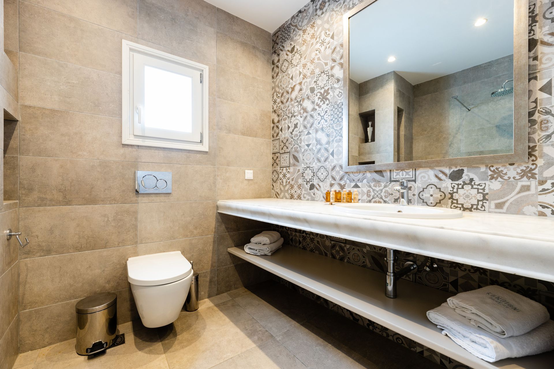 Bathroom with walk in rain fall shower