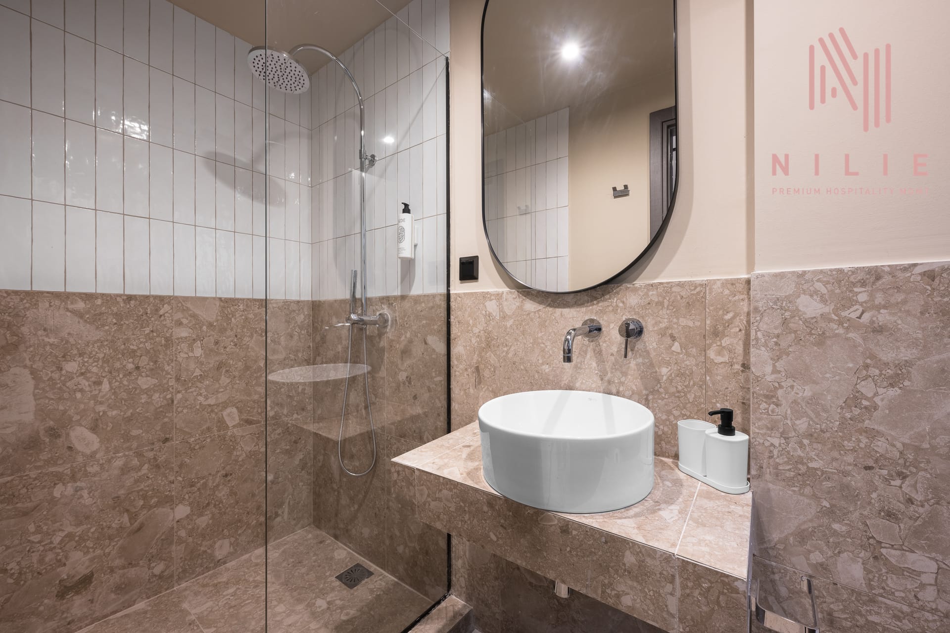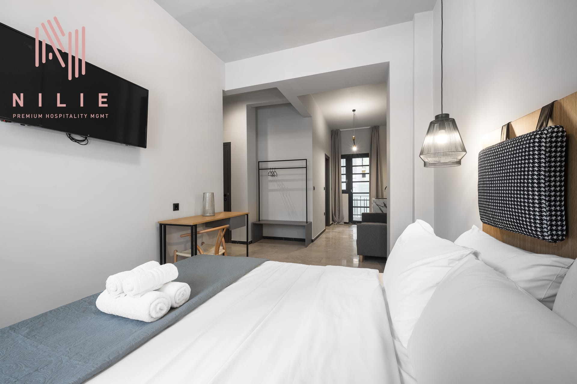 Our 48m² Apartment is spacious and versatile, making it an ideal choice for families or small groups, comfortably accommodating up to four guests. It features a separate living room with a sofa bed, providing ample space to relax. The private balcony offers lovely views of the pool, side sea, or garden, complete with outdoor furniture for enjoying the fresh air. The modern bathroom includes a bathtub, hairdryer, and bath amenities, creating a perfect spot for relaxation. With individually controlled air conditioning and central heating, you can enjoy a comfortable temperature throughout your stay.