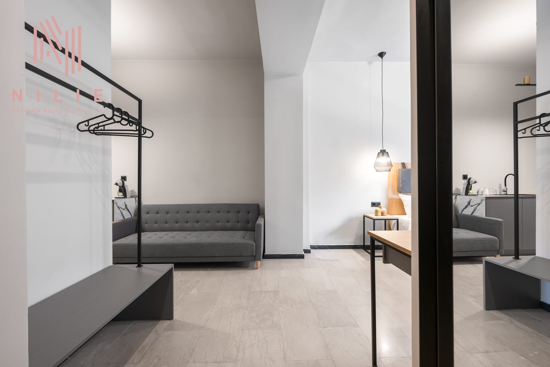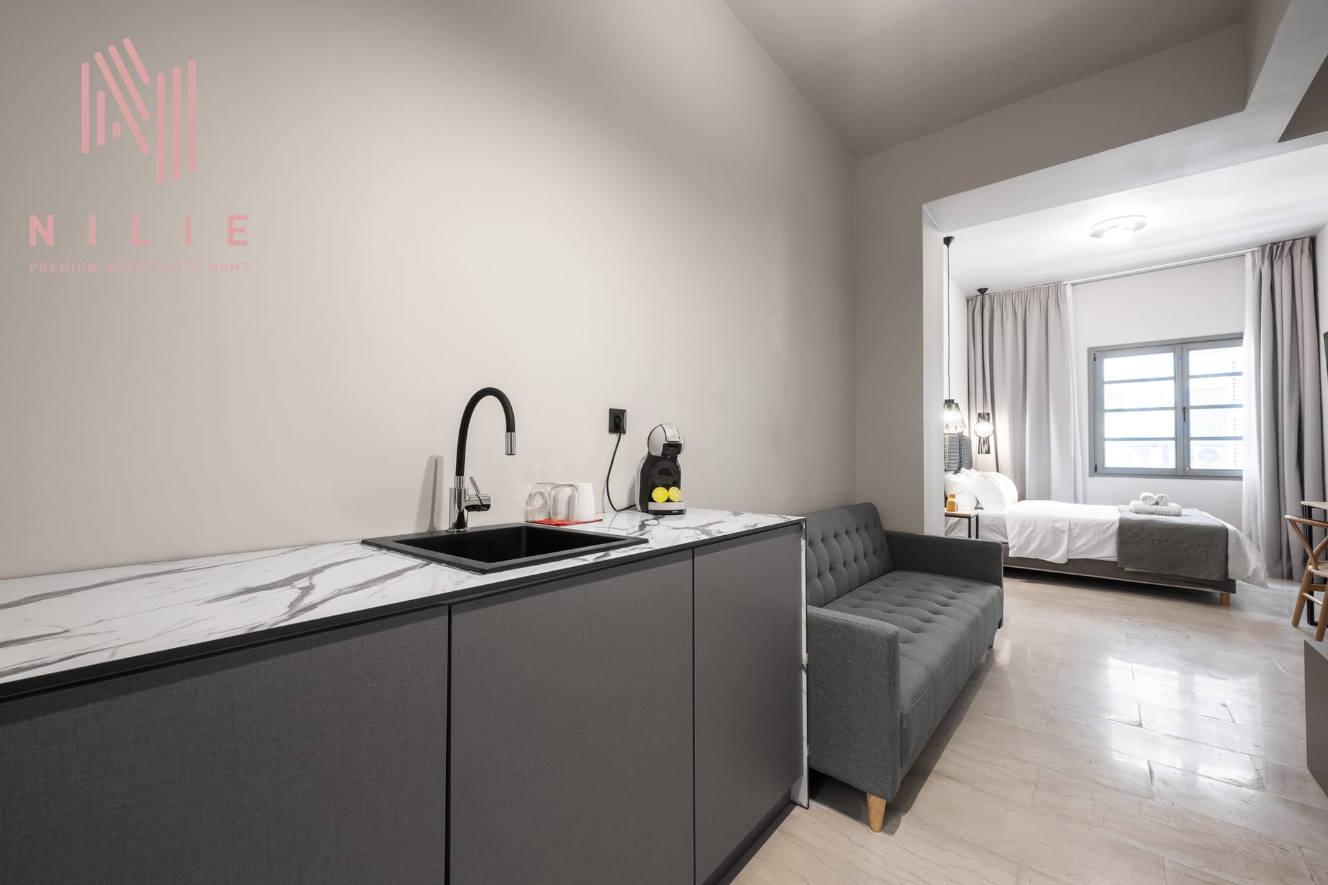 The fully equipped kitchenette comes with a microwave, refrigerator, electric kettle, and a selection of coffee facilities, including welcome espresso capsules upon arrival, making meal preparation a breeze. A dining table is available for family meals. Additional amenities include a flat-screen TV with satellite channels, free Wi-Fi, a direct-dial telephone, and a complimentary safe deposit box for your valuables. Daily maid service keeps the apartment fresh, and laundry services are available for an extra charge. This pet-friendly apartment allows dogs up to 7kg, offering a perfect blend of comfort, convenience, and space for a delightful stay.