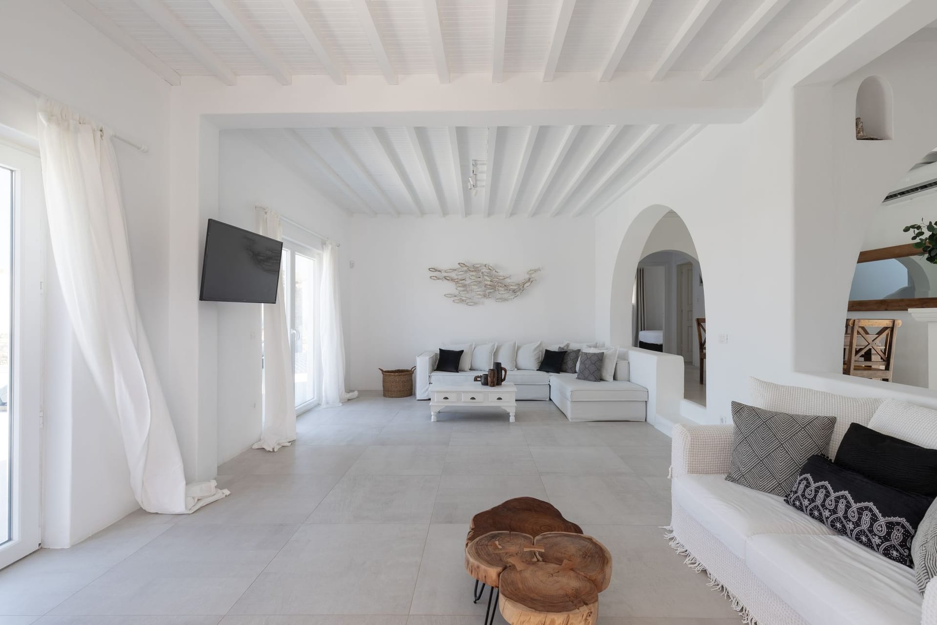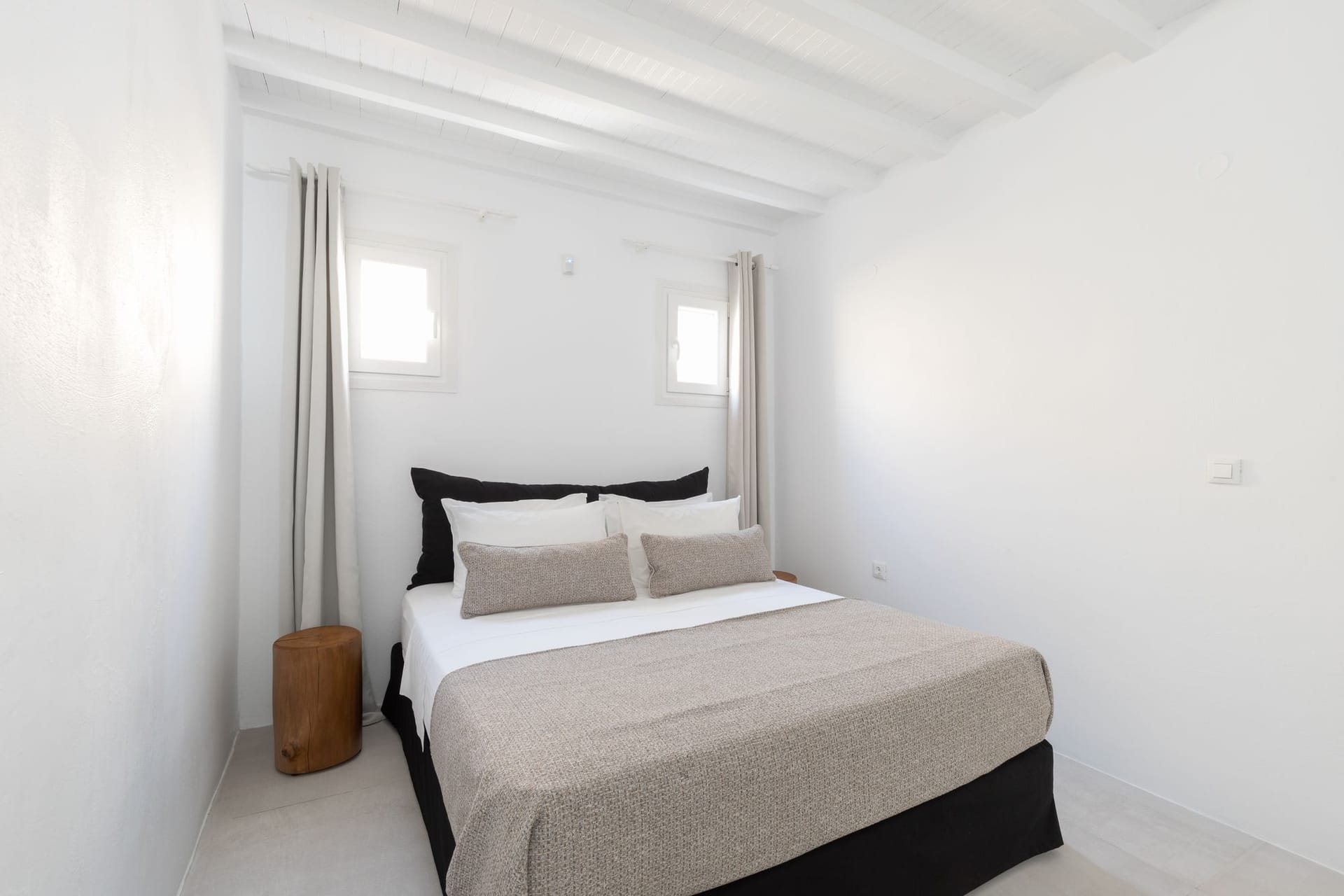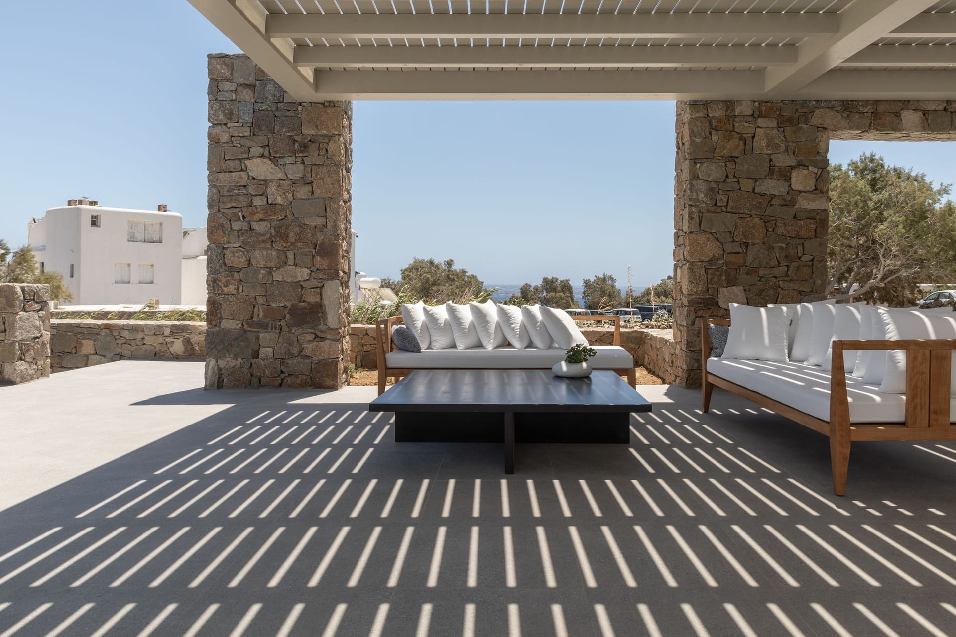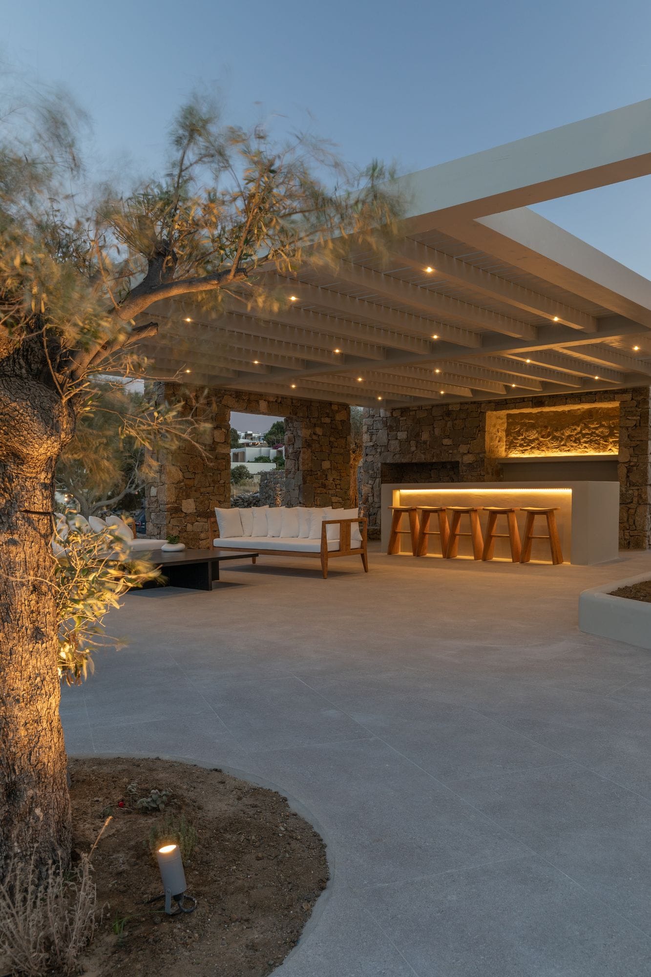 The villa is a harmonious combination of style and substance, offering seven beautifully luxury decorated bedrooms, making it a haven for up to 14 people. Each space is meticulously designed, with an unwavering commitment to detail. The architectural masterpiece is a testament to Greek and local design sensibility, combining minimalist aesthetics with traditional elements, such as the iconic whitewashed walls, wooden accents and the incorporation of natural local stone. This project pays tribute to the island's rich heritage and culture, providing an immersive experience for every visitor.