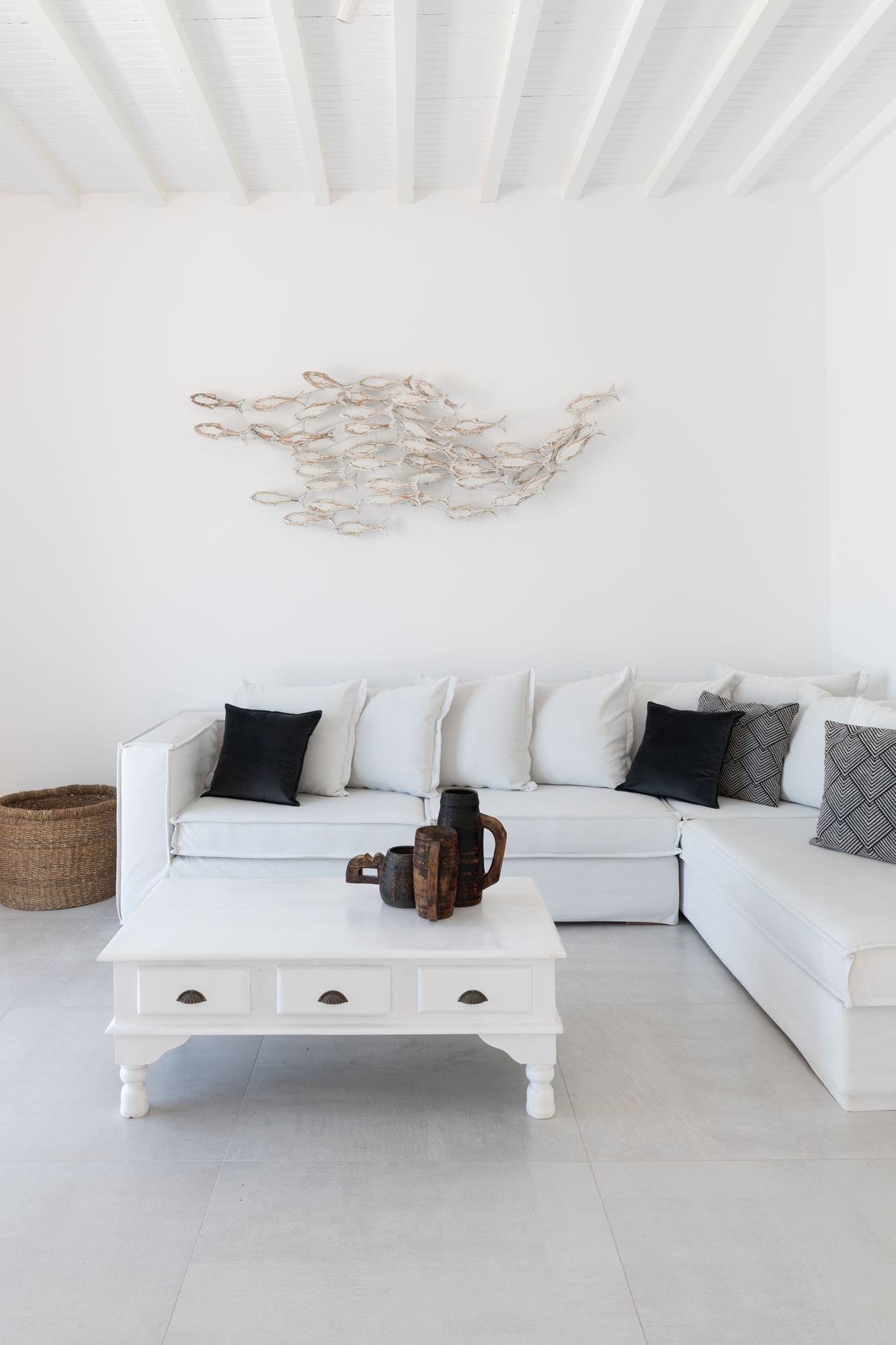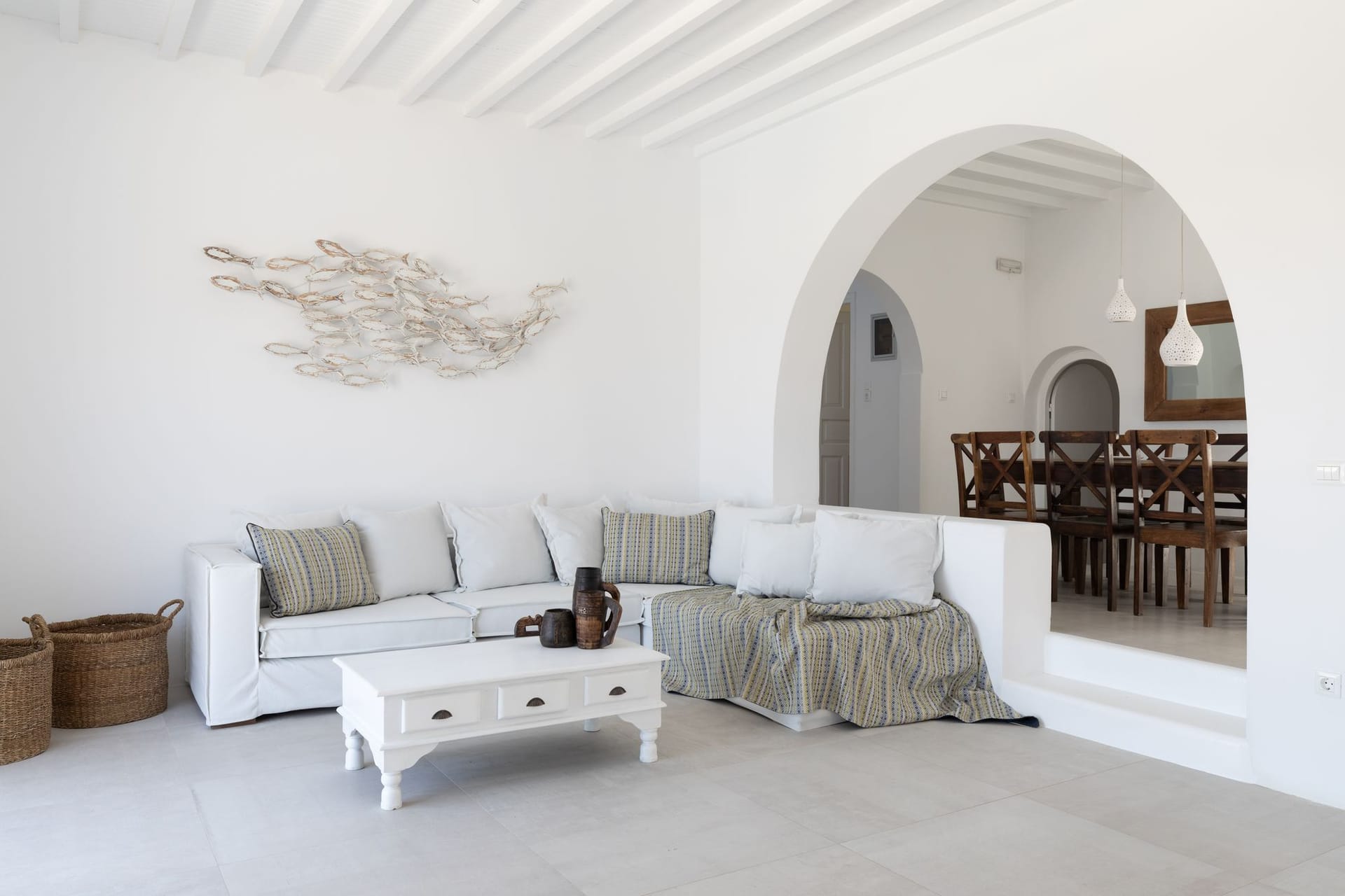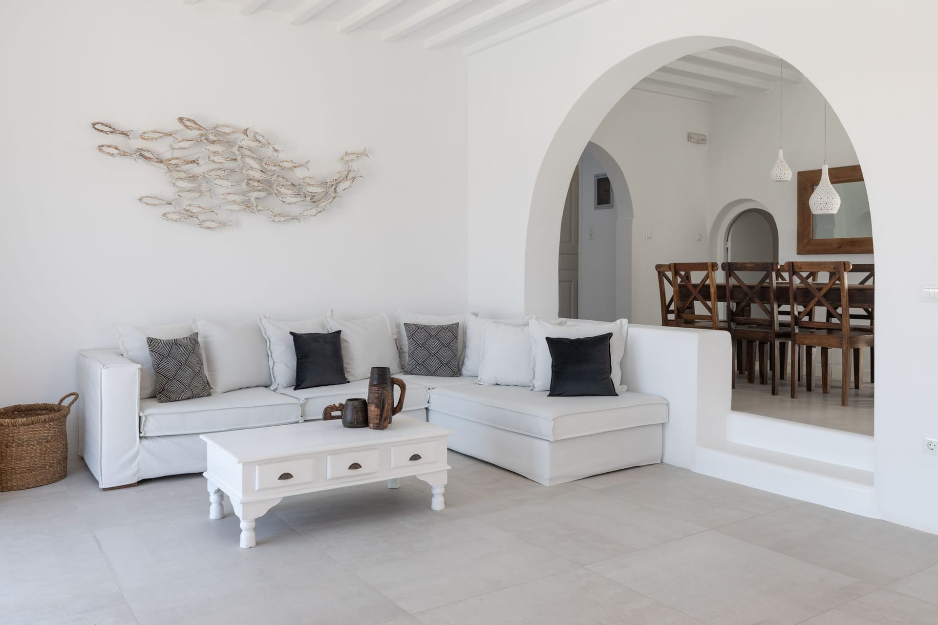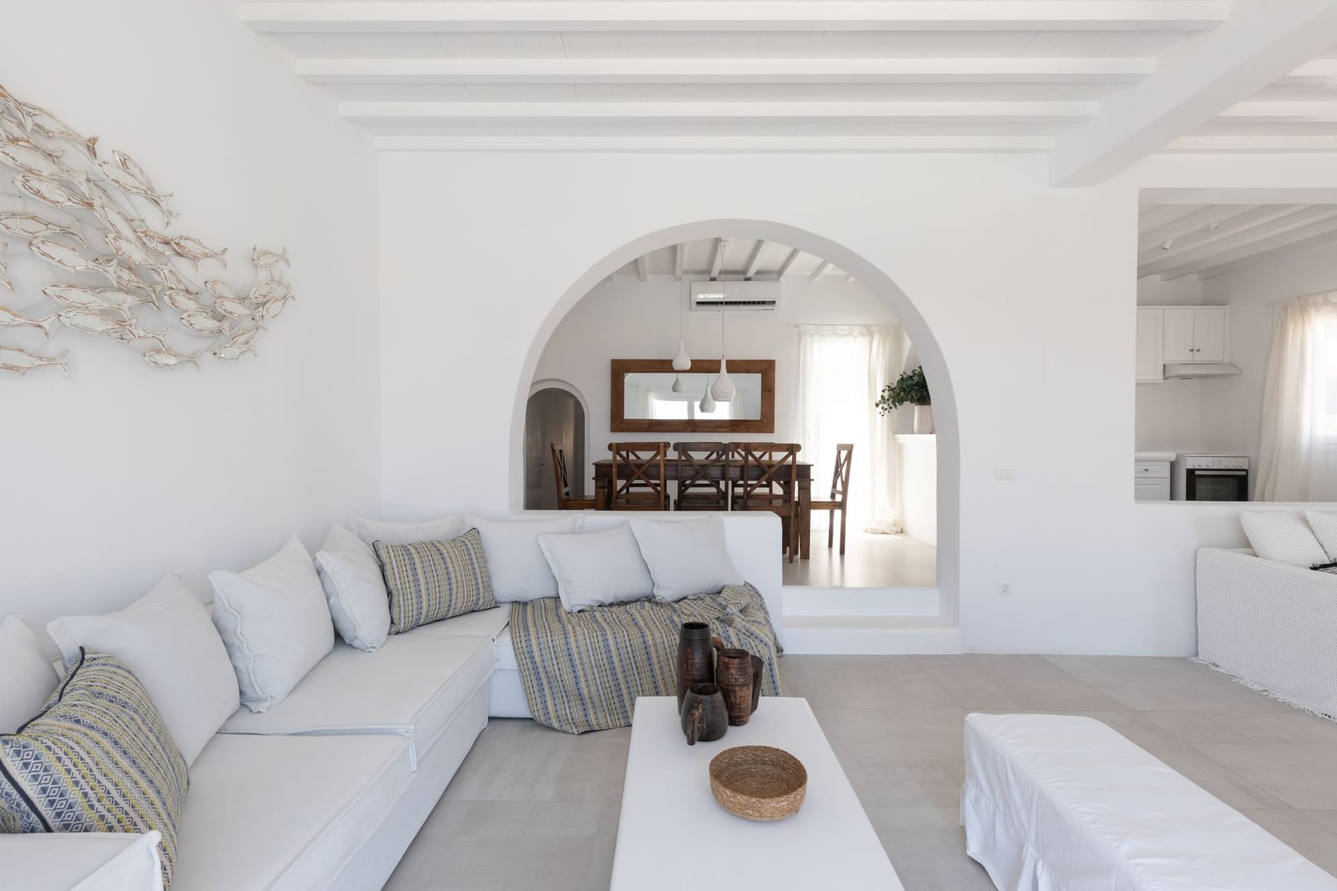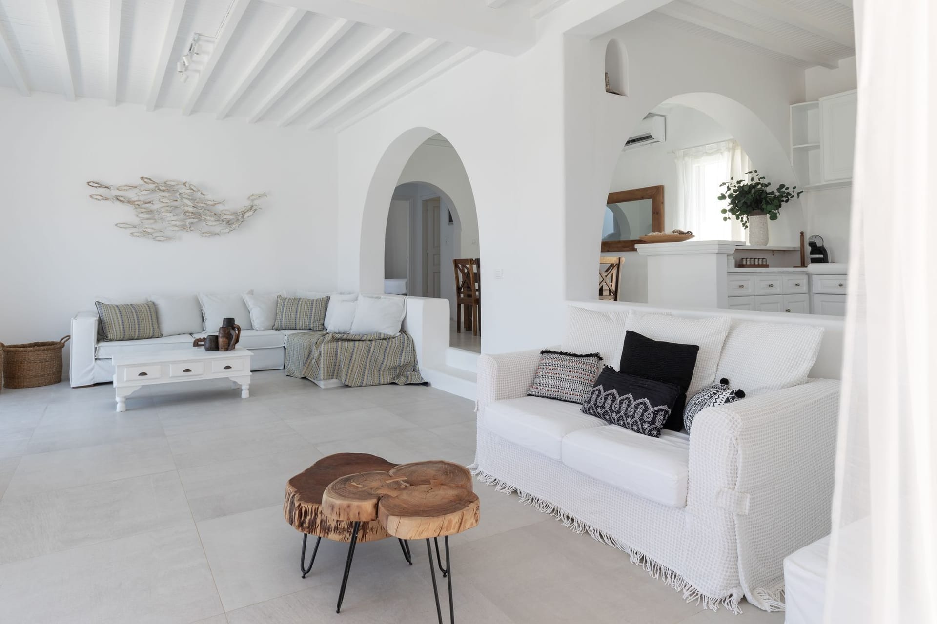 The villa is a harmonious combination of style and substance, offering seven beautifully luxury decorated bedrooms, making it a haven for up to 14 people. Each space is meticulously designed, with an unwavering commitment to detail. The architectural masterpiece is a testament to Greek and local design sensibility, combining minimalist aesthetics with traditional elements, such as the iconic whitewashed walls, wooden accents and the incorporation of natural local stone. This project pays tribute to the island's rich heritage and culture, providing an immersive experience for every visitor.