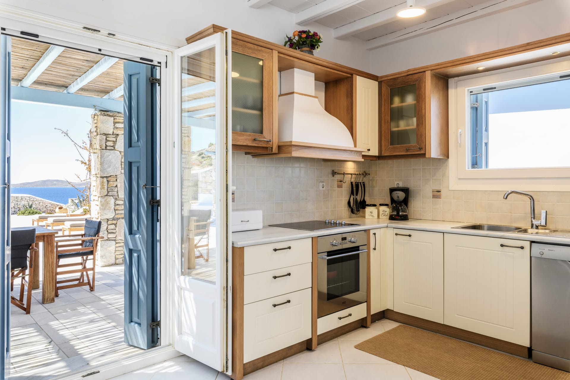 Fully equipped kitchen with connecting BBQ area,