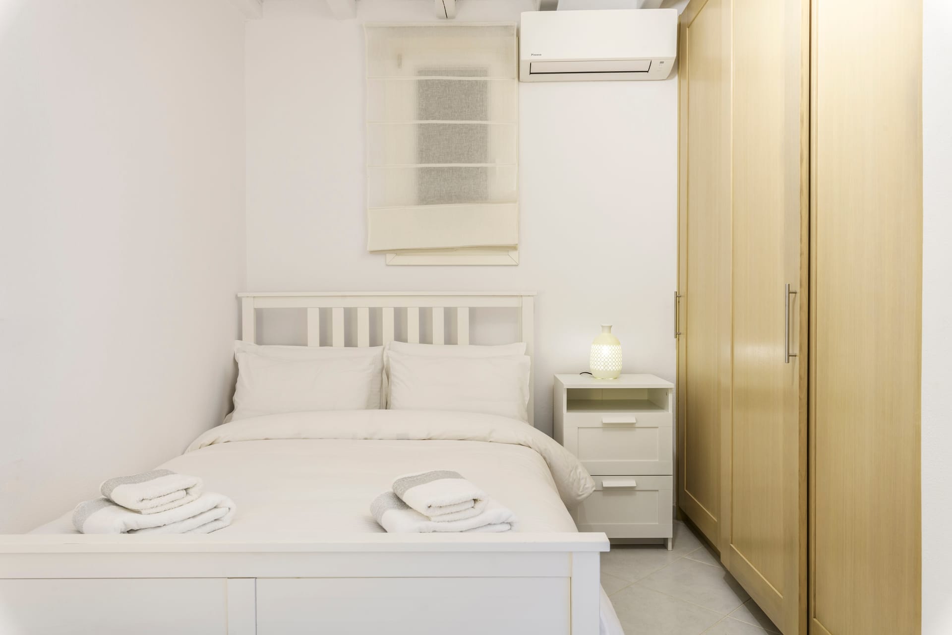 Room 2: Double Bedroom 18 m2, Open Patio,1 double bed, the room is equipped with safe box, hairdryer, A/C, bathroom amenities and towels.