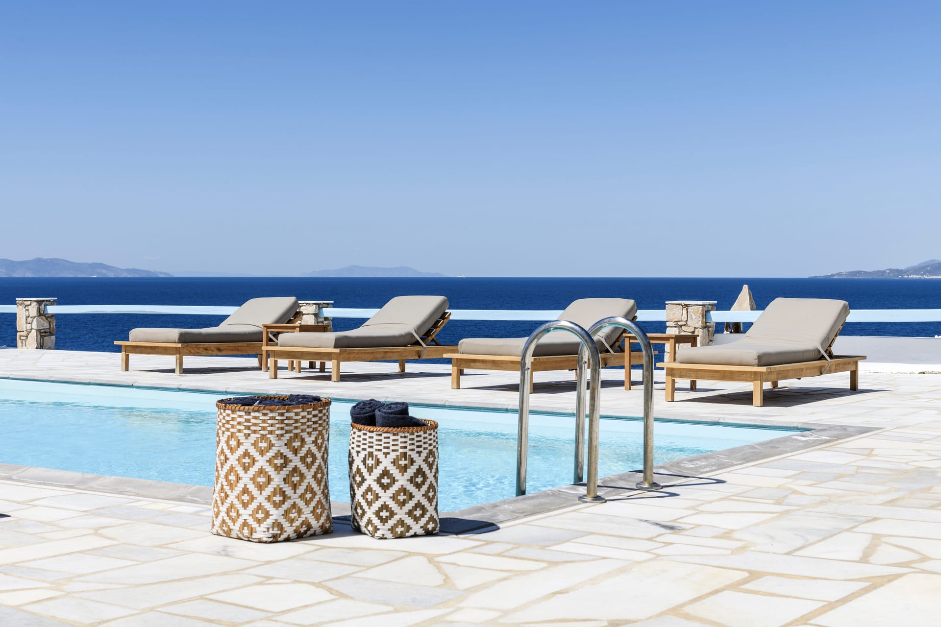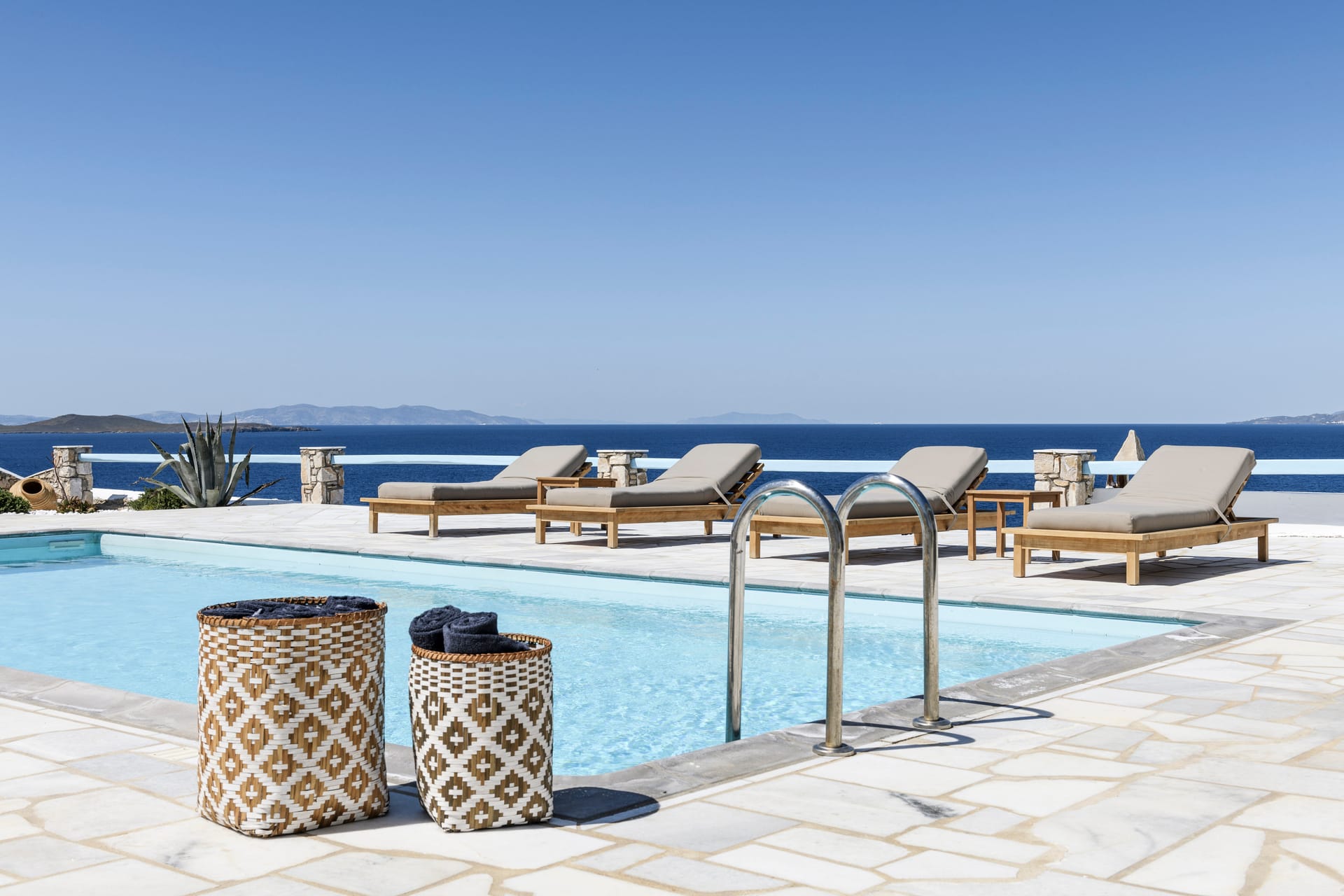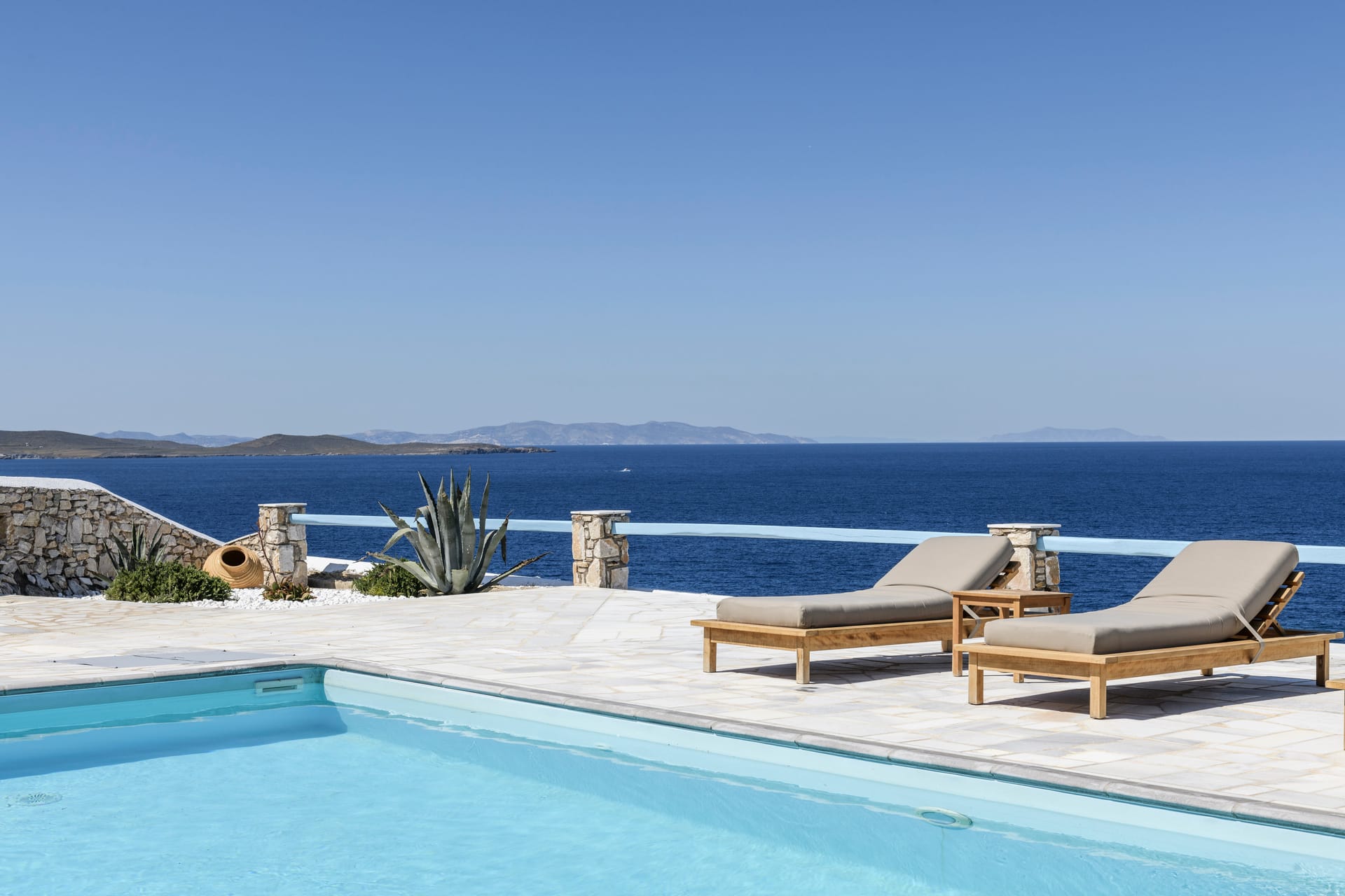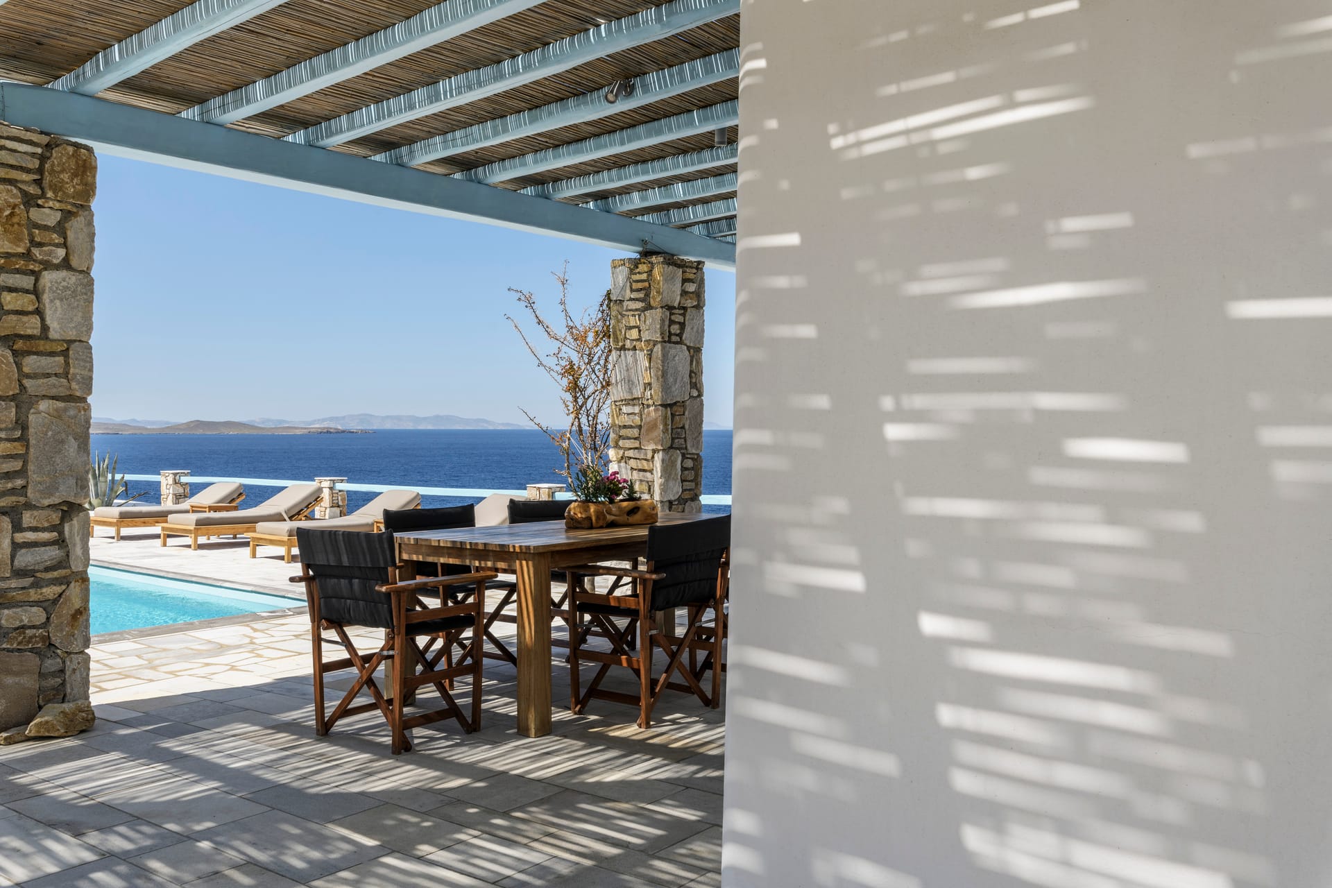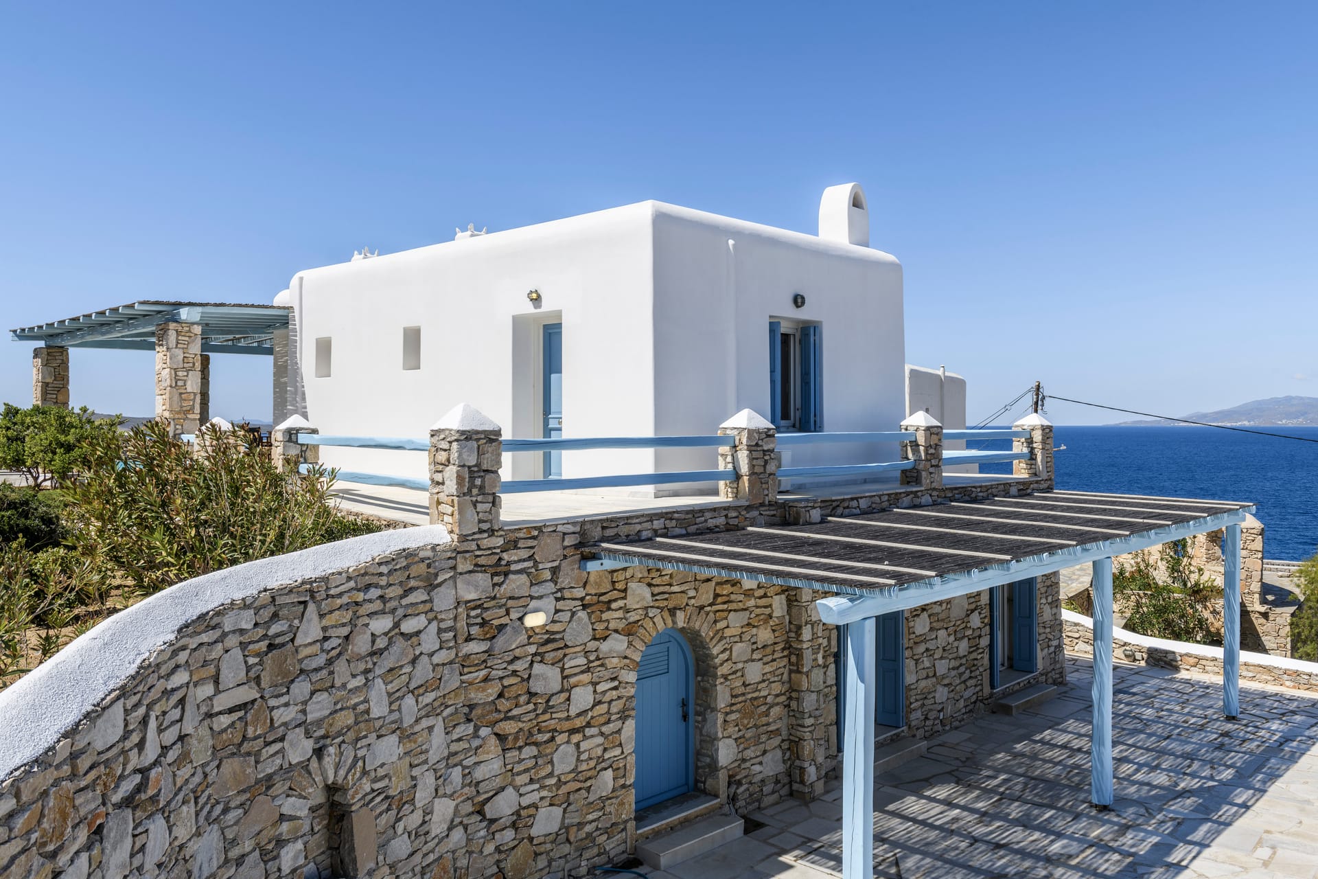 Villa Deliana is a private traditional Villa, located on a unique seaside spot at the exclusive southern part of Mykonos, Kanalia. The property offers unique views, overlooking the Aegean Sea, Delos and Rhenia Islands and Mykonos Town. The pool, the exterior common spaces and the location of the property make an ideal combination for a family vacation, couples retreat or small group gatherings that are looking for a unique experience.