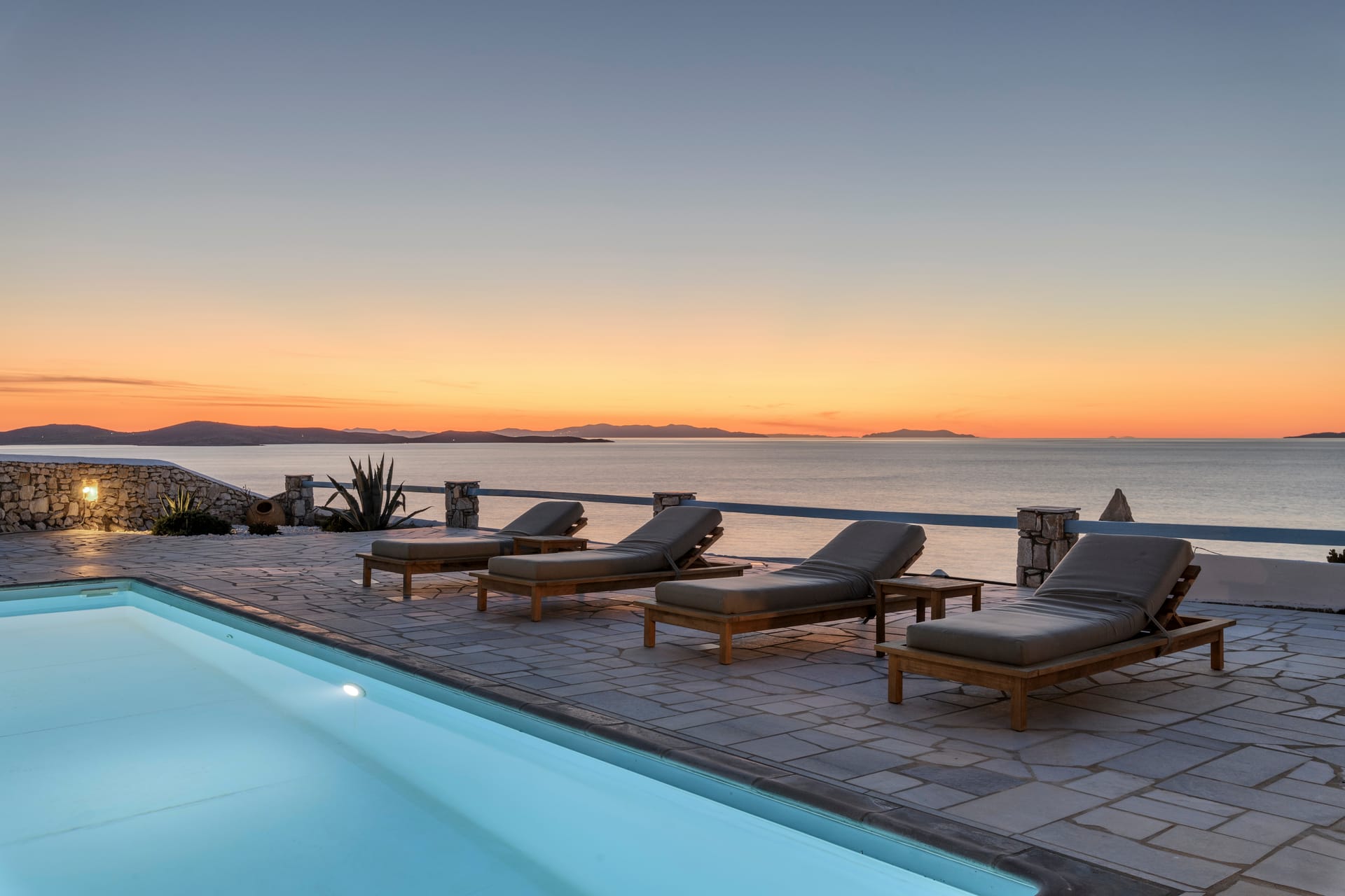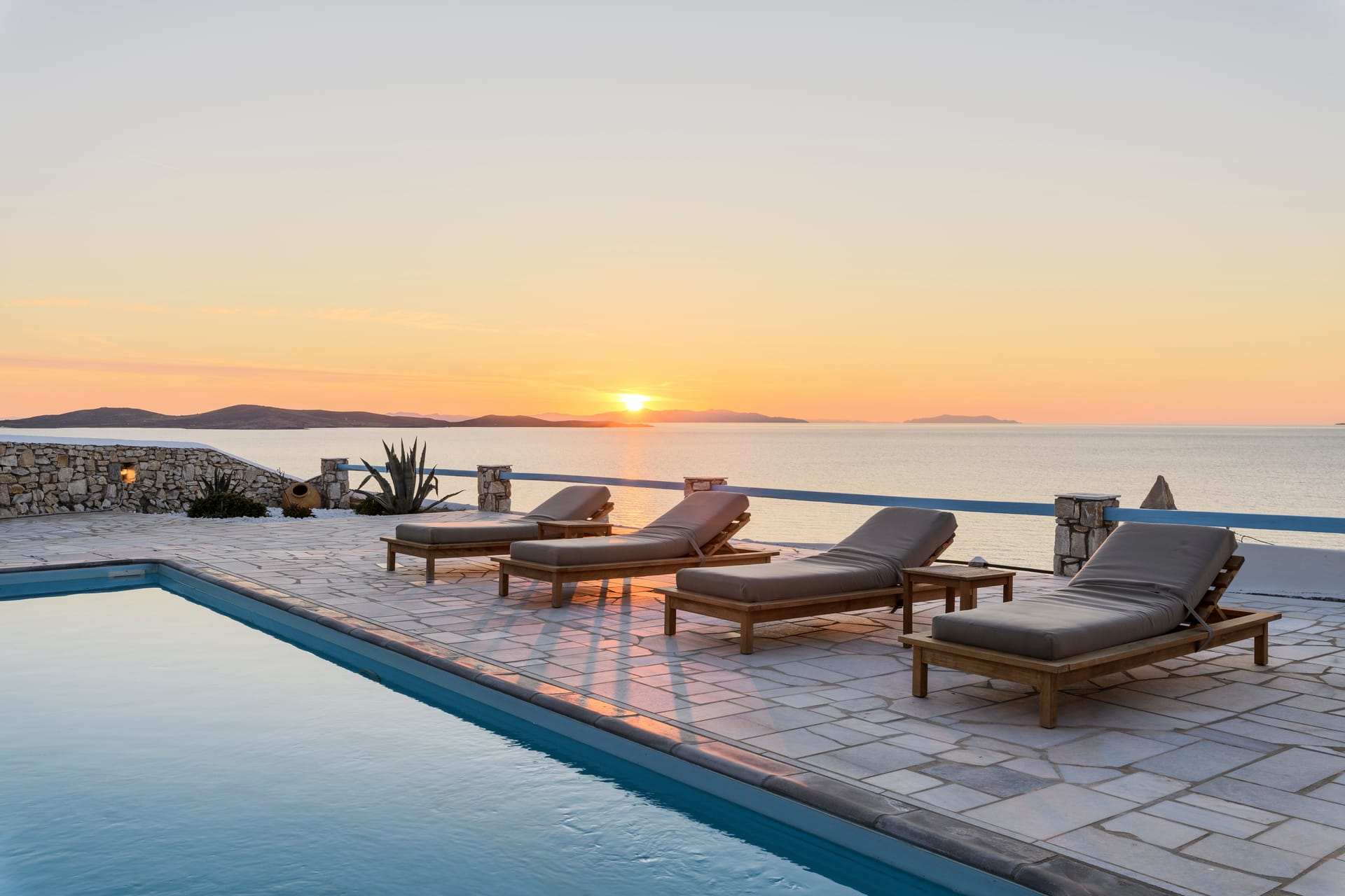 Position & view: direct sea view & sunset view from all rooms/livings/pools.
