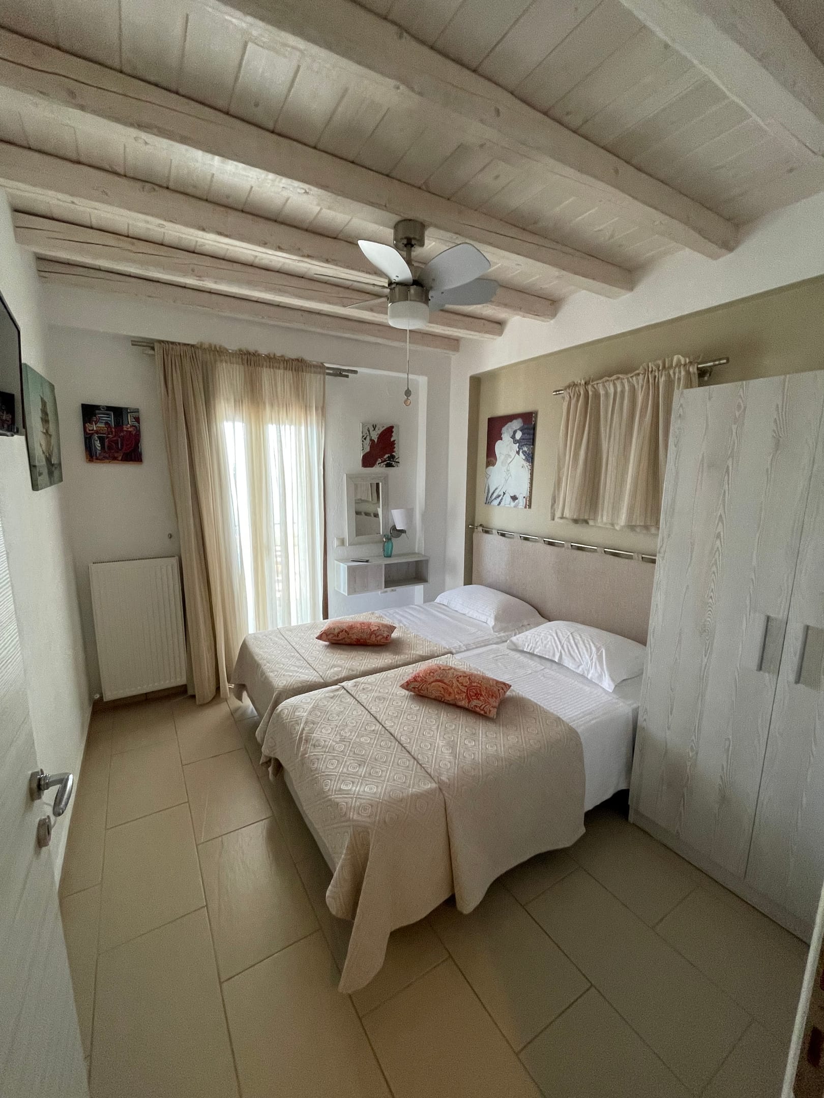 Room 3: Double Bedroom 12 m2, Open Patio, 1 double bed, the room is equipped with A/C, bathroom amenities and towels.