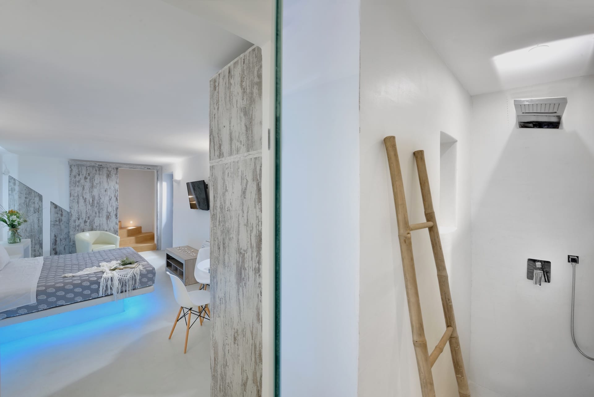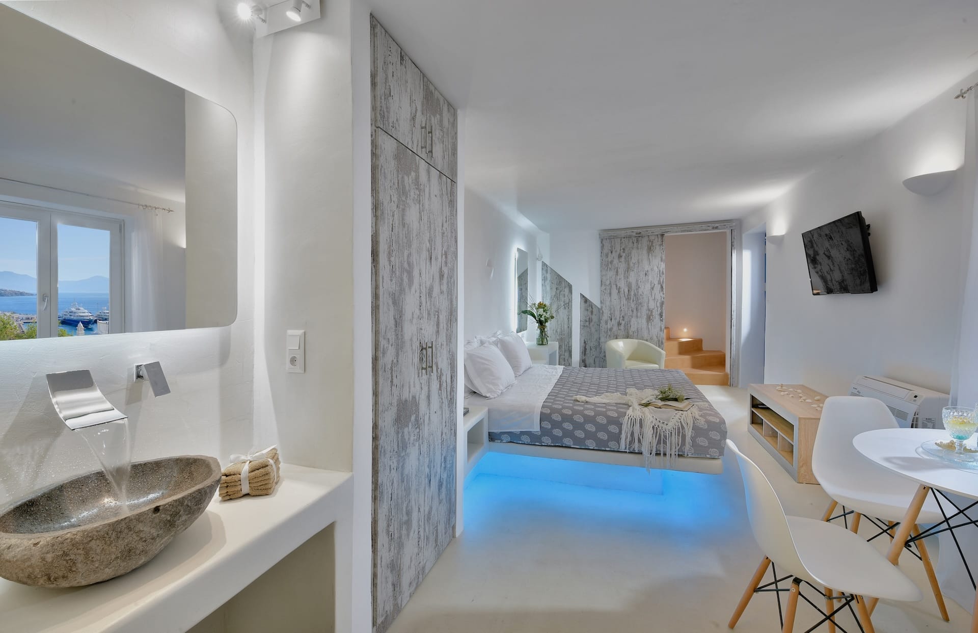 Featuring built-in Mykonian-style furnishings, ambient lighting, and an oversized