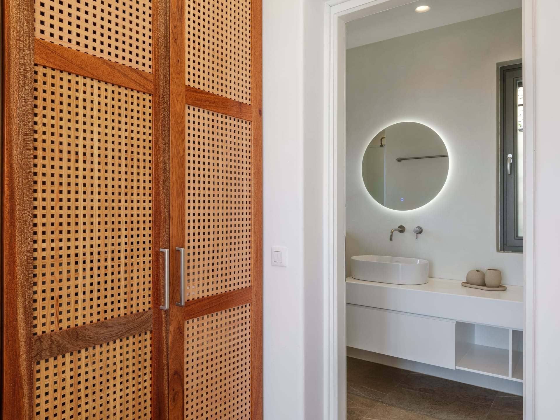 As you approach Villa Jasper, the first thing you'll notice is its harmonious integration into the surrounding landscape. The villa is thoughtfully nestled within a sensitively landscaped, stone-walled garden, which not only provides privacy but also creates a tranquil atmosphere that isolates the property from the road behind.