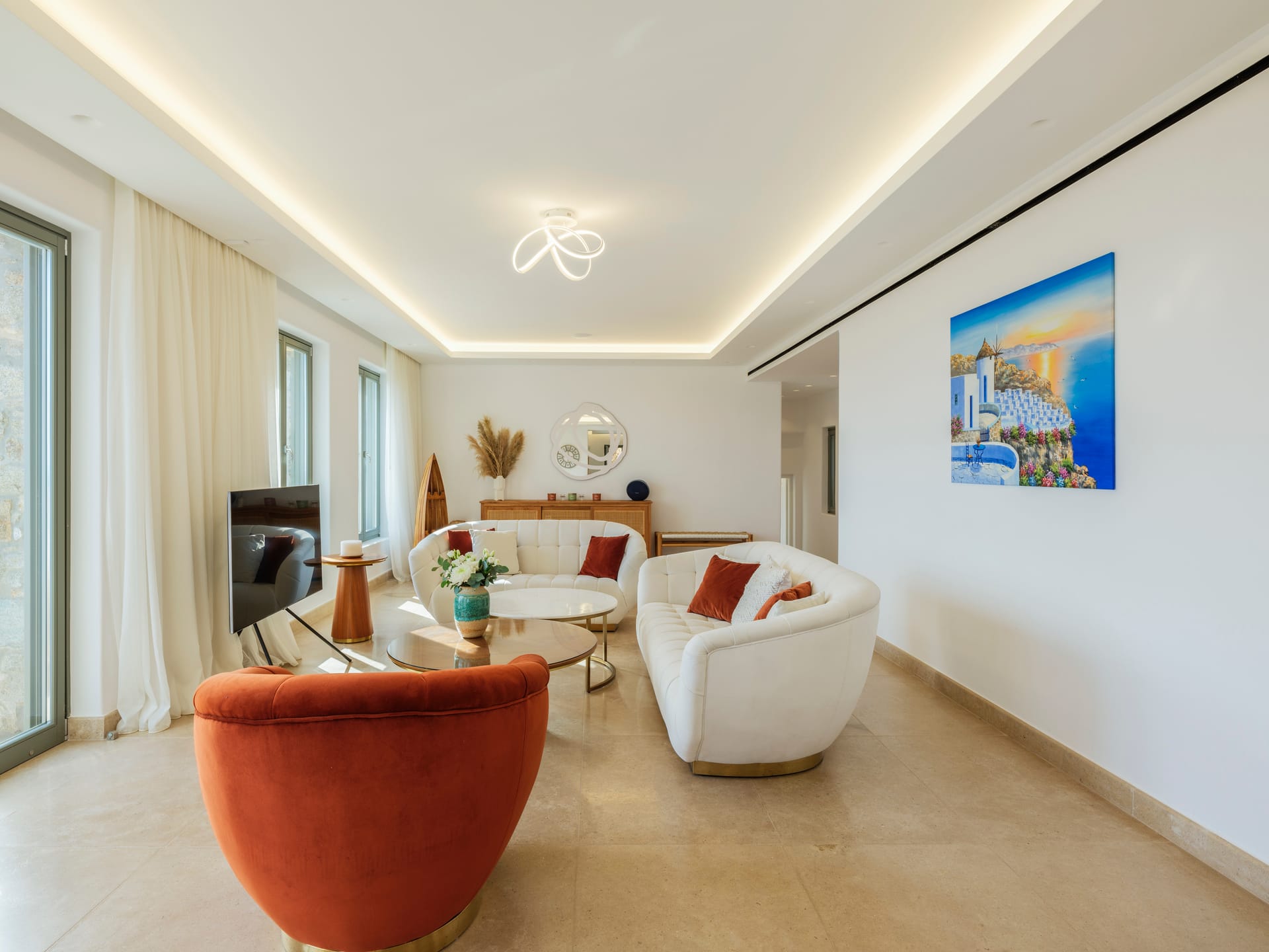 The Villa's design is a celebration of heritage and modernity. Traditional materials, such as lime-wash, stone, and wood, have been meticulously applied and engineered using contemporary techniques. The result is an architectural masterpiece that bridges the gap between the island's rich history and the comforts of contemporary living.
