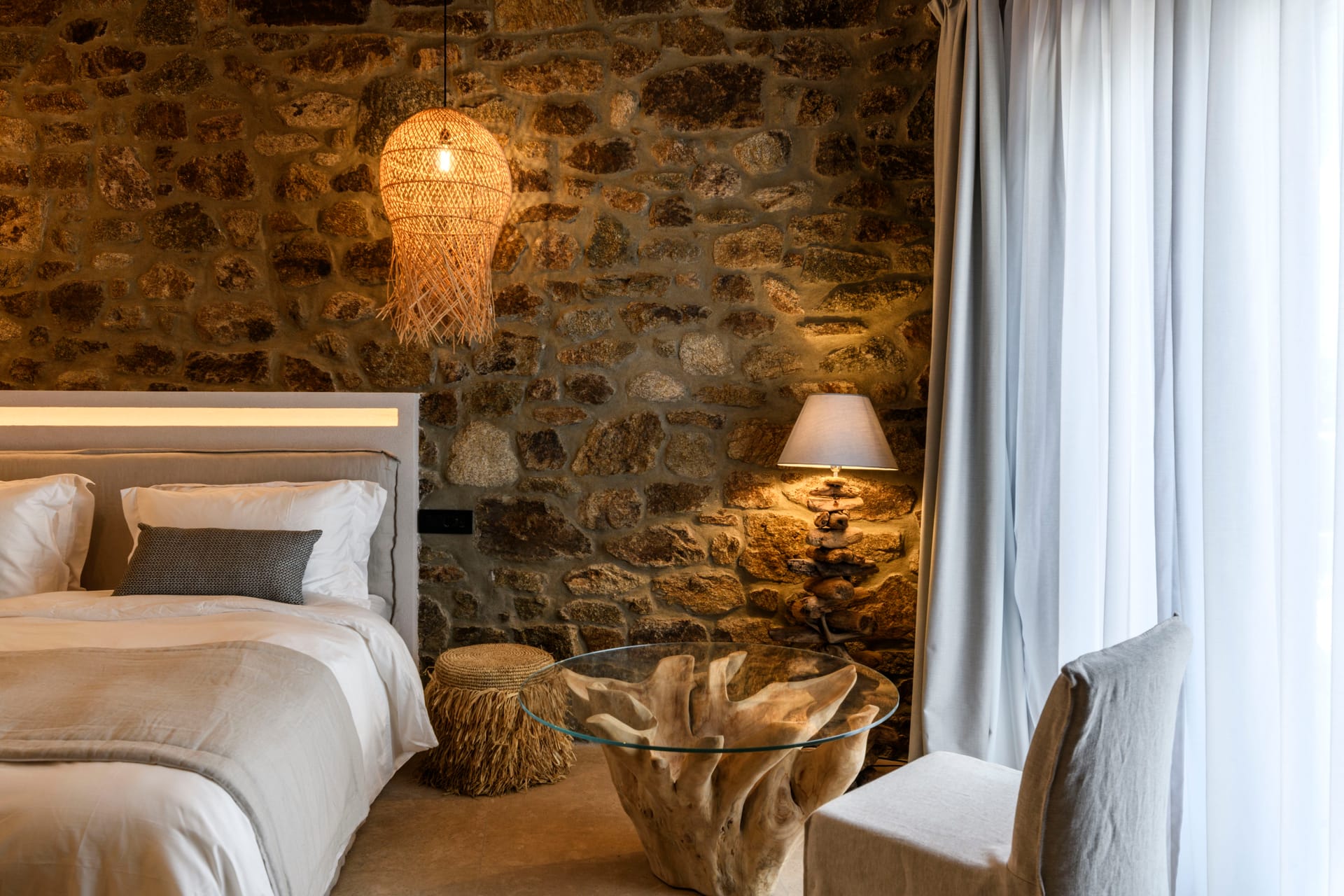 The villa features nine well-appointed bedrooms, each with their own unique style and decor. Each bedroom has been designed with comfort in mind, with plush bedding, ample storage space, and en-suite bathrooms. The bedrooms are spread out across the villa, ensuring privacy and a sense of space for guests. The villa also features a fully equipped kitchen, perfect for preparing meals. The kitchen includes Overall, this 9 bedroom villa in Agios Lazaros is the epitome of luxury and sophistication, offering guests an unforgettable experience on the beautiful island of Mykonos.