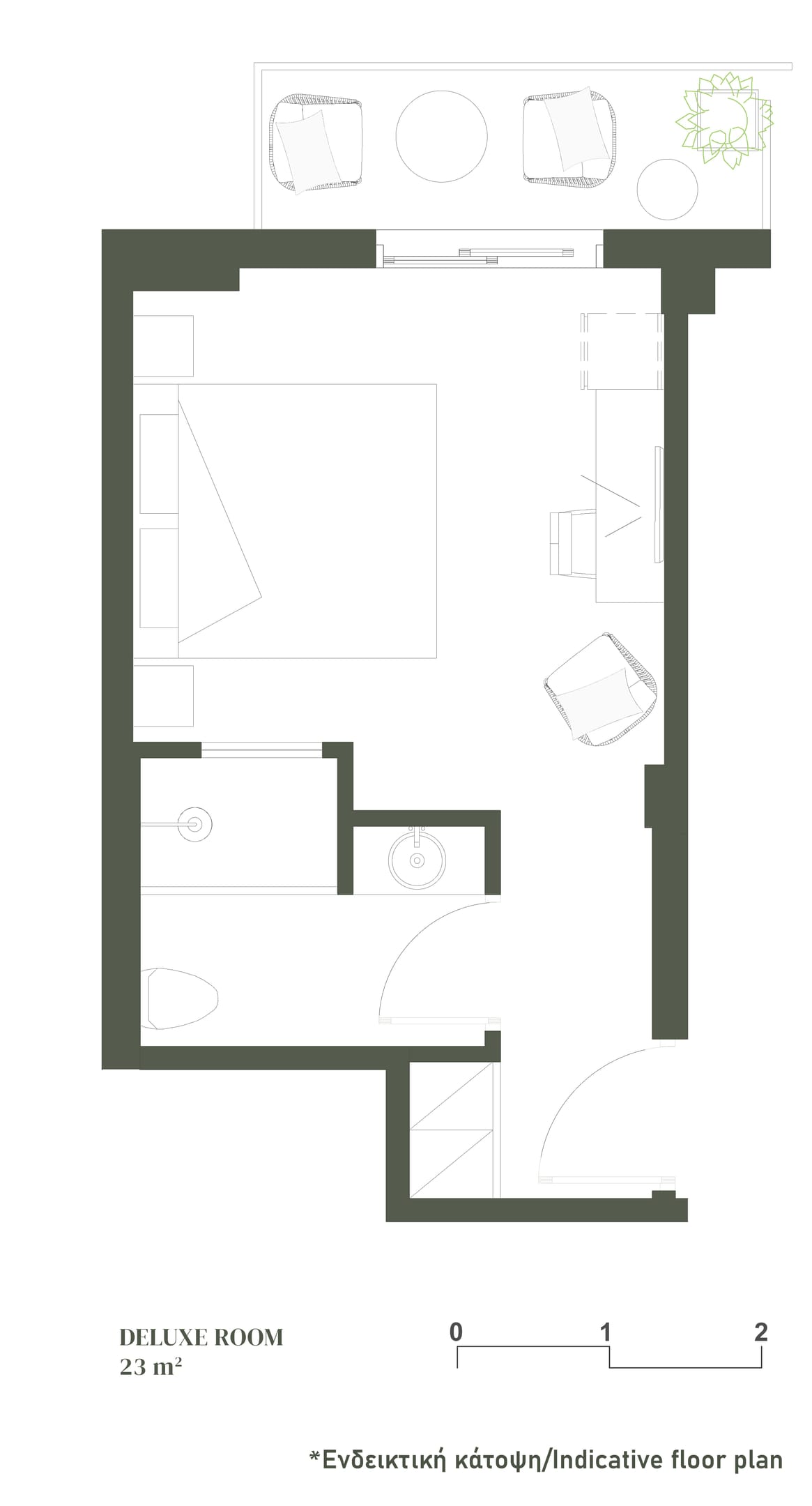 The Deluxe Room, at the building “Evripidou 7” of Kalamata Mediterranean Suites & Villas, is a beautiful, modern, comfortable, luxury small apartment which is ideally located in the city of Kalamata.