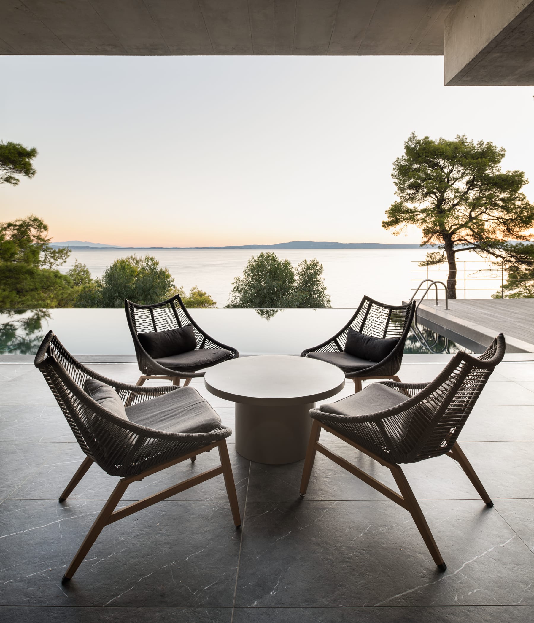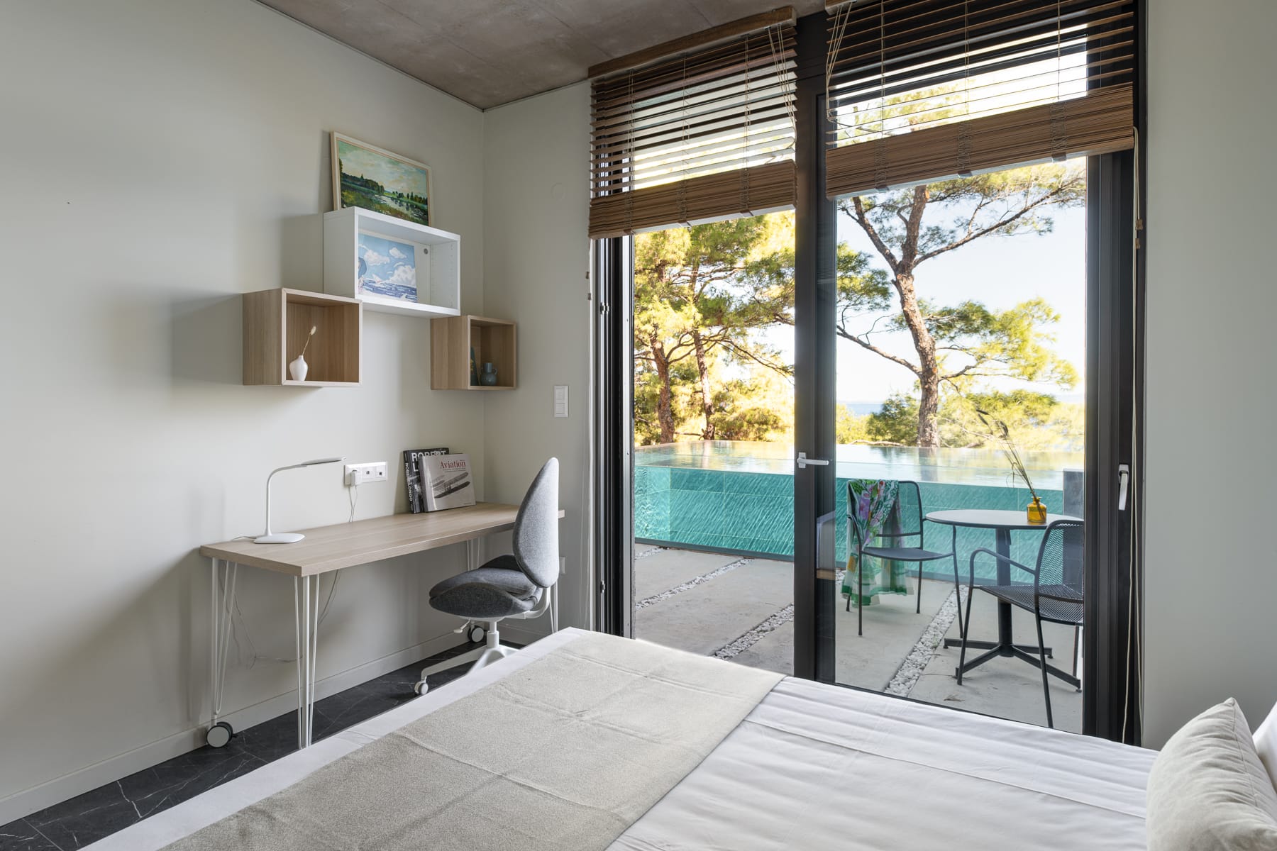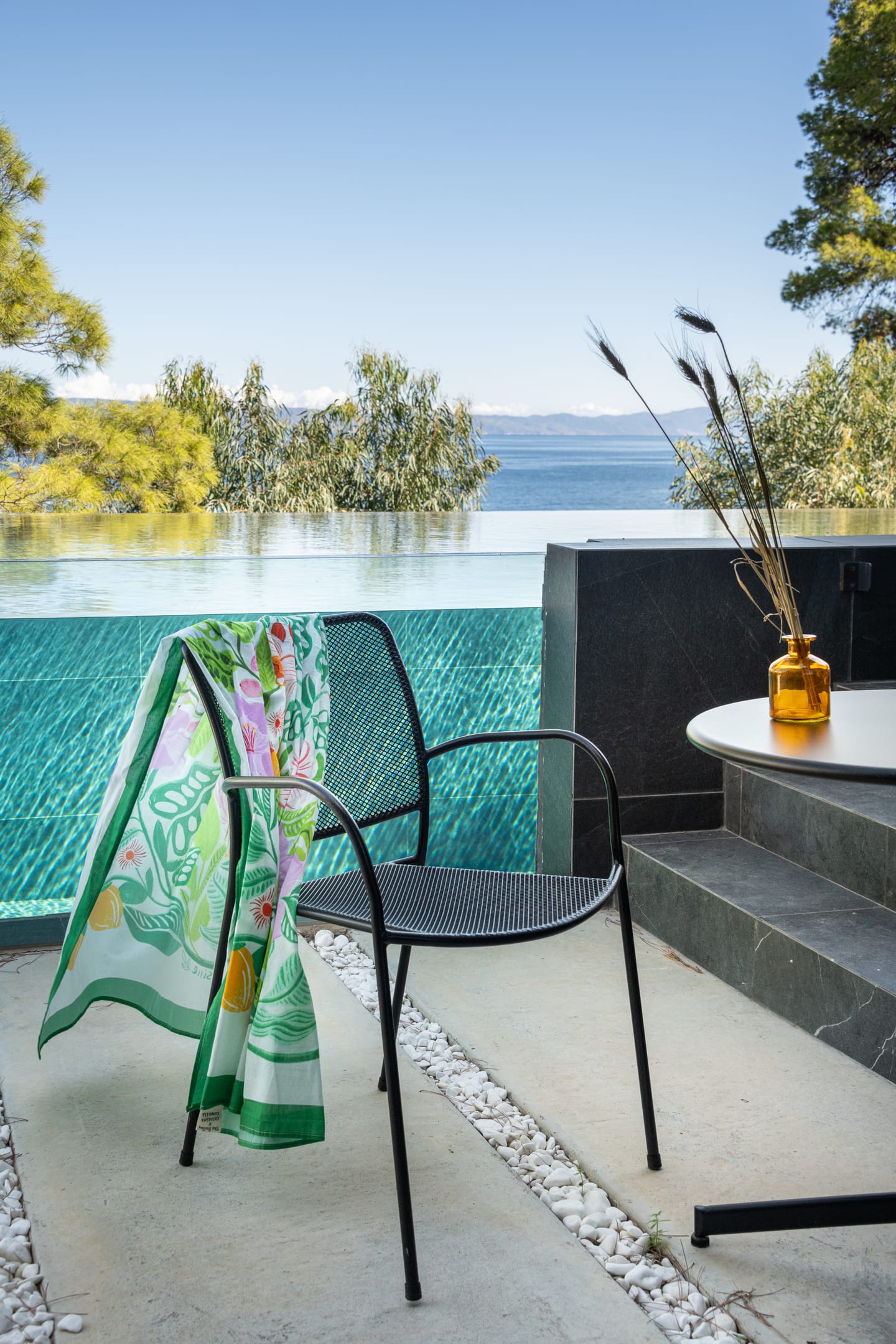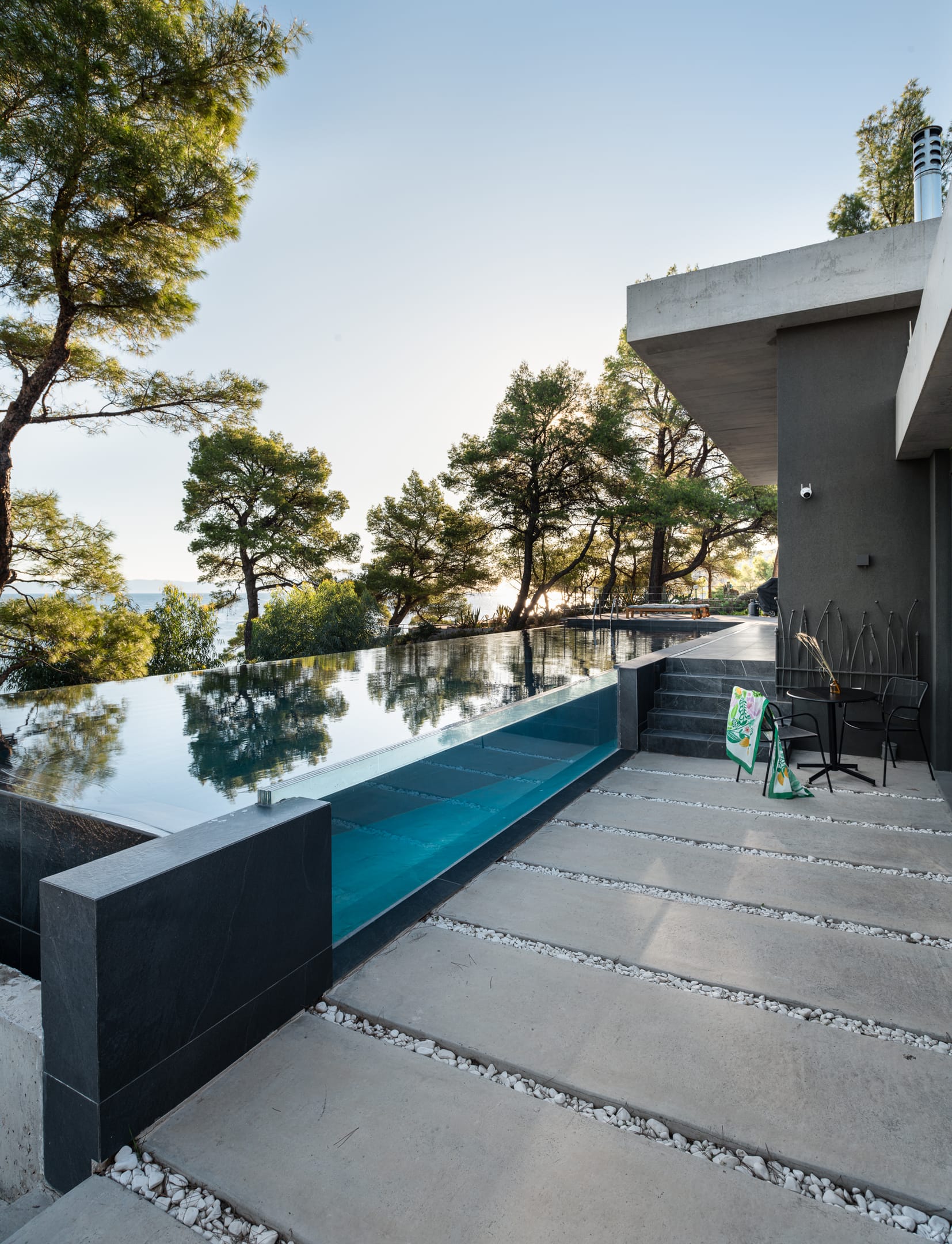 The outdoor space of the villa is what truly steals the show!No words can do justice to the villa’s exterior. The infinity pool, framed by spectacular sea views and surrounded by lush greenery, creates an atmosphere of absolute tranquility. What more could you possibly ask for? Grab your cocktail, settle into a good book, or simply lounge by the pool, basking in the purest form of happiness.