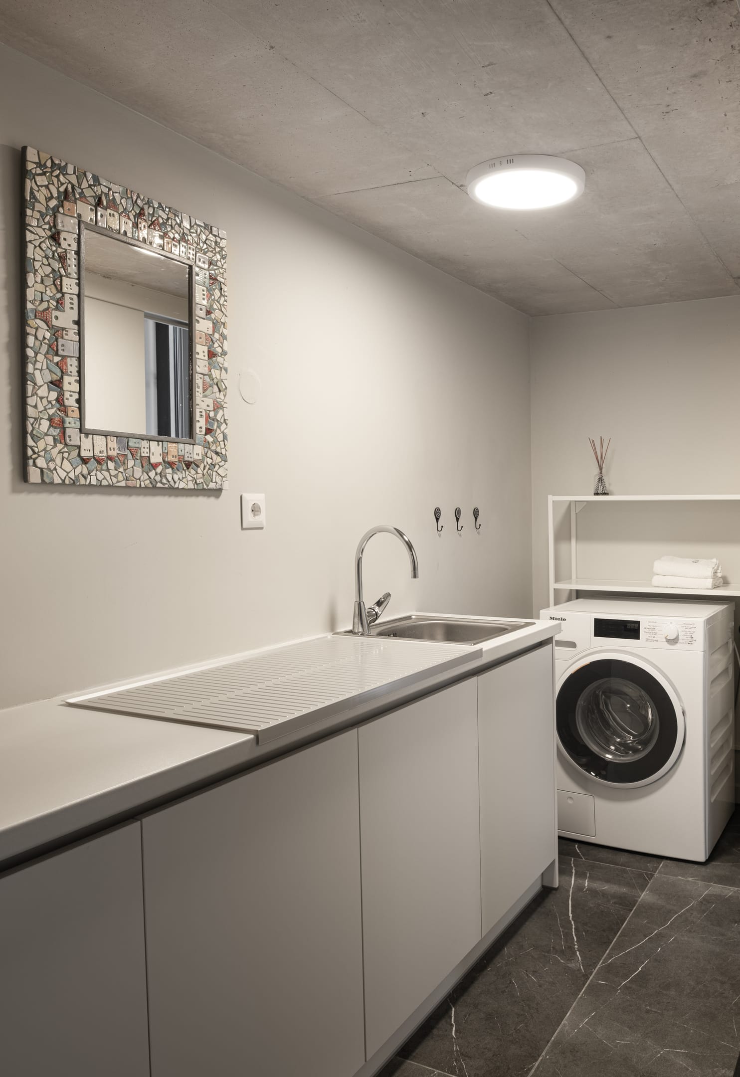The villa is equipped with ducted air conditioning for year-round comfort, and a dedicated laundry room with a washing machine, ironing set, and drying loft to accommodate extended stays.