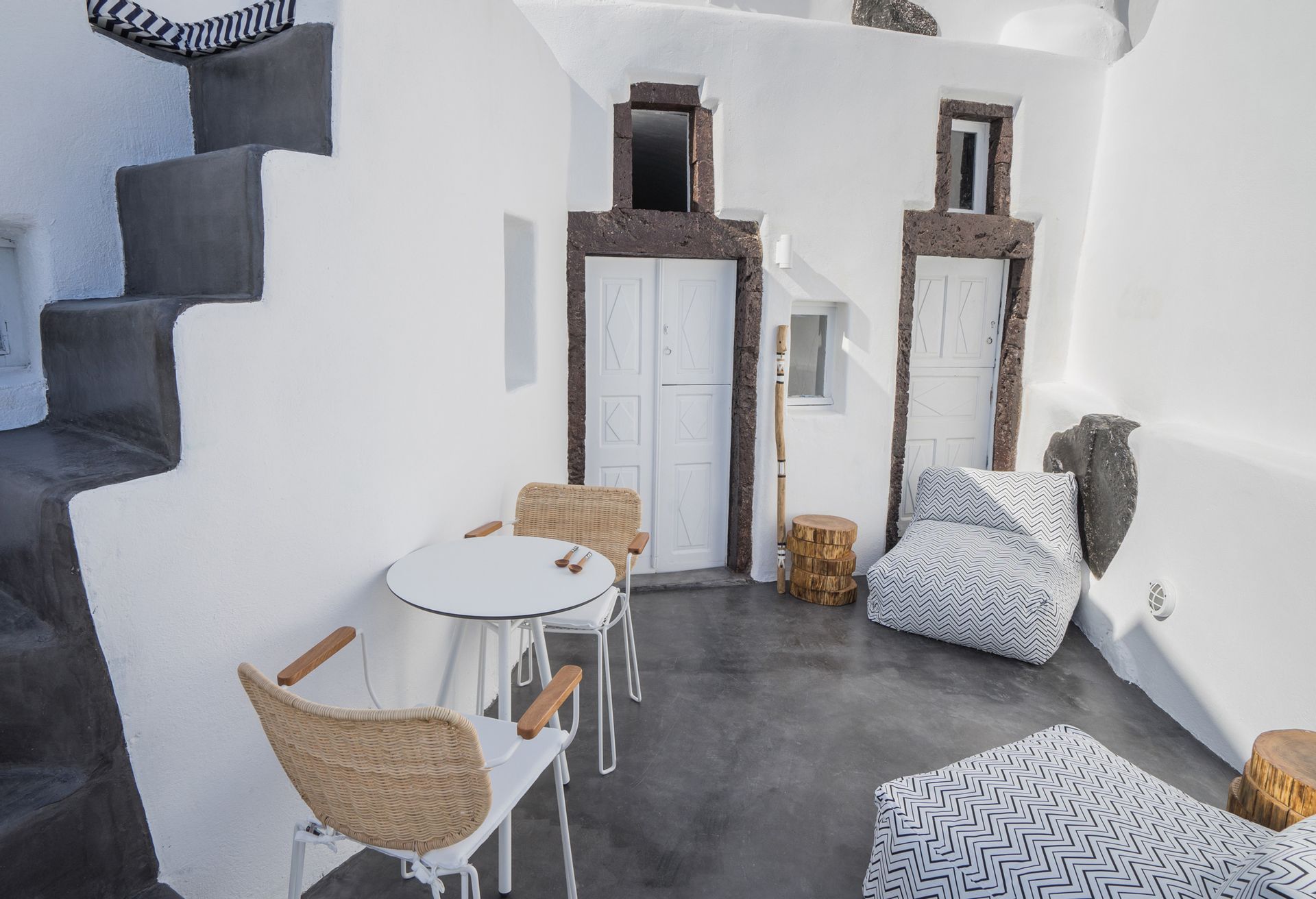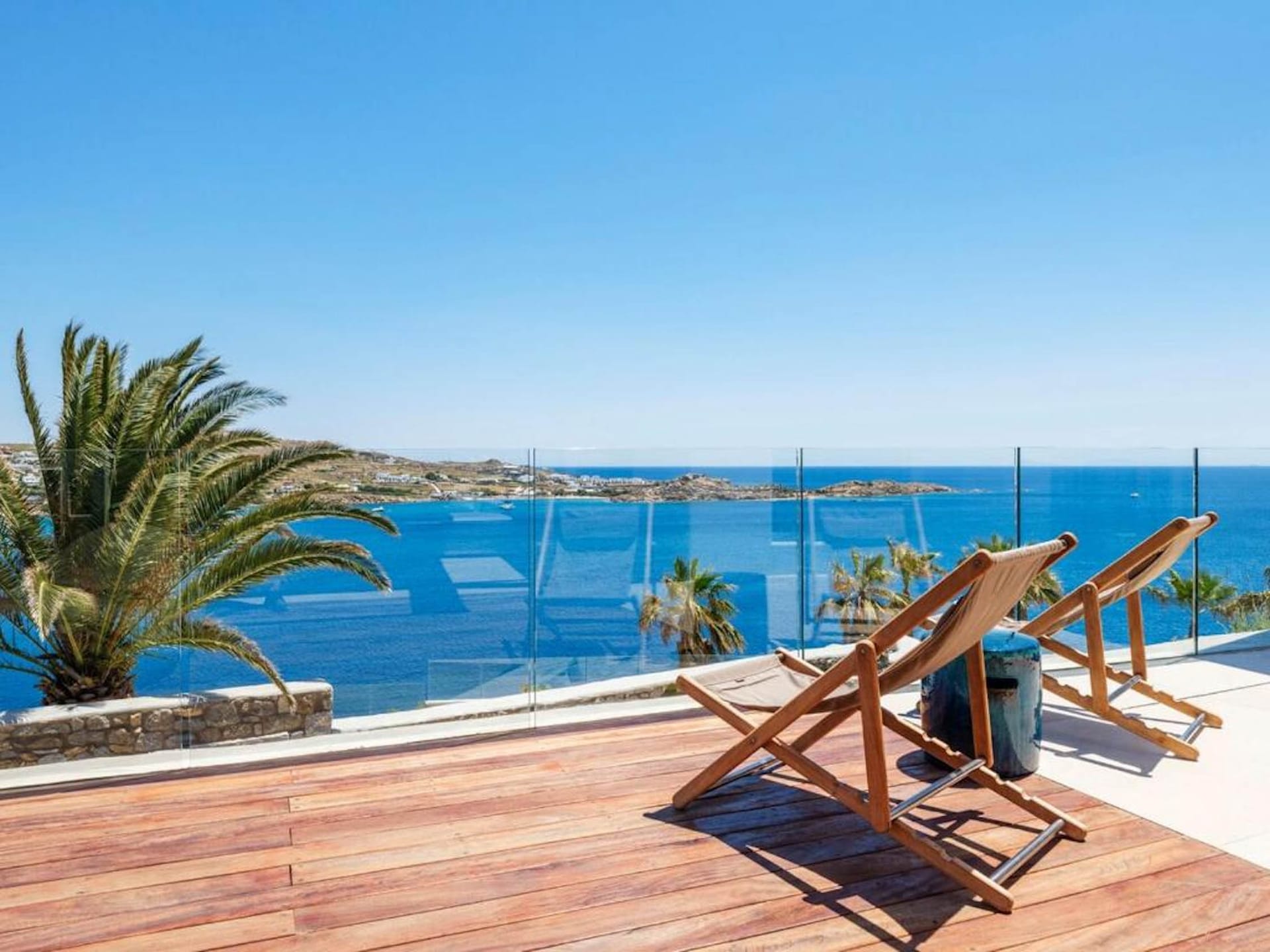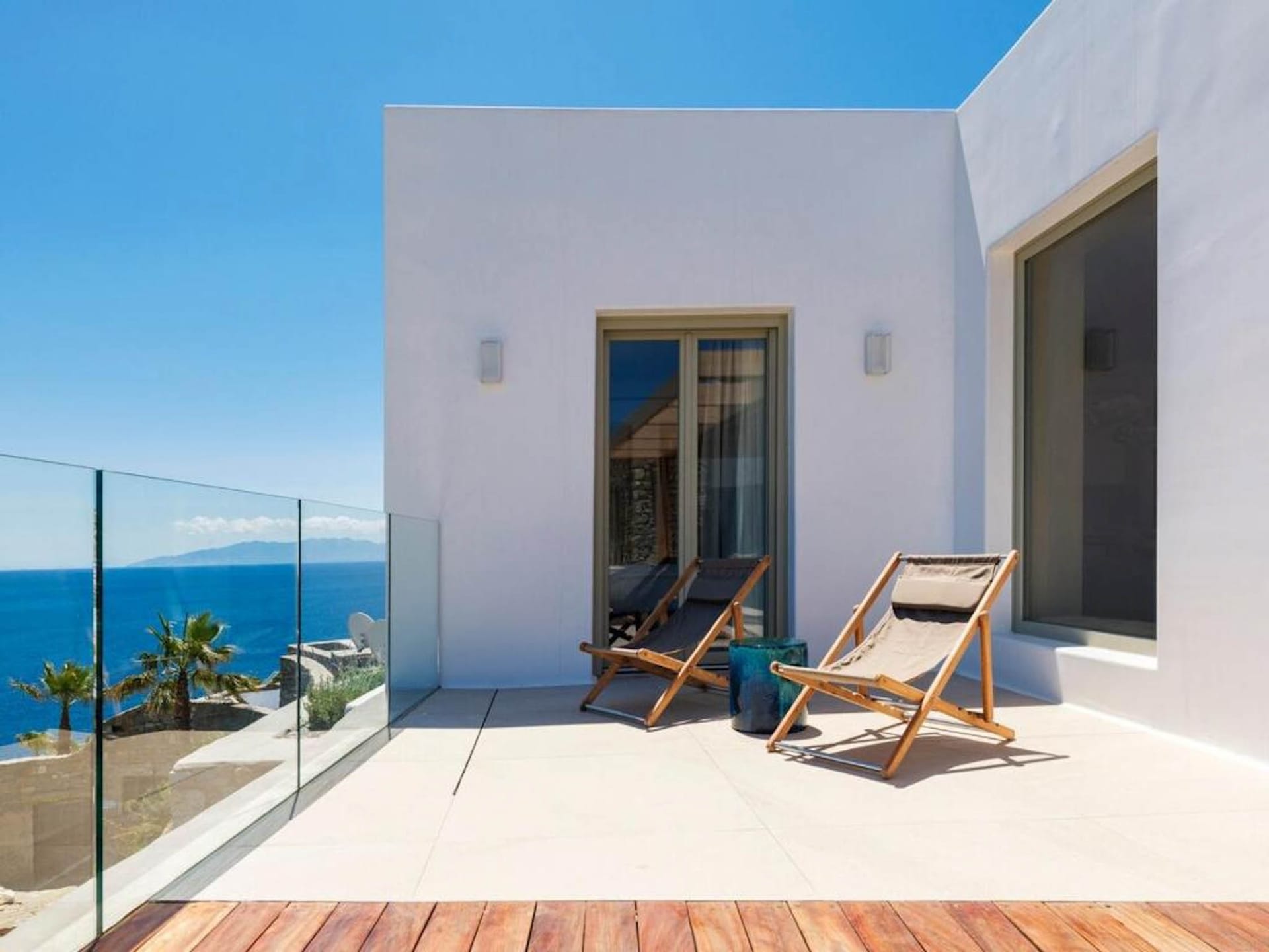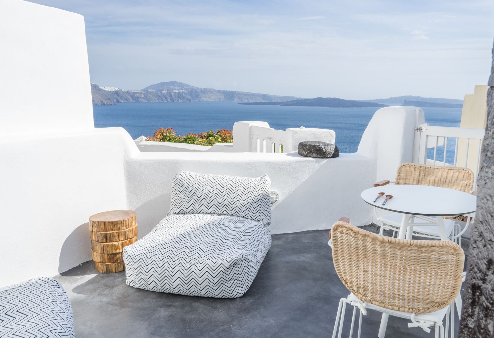 An outdoor stone-built staircase by the pool takes you to a small balcony and a detached classic-styled bedroom with a double bed, a sofa bed, a flat screen TV and an en suite bathroom.