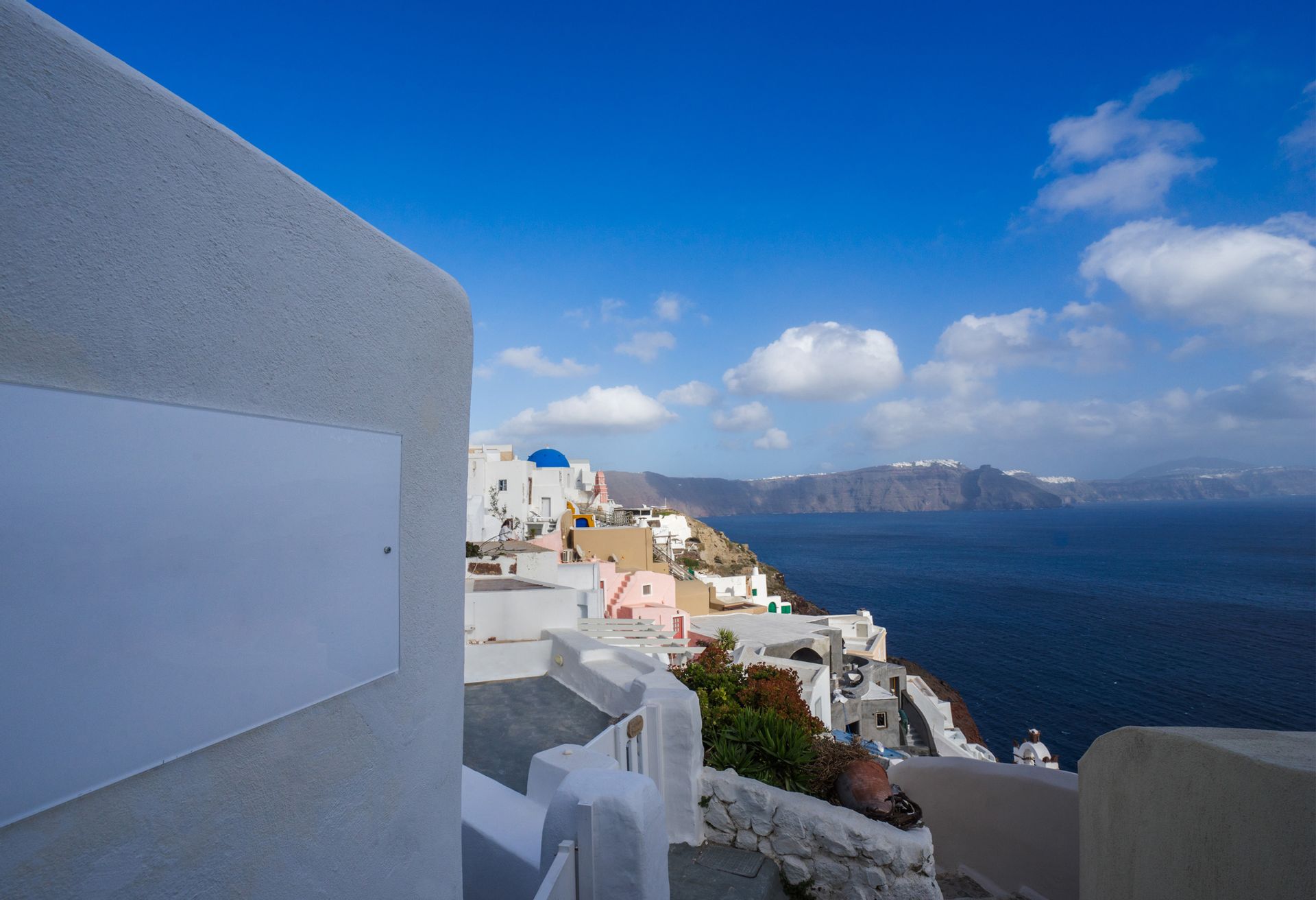 Entering the villa, there is an open-plan area consisting of the living room with a large luxurious corner couch, a satellite HDTV and the fully equipped kitchen with appliances such as fridge, oven, coffee maker etc and utensils.
