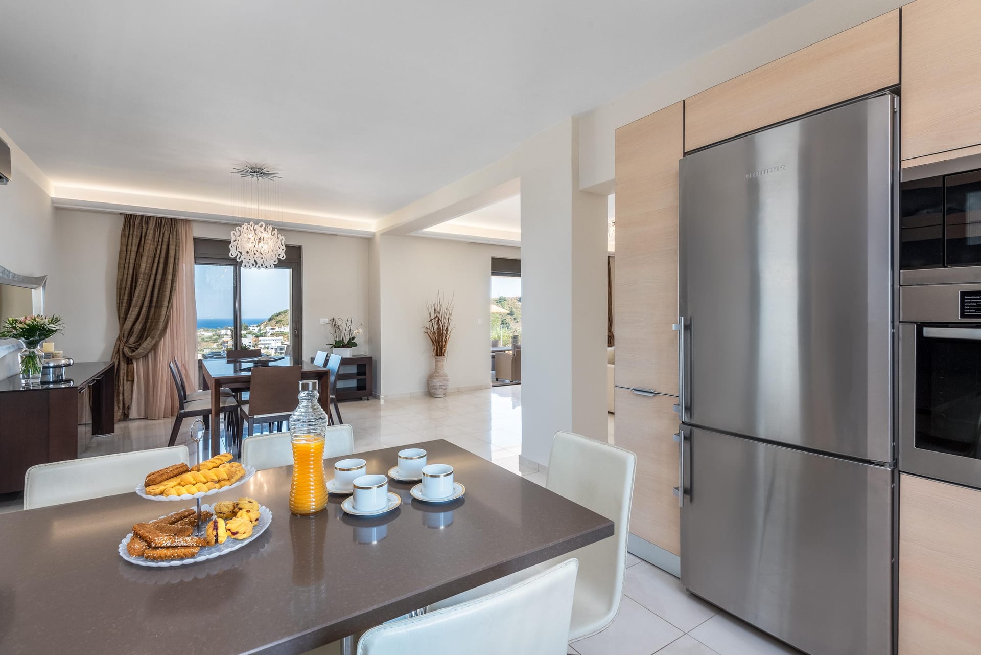 The villa is located approximately 27 minutes from the airport. The crystal-clear waters near the villa make swimming enjoyable and exciting, while nearby cafes and bars offer refreshing drinks and traditional food.