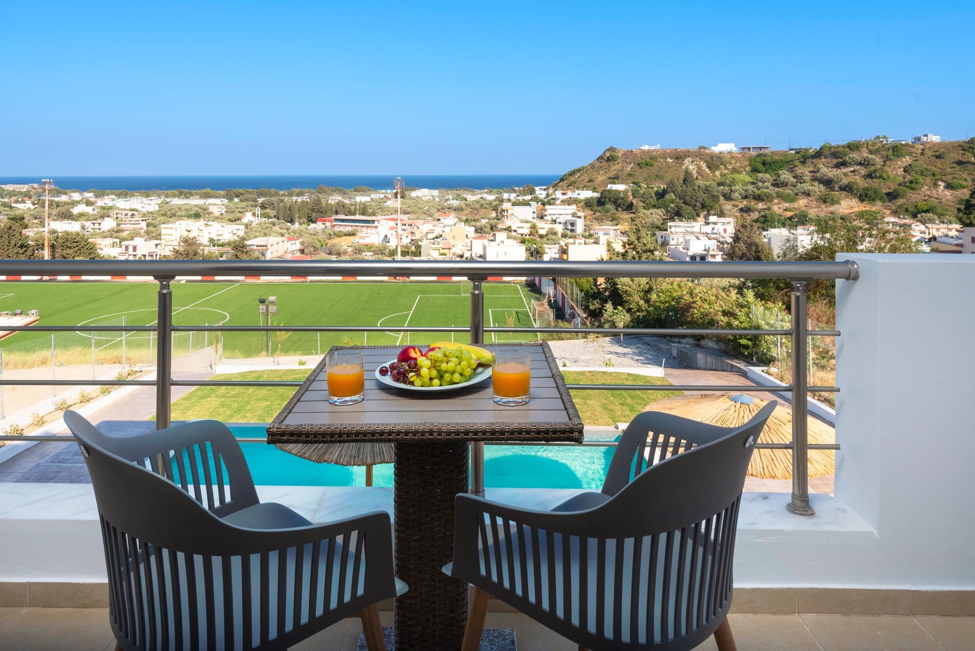 Acro Villa is conveniently located within a 2-minute drive from Afantou village, close to supermarkets, restaurants, bars, pharmacies, and car rentals. The cleanest beach on the island, Traounou beach, is just a 5-minute drive away. Guests can also explore Afantou beach and the island's golf course. The famous Tsampika beach, known for its soft golden sand and shallow waters, is only a 15-minute drive from the villa.