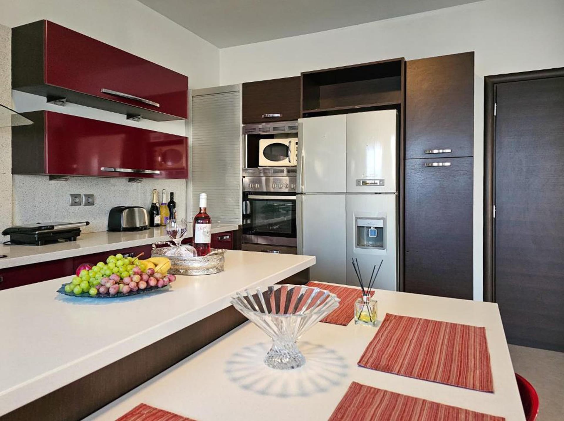 The villa includes two bathrooms, one with a relaxing bathtub on the first floor and one with a convenient shower on the ground floor. The spacious living room is perfect for unwinding, with a smart TV for entertainment. The fully equipped kitchen is ideal for preparing meals of any kind, making it easy to enjoy home-cooked food during your stay. Outdoors, you’ll find a dining area with a BBQ, perfect for enjoying meals in the fresh air. The private swimming pool invites you to relax and cool off, while the private parking space for two vehicles adds extra convenience.