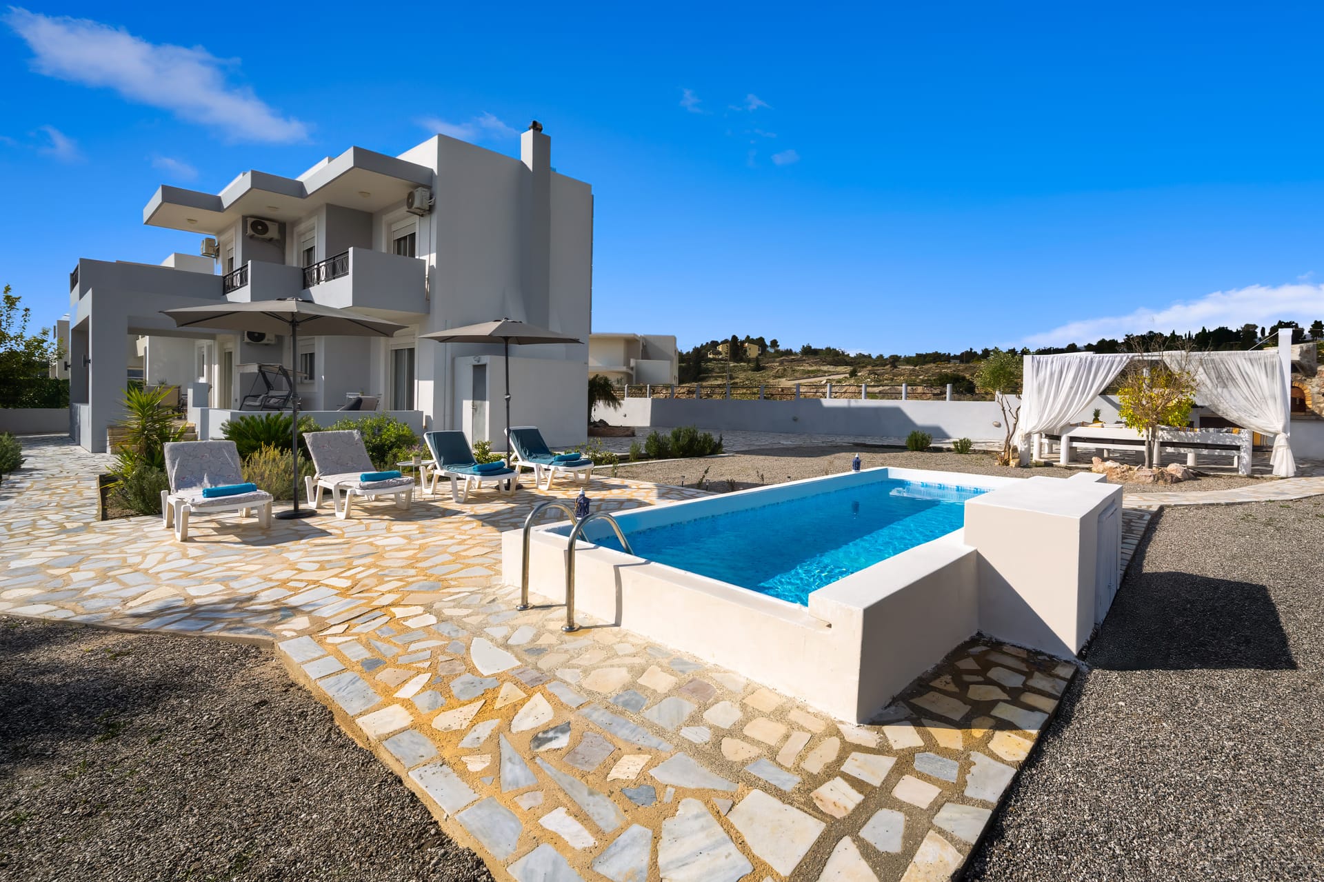 Calm and Joy Summer House in Afandou, Rhodes, is a charming villa that accommodates up to 7 guests. It features three air-conditioned bedrooms, all located on the first floor—two with comfortable double beds and one with three single beds. Each bedroom has its own balcony, offering a private space to enjoy the view.