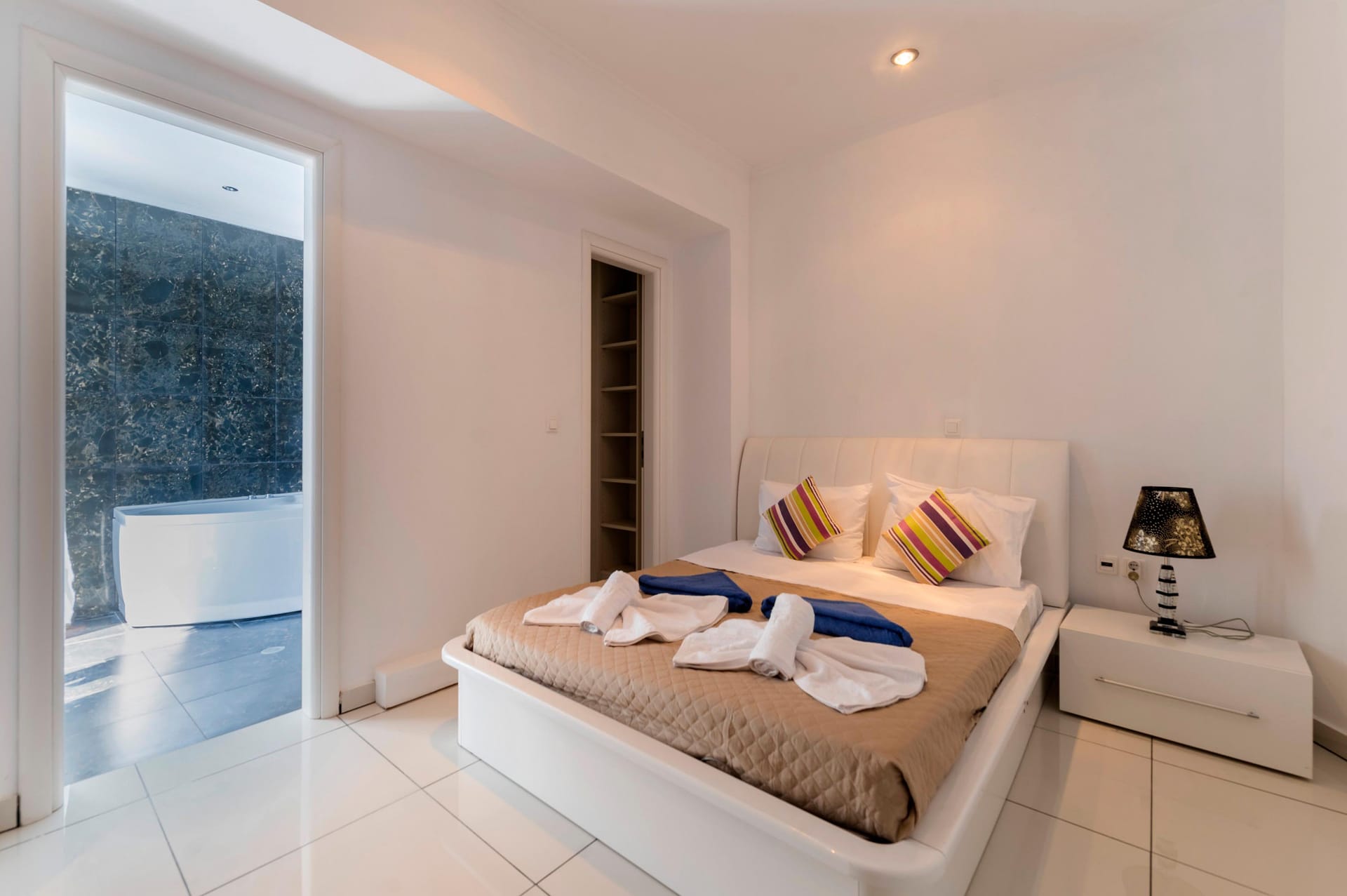 This incredible villa offers 4 fantastic bedrooms, each of which is fully air-conditioned and offers an ensuite bathroom. Also, all bedrooms have a flat-screen TV with cable channels and a balcony. From the balconies, you can admire the beautiful emerald waters of Rhodes.