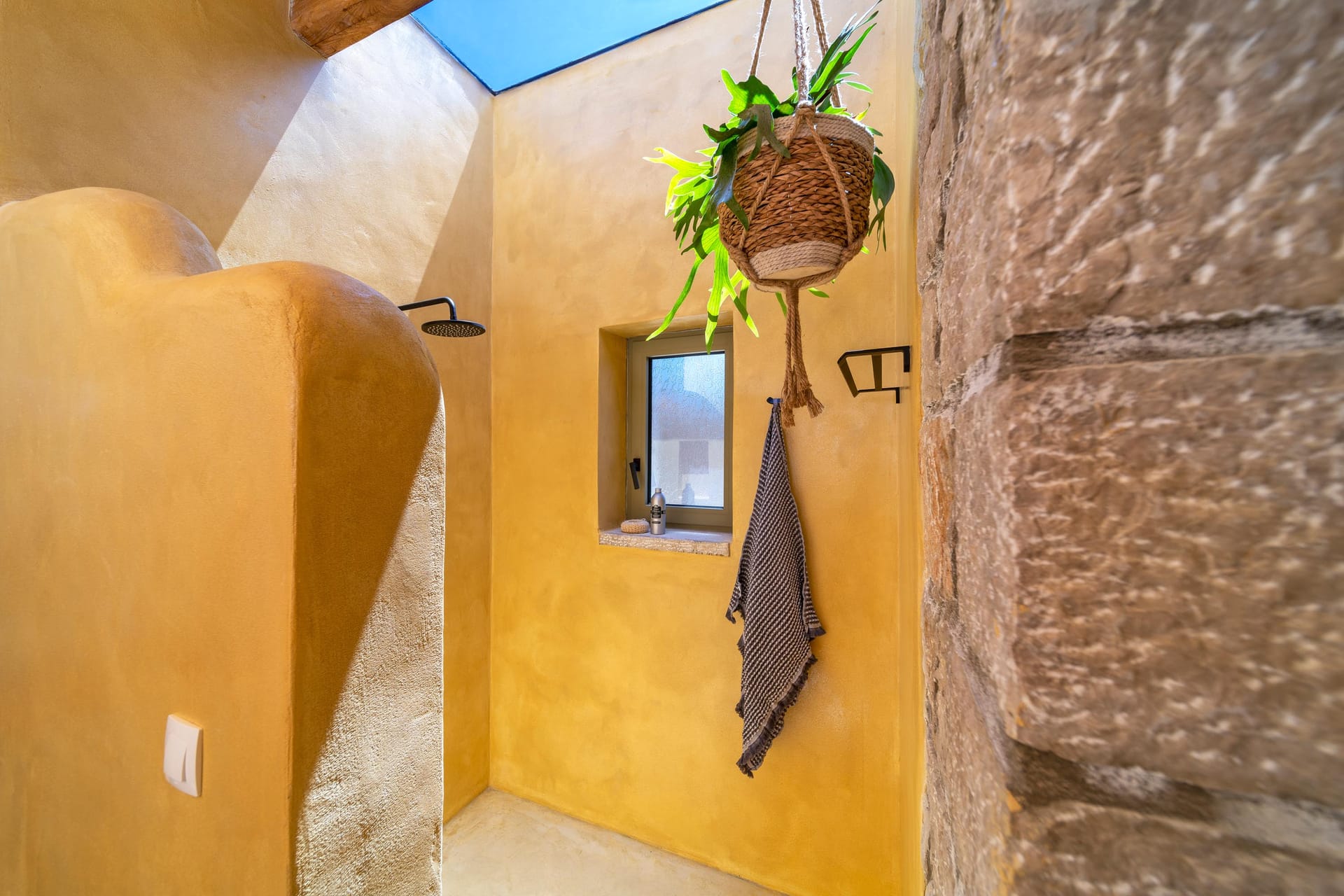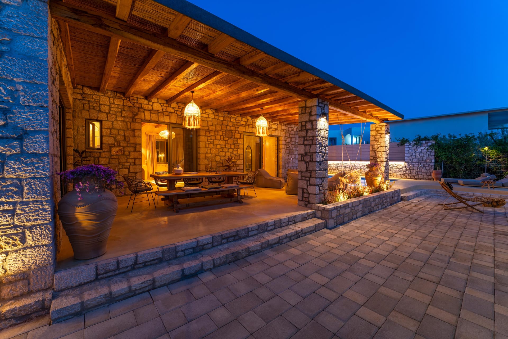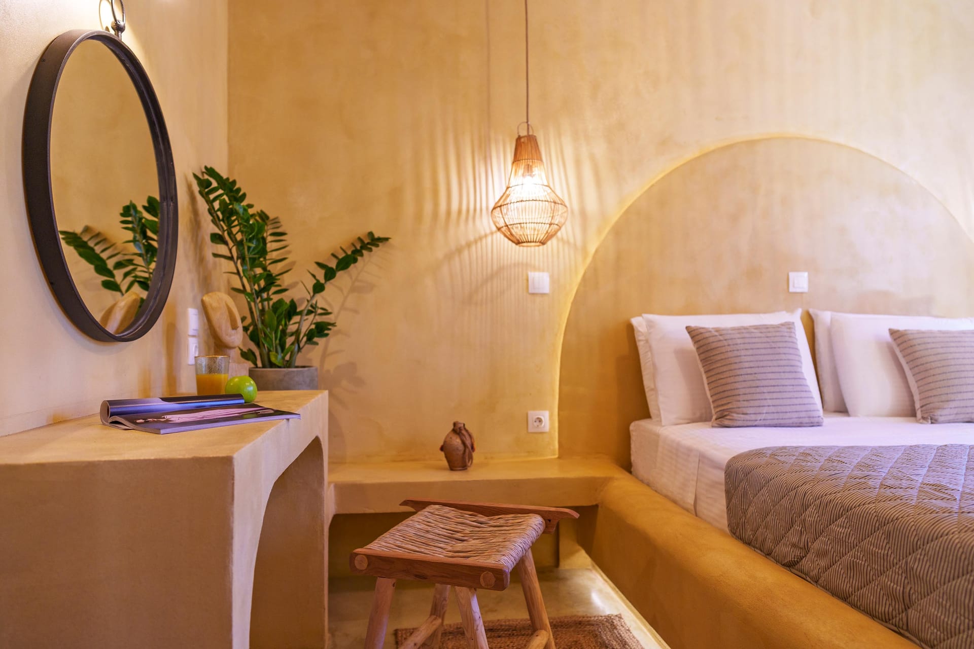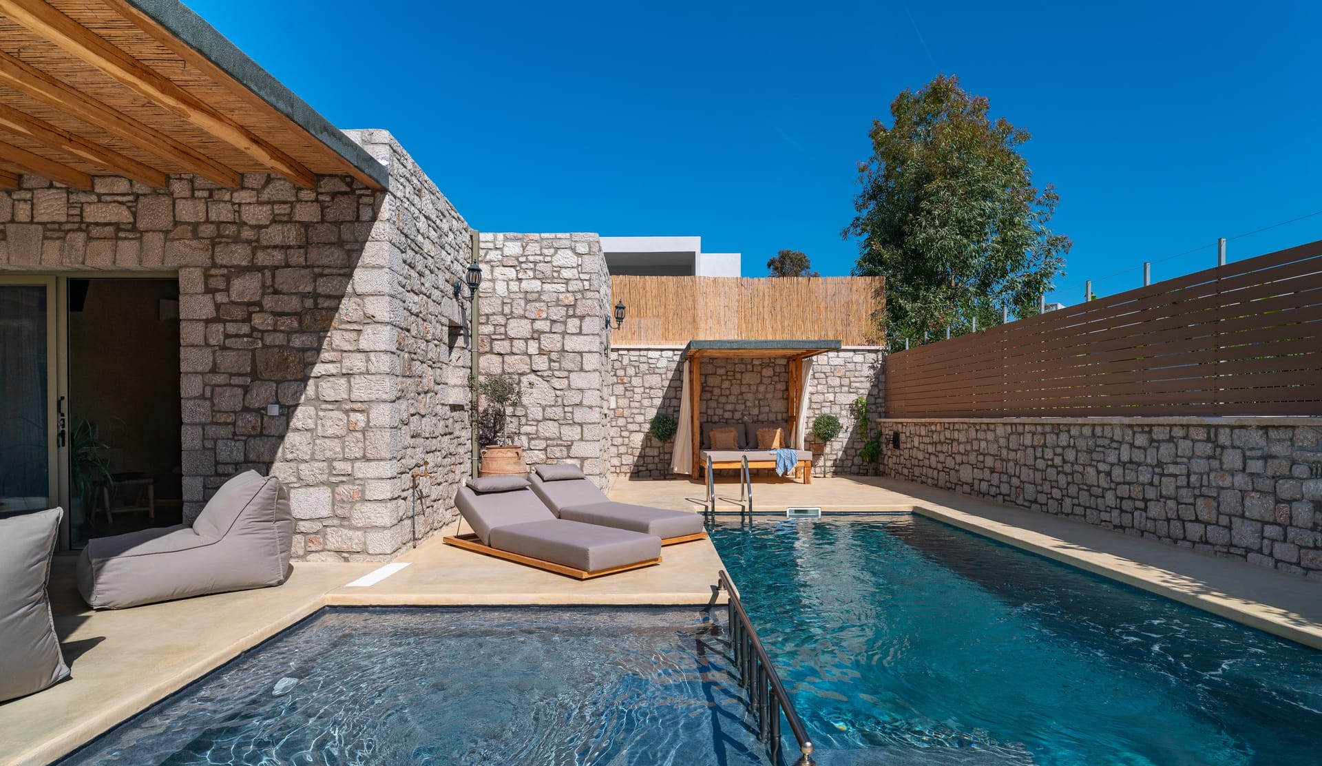 Onar Villas are located in the famous area of Kolympia village, just a short walk from Kolympia beach. Eftopia Villa accommodates up to 8 guests and features 3 fully air-conditioned bedrooms, each with double beds in warm tones and a unique bohemian design. One of the bedrooms is outdoors and has its own entrance and bathroom, and all bedrooms include ensuite bathrooms with showers. The living room also has a double sofa bed for additional guests.