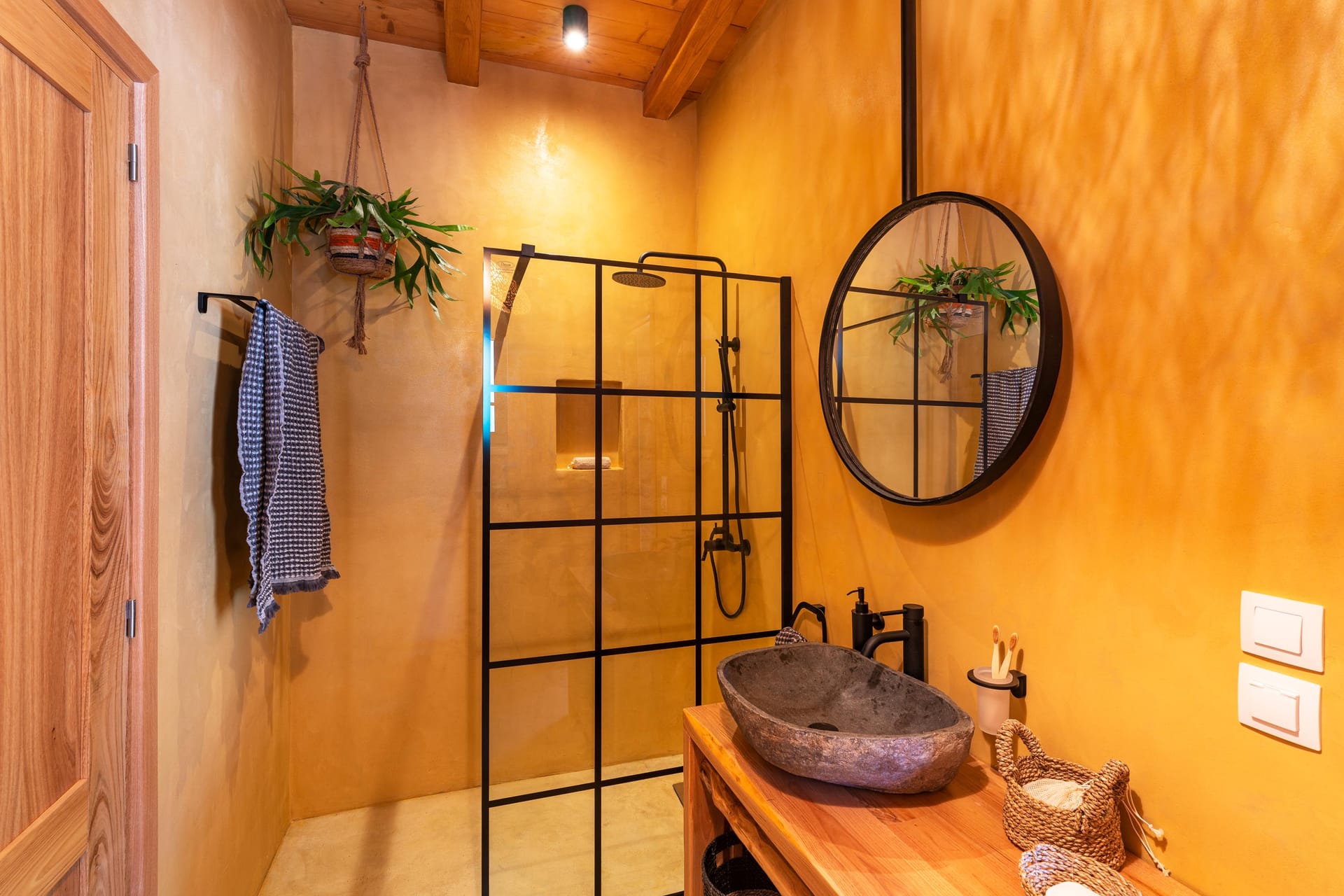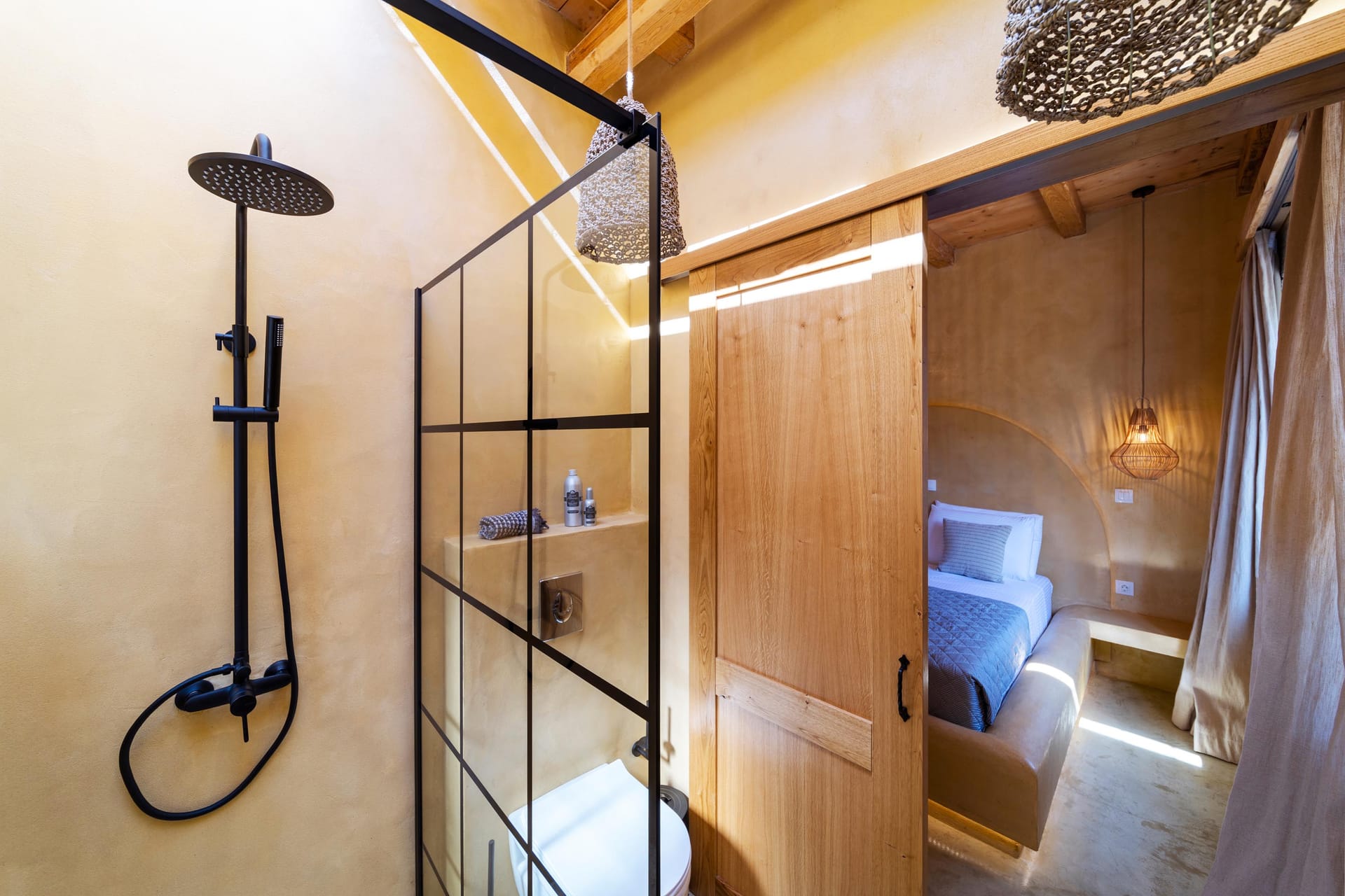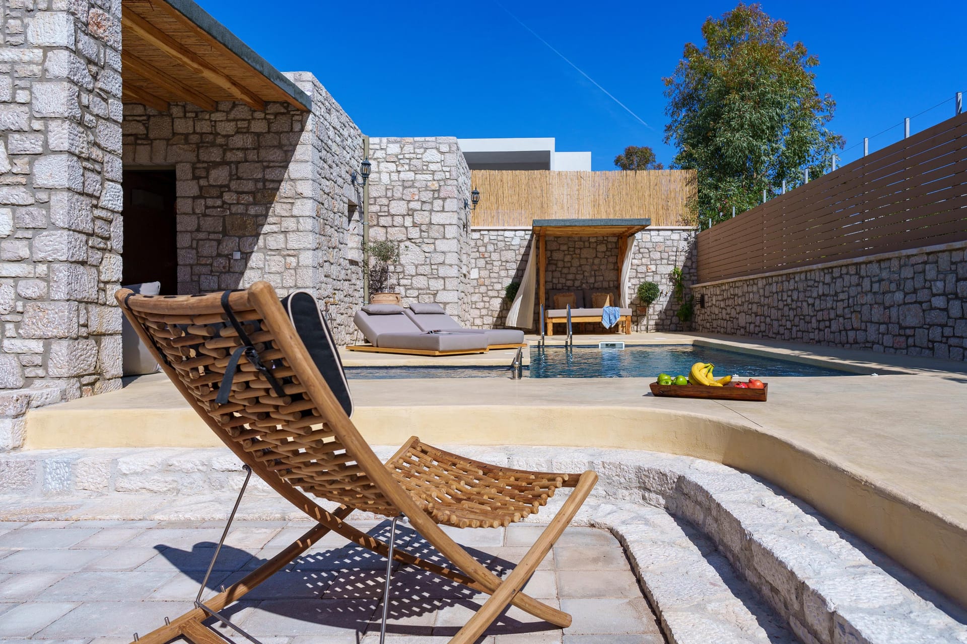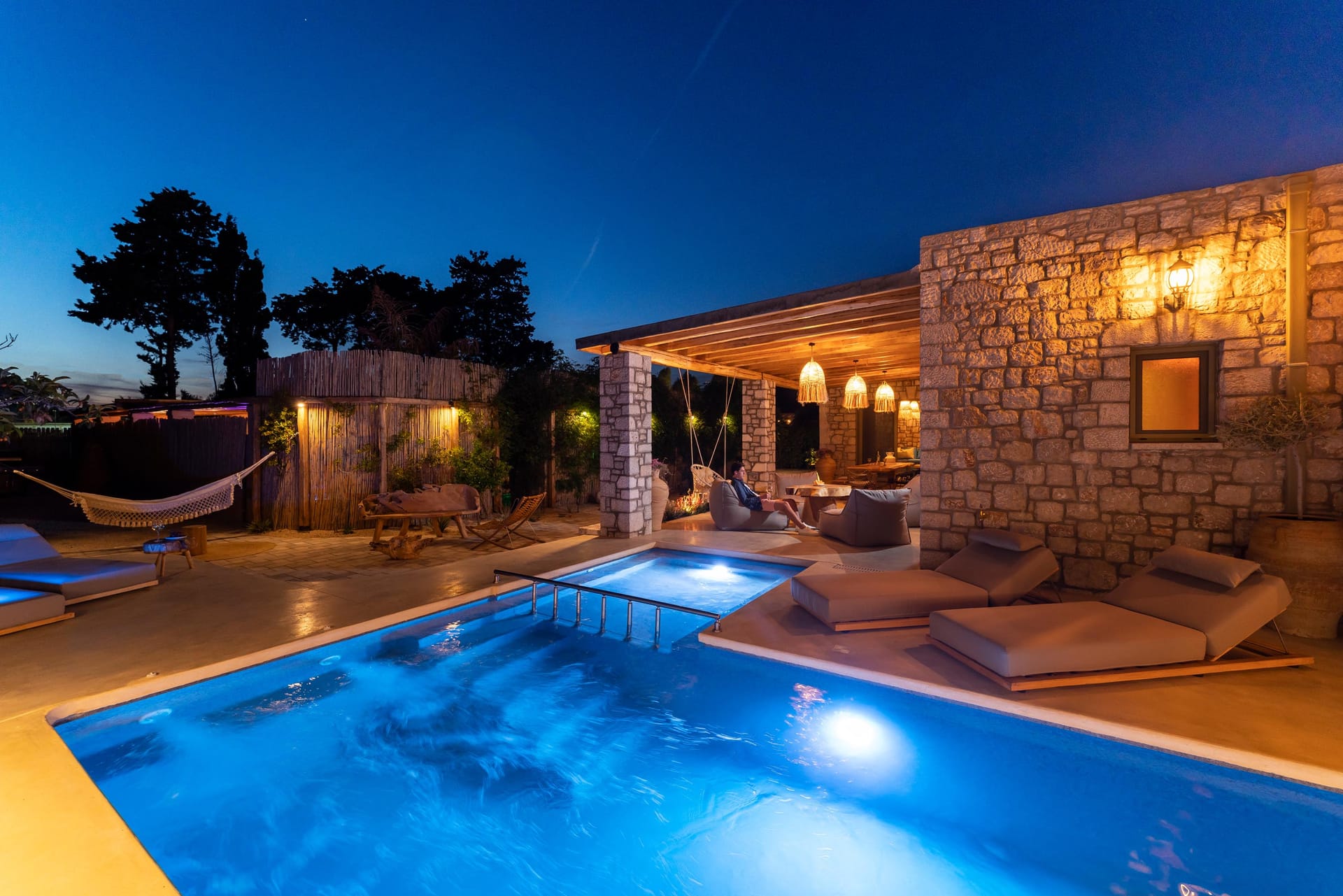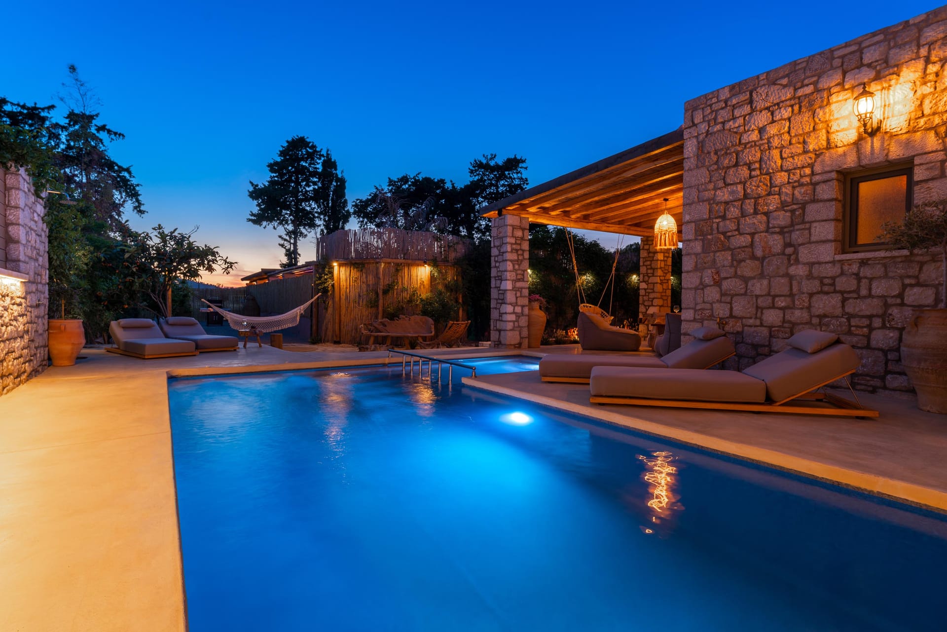 Onar Villas are located in the famous area of Kolympia village, just a short walk from Kolympia beach. Eftopia Villa accommodates up to 8 guests and features 3 fully air-conditioned bedrooms, each with double beds in warm tones and a unique bohemian design. One of the bedrooms is outdoors and has its own entrance and bathroom, and all bedrooms include ensuite bathrooms with showers. The living room also has a double sofa bed for additional guests.