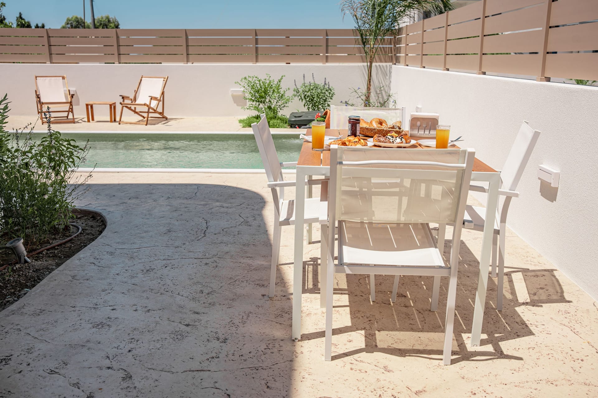 Outdoors, guests can enjoy a private swimming pool, sunbeds for relaxing