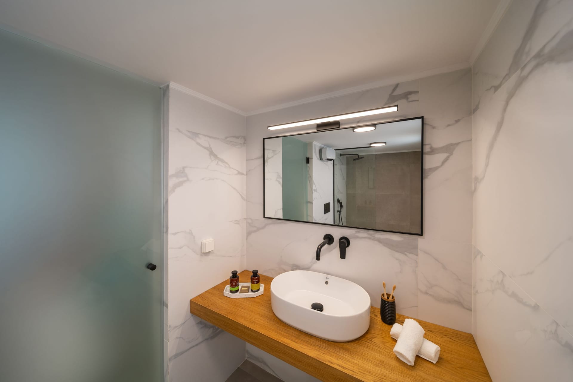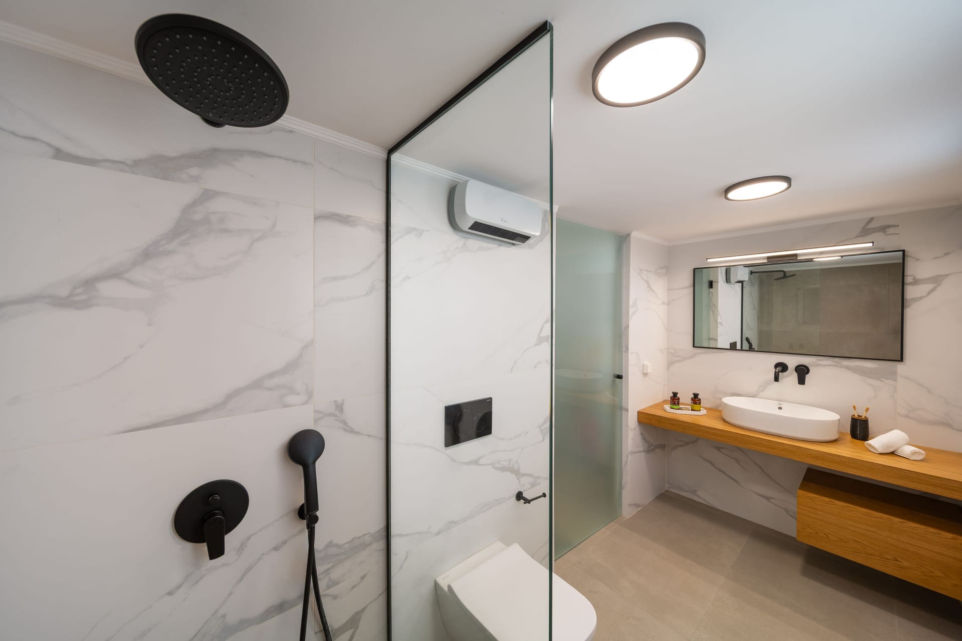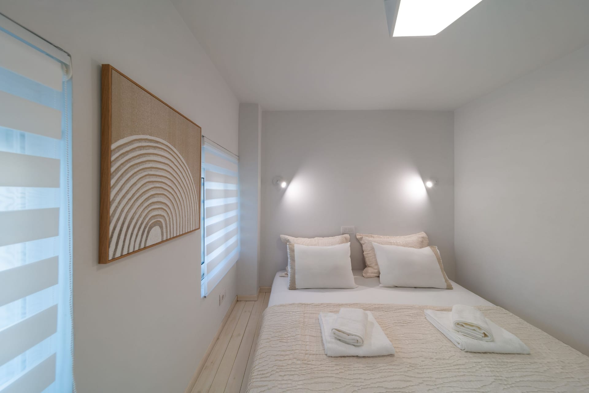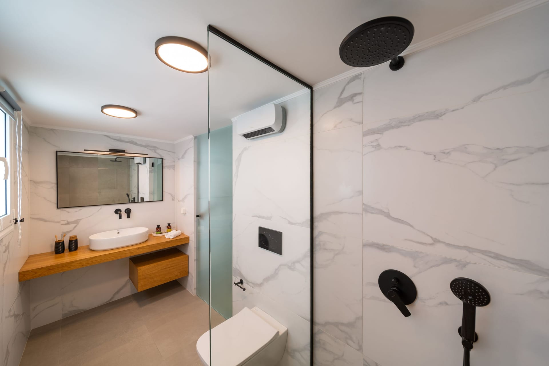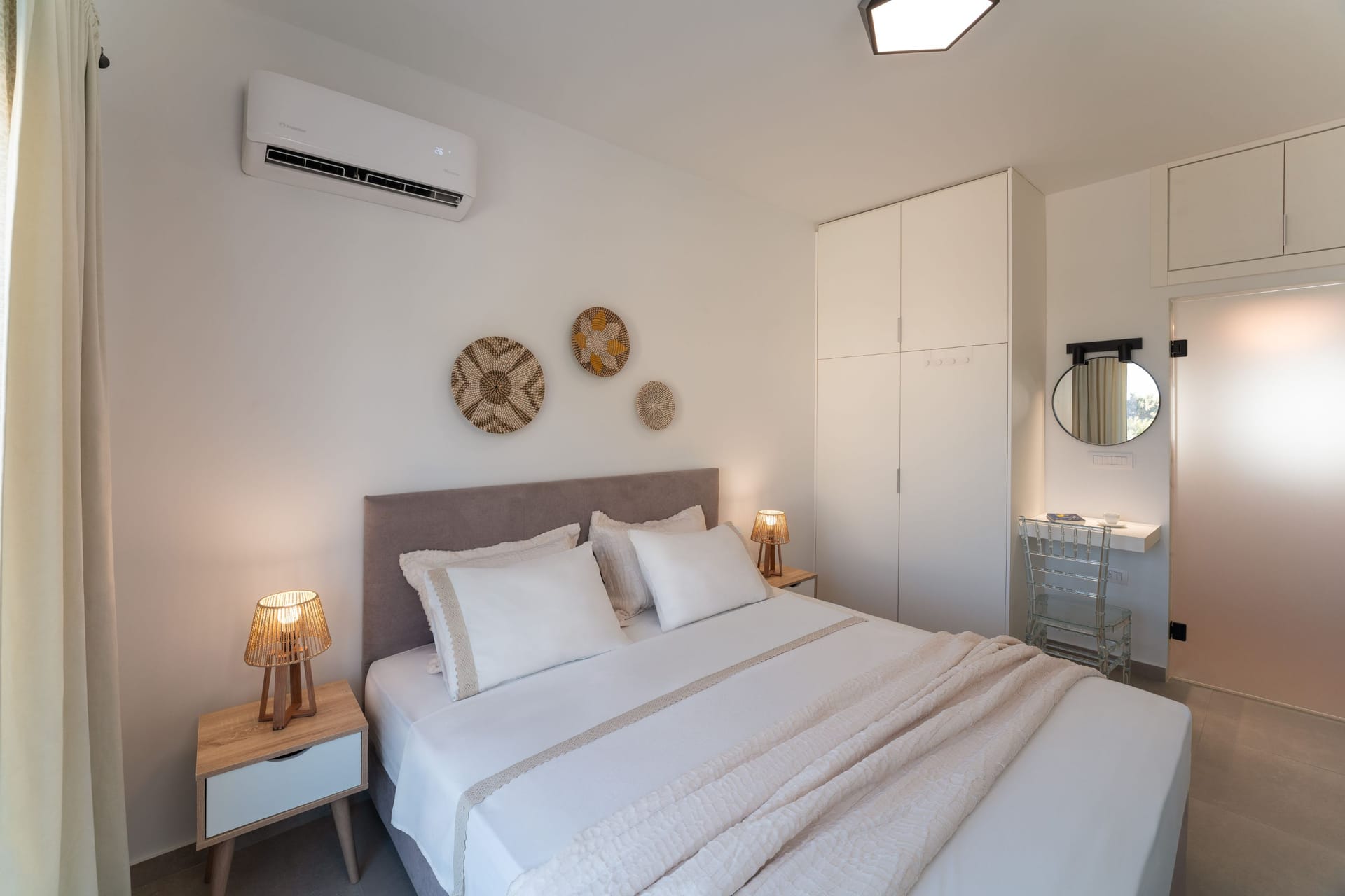 Gioiello Villa, located in the charming area of Pefkous, is an elegant retreat perfect for up to six guests. The villa features three spacious bedrooms on the first floor, each with a luxurious king-size double bed. Two of the bedrooms include ensuite shower bathrooms, while an additional WC is conveniently located on the ground floor.