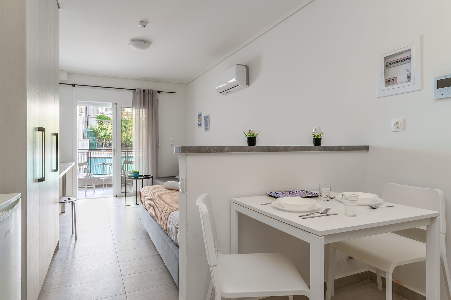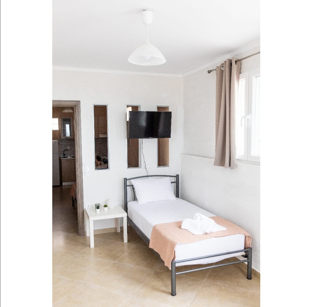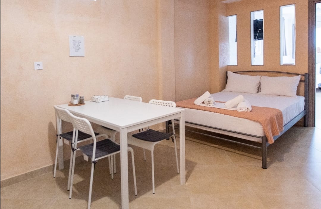 Kima studio is a great combination of stylish design and comfort. Guests of Kima have access to the luxurious furnished terrace of the complex, where an atmospheric environment awaits them. They can relax and enjoy the picturesque view of the sea, especially in the golden hour when the scenery looks like a postcard. The studio contains one double-bedded master bedroom and a comfy sofa-bed. Also, it has a fashionable bathroom with a shower in a minimal structure. The kitchen is fully equipped for any meal preparation of your choice. In the same area, guests will find a homey sitting table and the cozy living room. Apart from their outdoor activities, guests can always relax in the living area and watch their favorite program on the flat screen or use the free Wi-Fi.