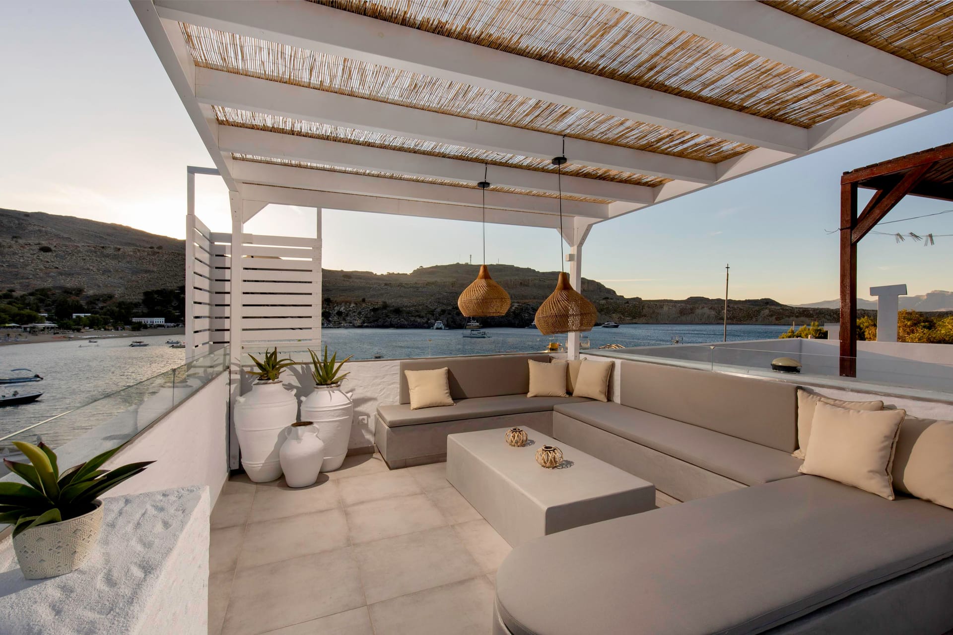 Thalassa luxury studios are brand new and are situated in the heart of Lindos, the most popular destination in Rhodes. As soon as guests arrive at the studios, the nearest beach awaits them only 10 steps away. The contemporary crafted studio has just been renovated and it’s prepared to accommodate up to 4 people.