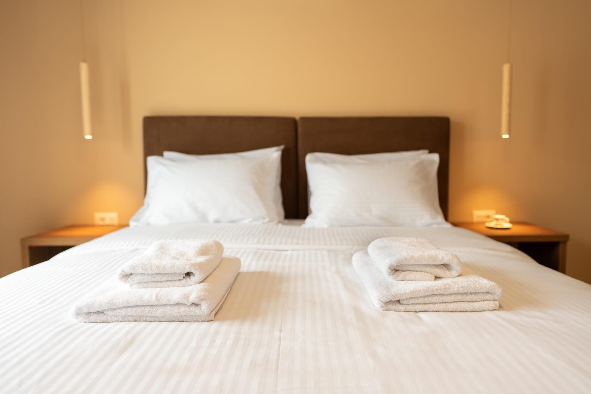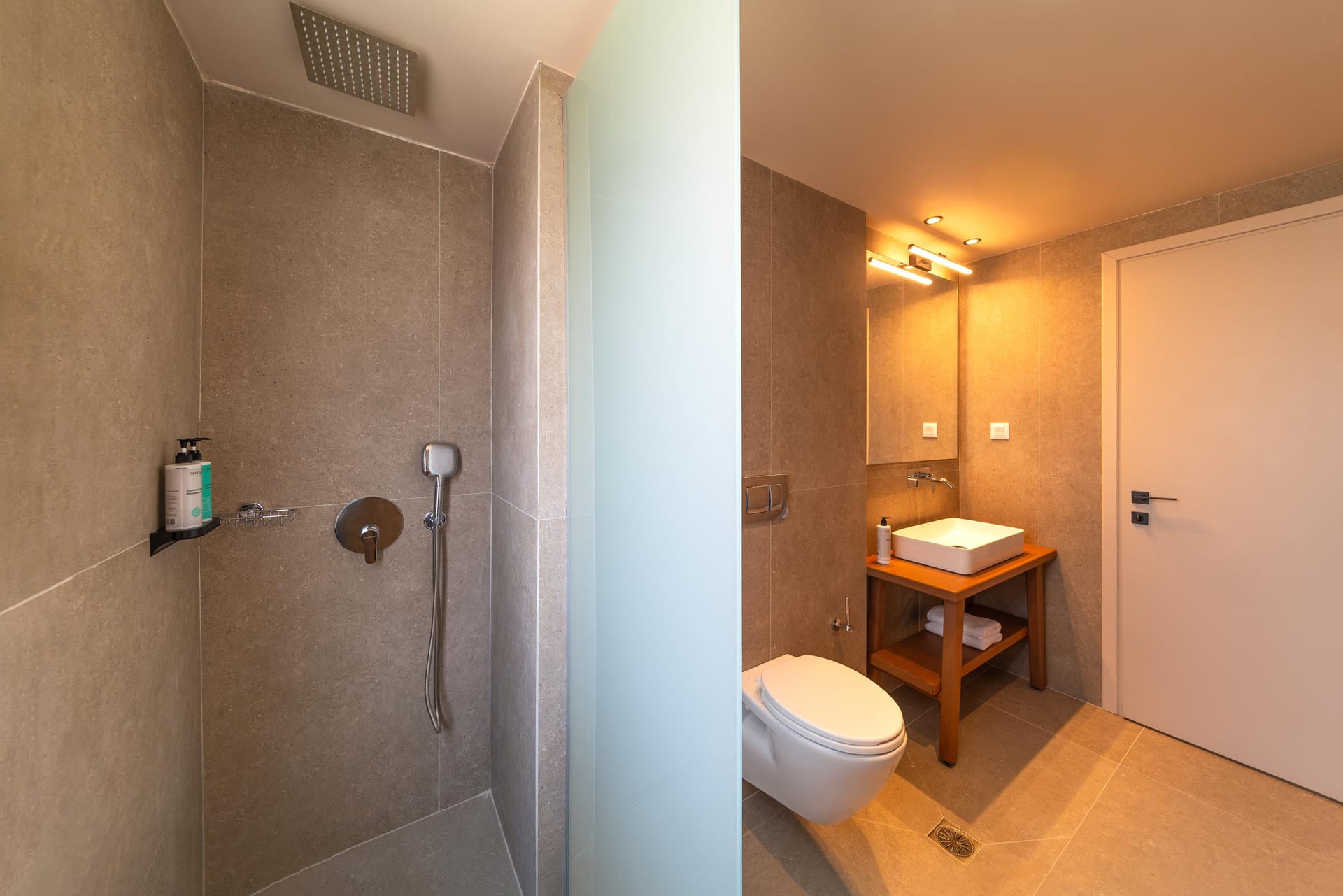 Luma Villas features four spacious bedrooms with double beds—one located in the basement, one on the first floor, and two on the second floor—ensuring privacy and relaxation. Guests will also find three bathrooms with showers, one on each floor, for added convenience.