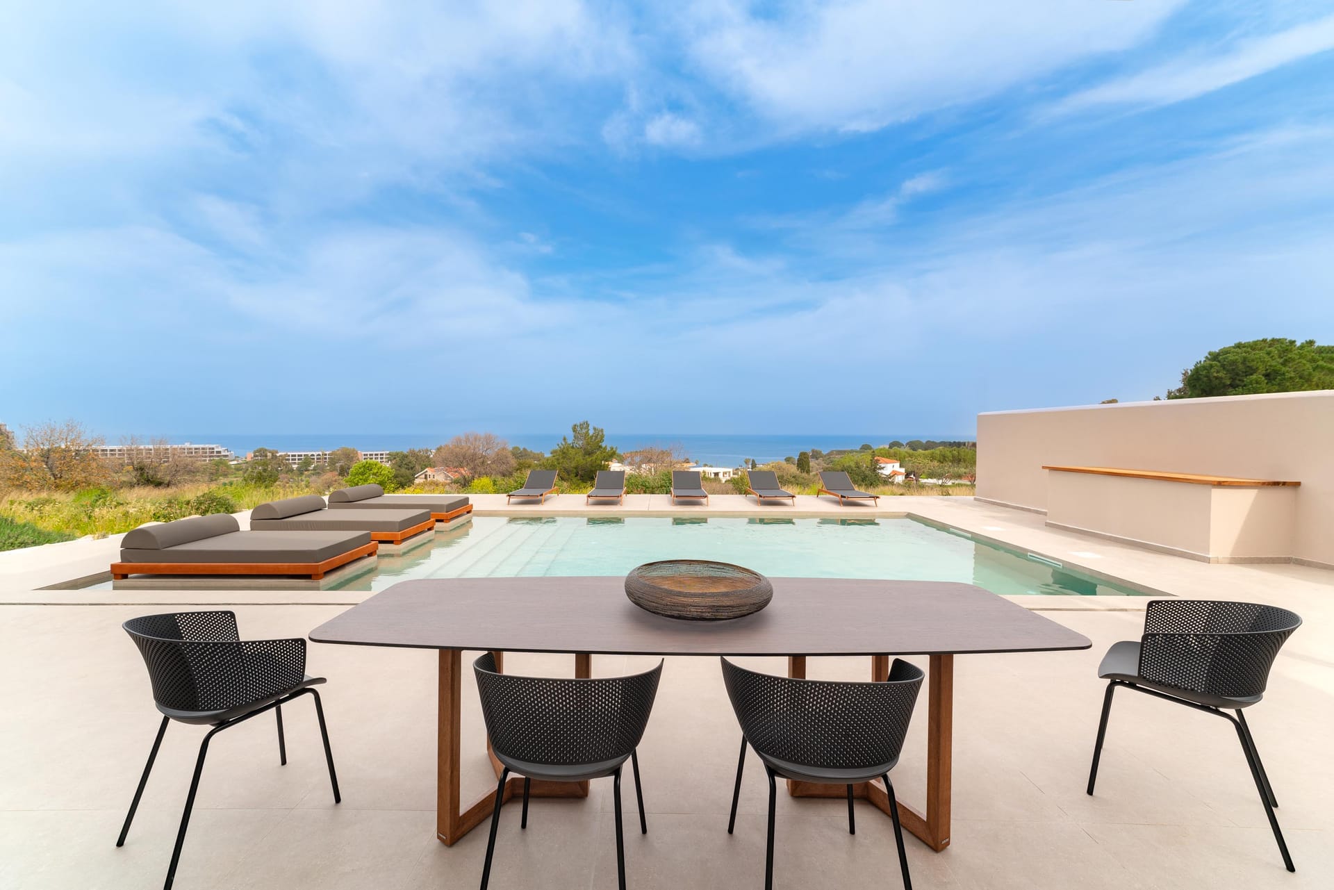 Luma Villas serve as an ideal base for exploring the diverse attractions of Rhodes while ensuring a tranquil getaway with premium facilities and privacy. Whether you're looking for relaxation by the pool or adventures around the island, these villas offer the perfect balance of comfort and convenience.The only distinction is that Luma Villa Elora is positioned on the side, offering serene mountain and garden views, providing a secluded and tranquil ambiance.