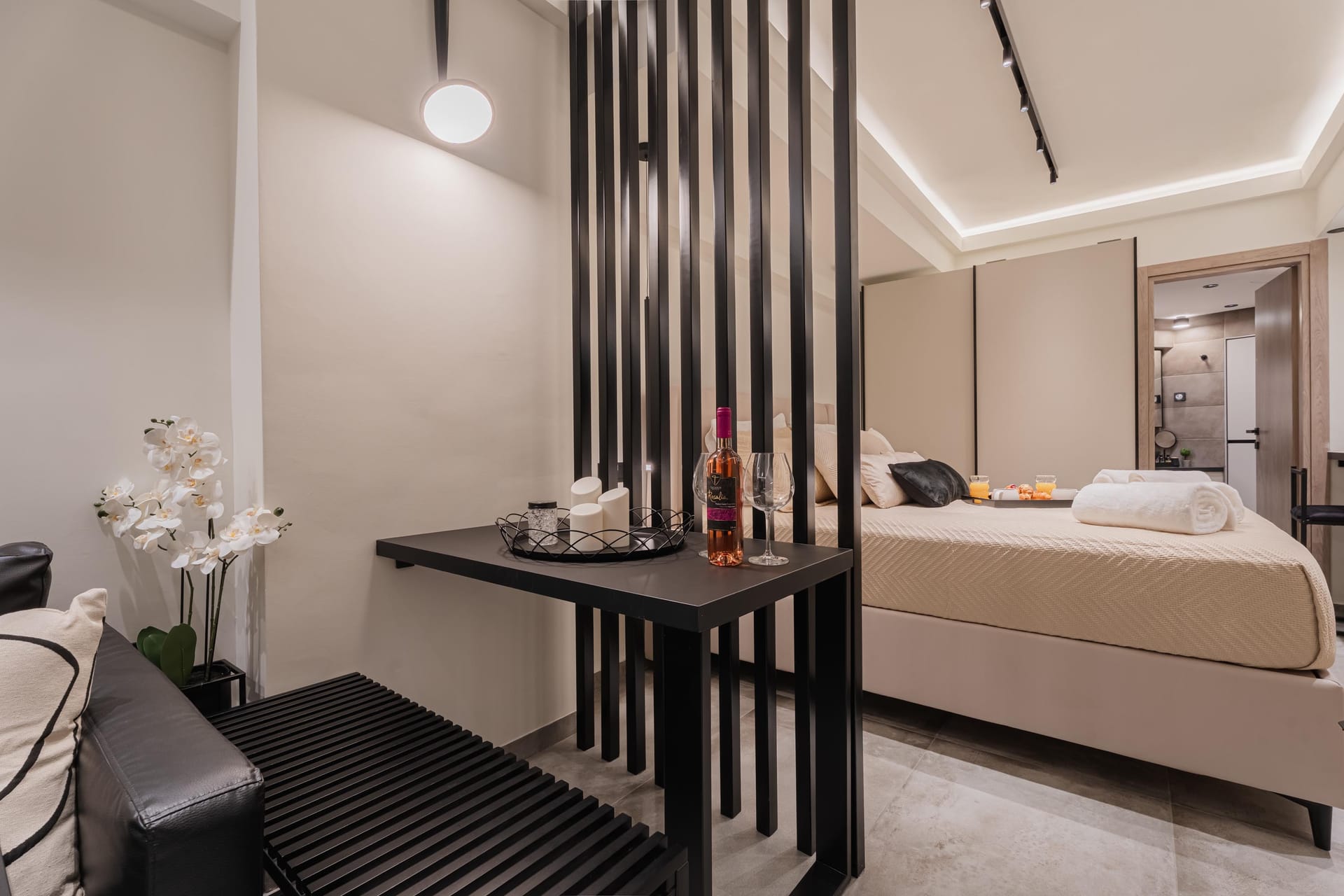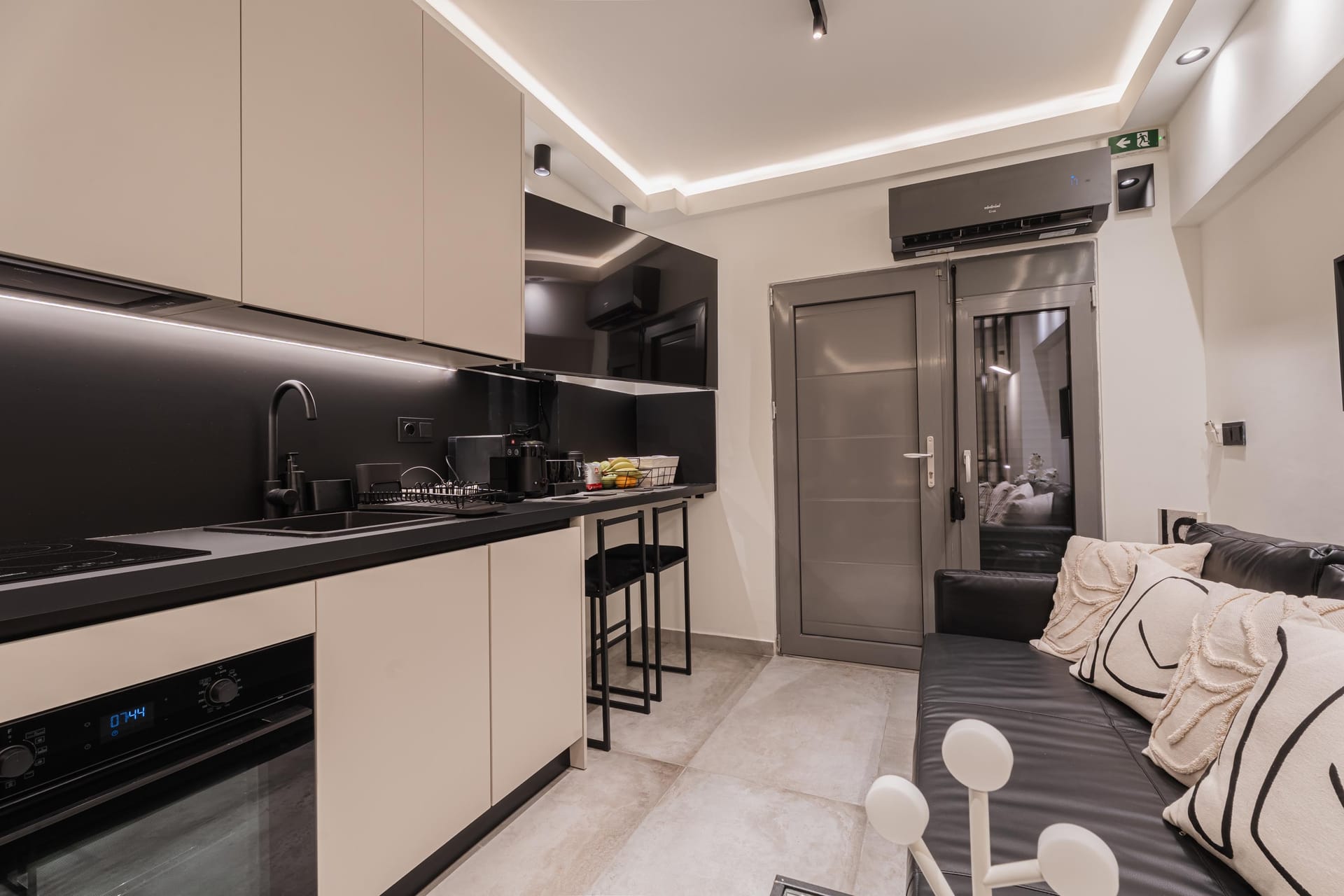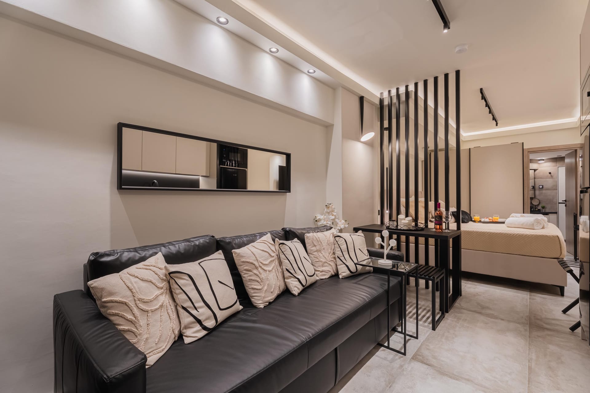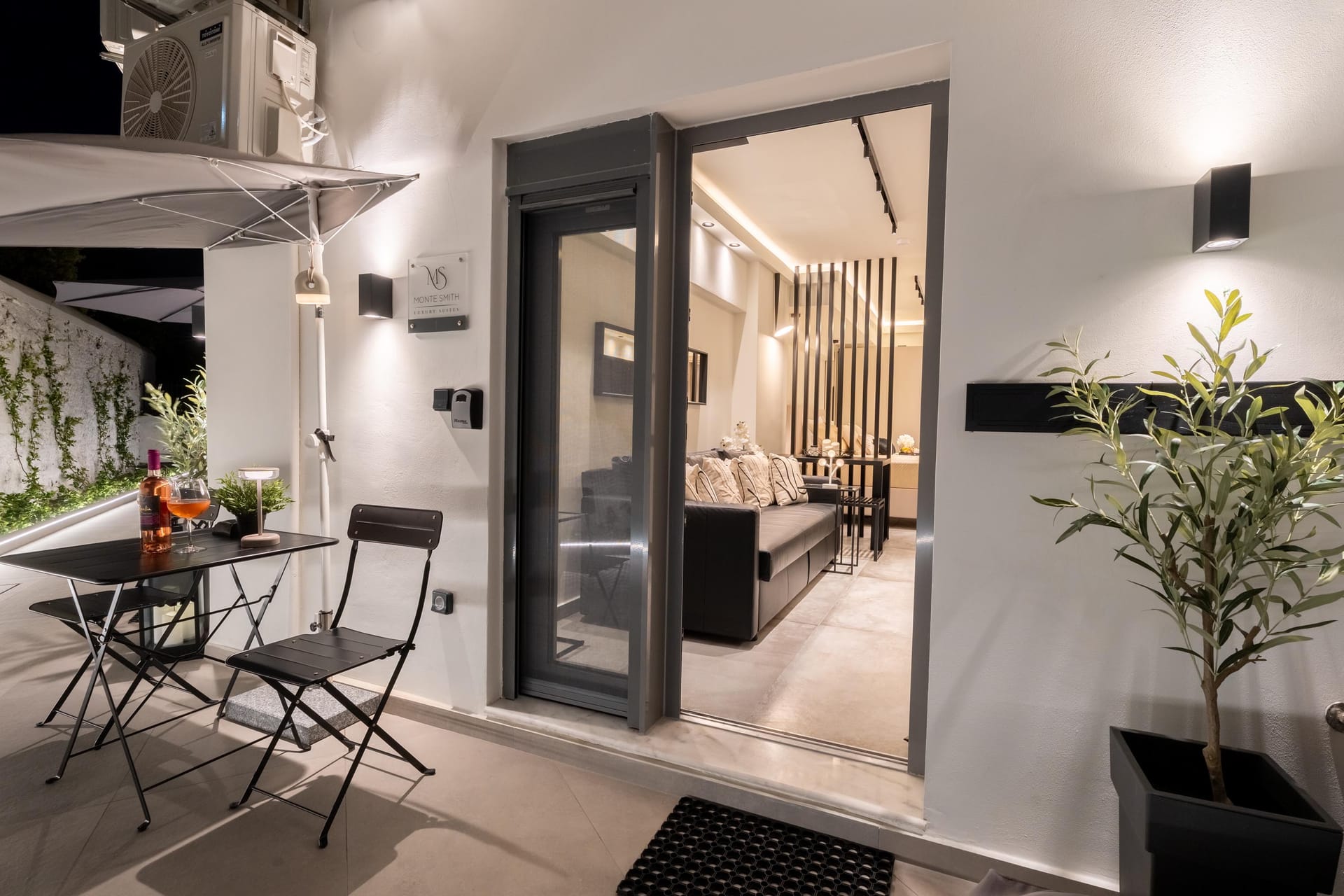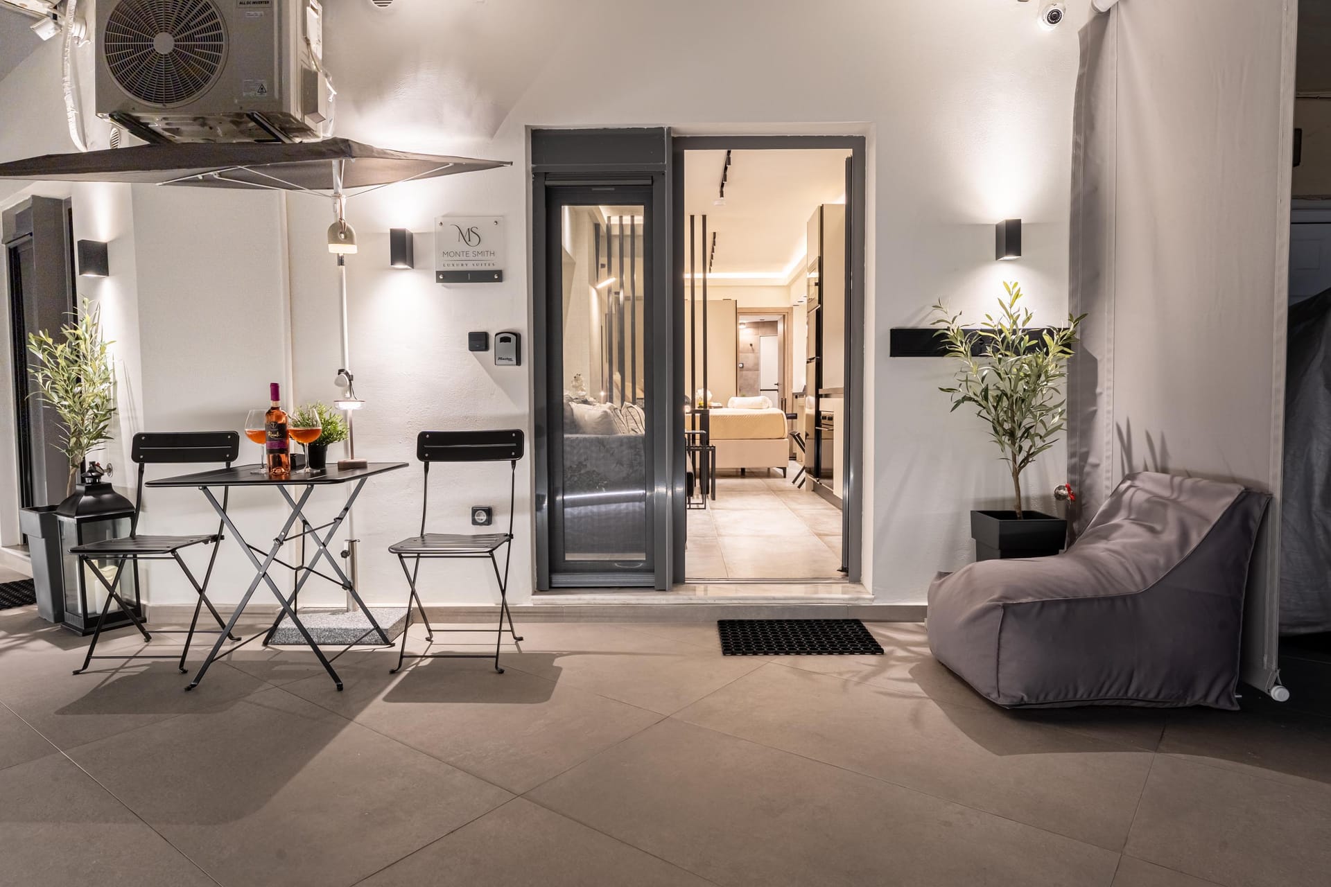Monte Smith Luxury Suite 1 is a stylish and thoughtfully designed retreat, ideal for couples. The open-plan layout features a double bed and a double sofa bed in the same space, with a clean, minimal design throughout. Guests can enjoy two Smart TVs with access to Netflix and satellite channels, a modern bathroom with a walk-in shower, and a fully equipped kitchen. The suite is equipped with an air conditioner featuring AI technology, and ultra-fast 300 Mbps Wi-Fi provide modern convenience.