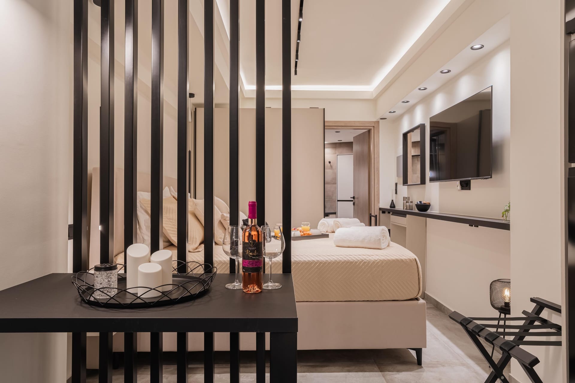 Monte Smith Luxury Suites are two brand-new accommodations (built in 2025) located in the serene and scenic Monte Smith area. Designed with a refined minimal aesthetic, they offer the perfect escape for couples seeking tranquility, comfort, and easy access to the heart of Rhodes. The suites share a beautifully maintained outdoor yard—an inviting space to relax in peaceful surroundings.