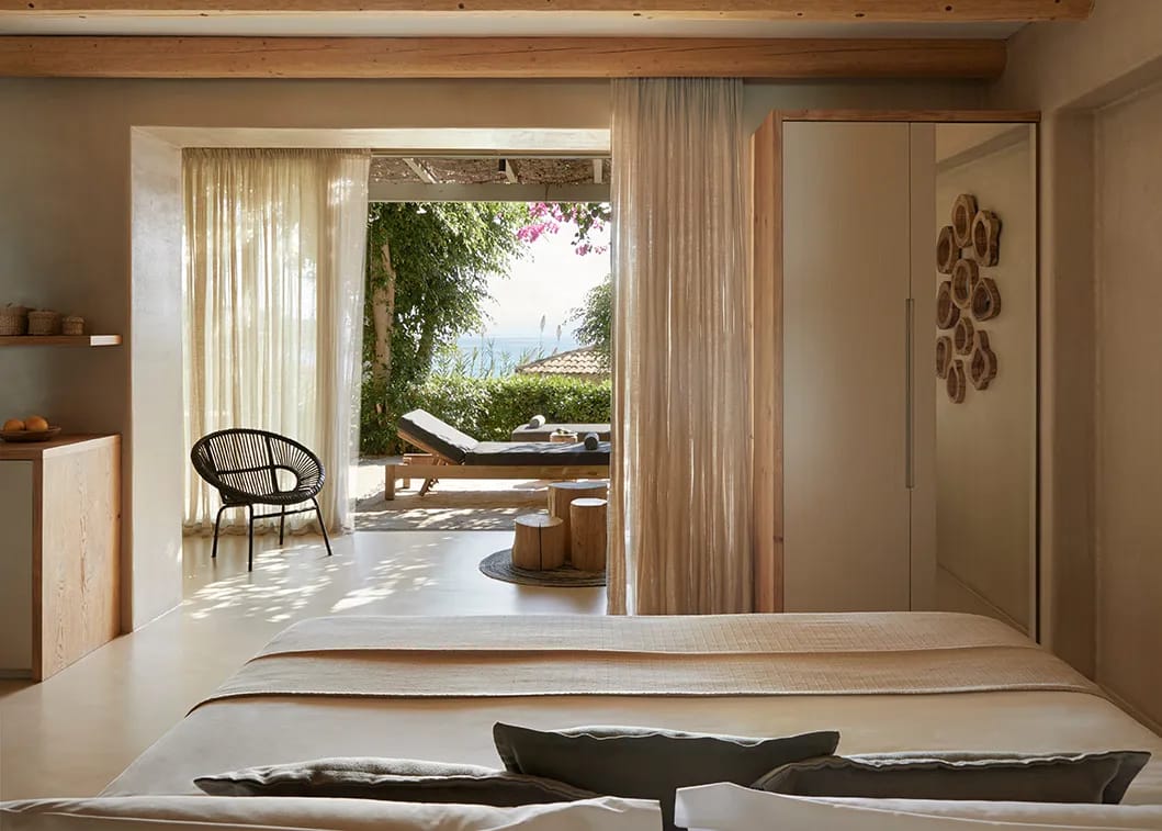 The suites are situated near the ancient ruins and the Acropolis of Rhodes on Monte Smith hill, one of the island’s most important archaeological sites. Guests can easily reach it on foot and enjoy breathtaking panoramic views over the town and the sea—especially beautiful at sunset.