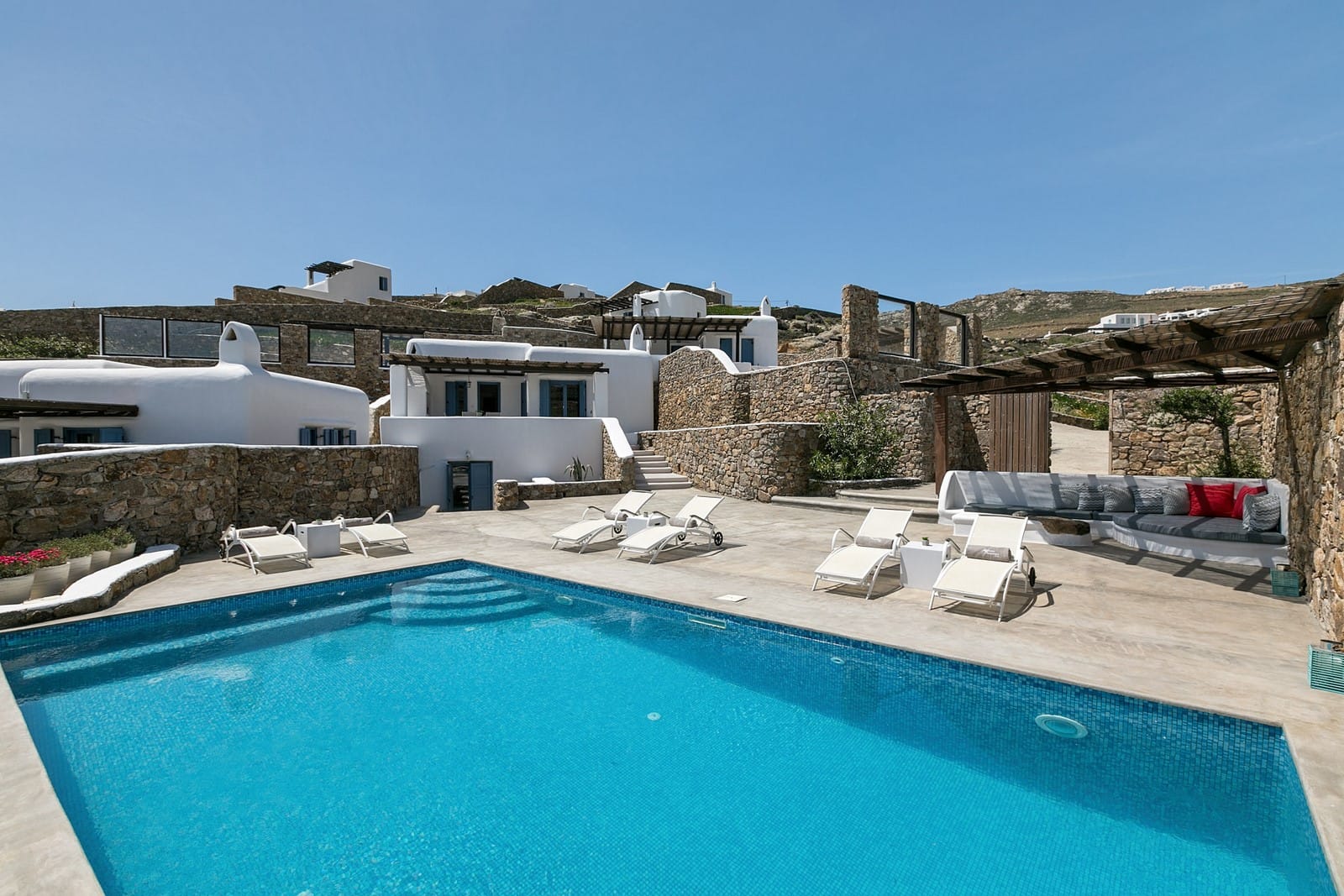 Outside, you’ll find a private garden and a lovely patio with outdoor furniture, where you can relax, eat, or enjoy the fresh air. The private pool and unheated jacuzzi make it easy to have fun or just unwind in the sun.