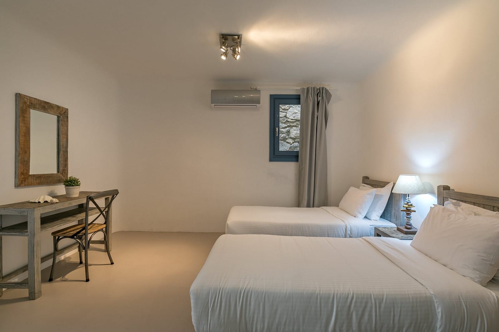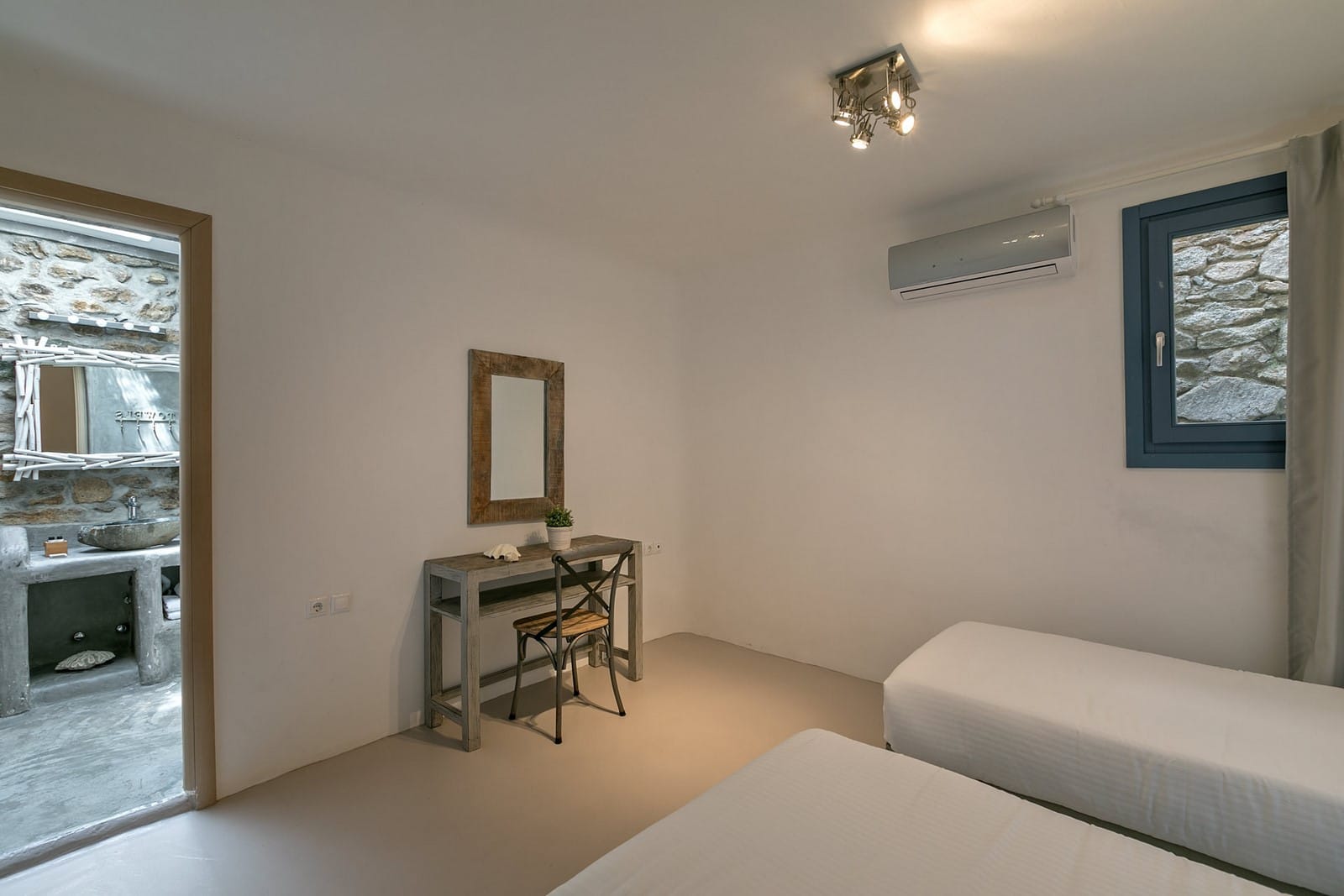 The villa has 3 lovely bedrooms. One bedroom has a double bed and a view of the road. The second bedroom also has a double bed, with a nice view of the hills. The third bedroom has two single beds, perfect for kids or friends. All rooms are bright and welcoming.