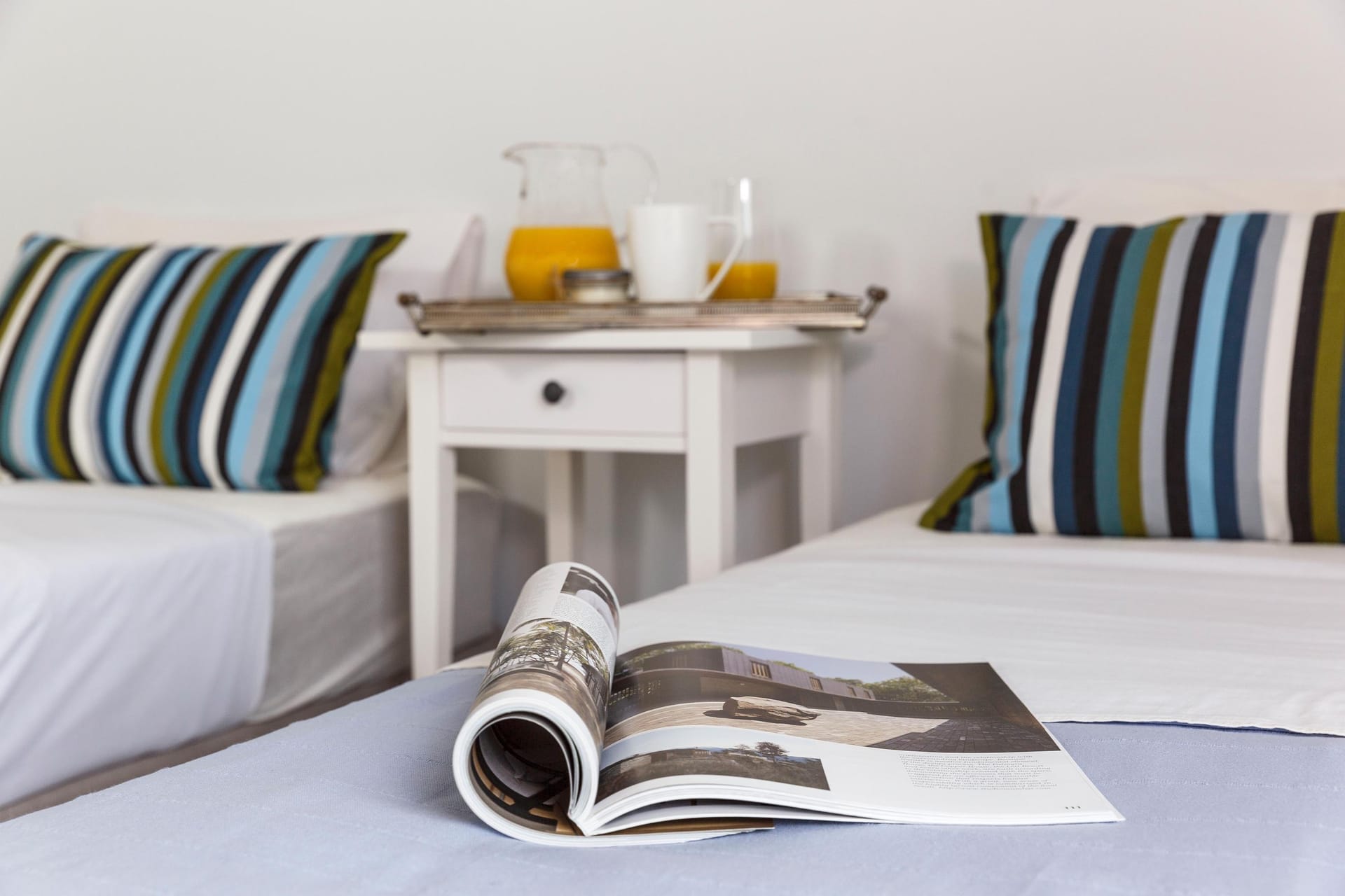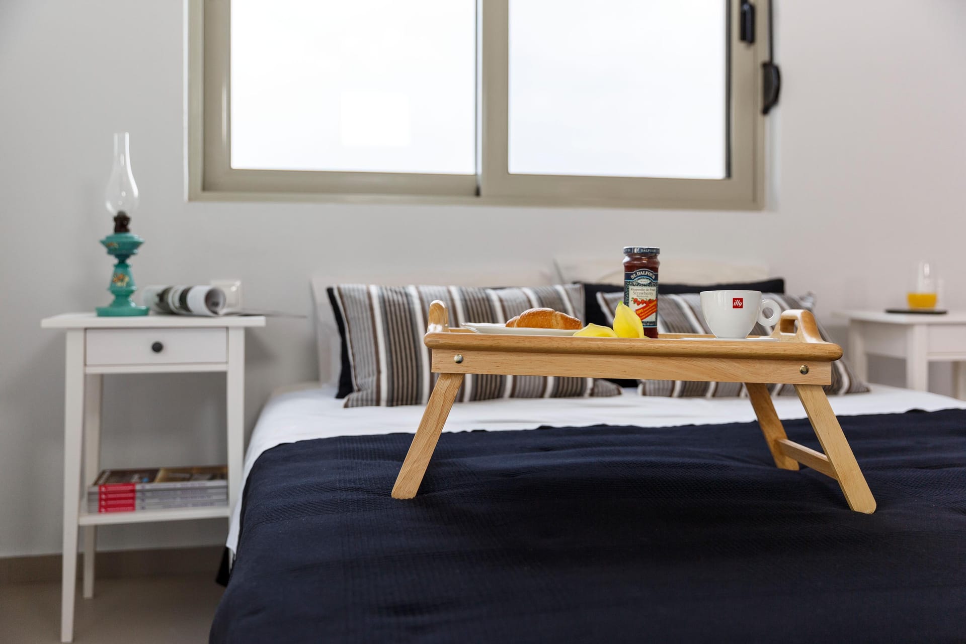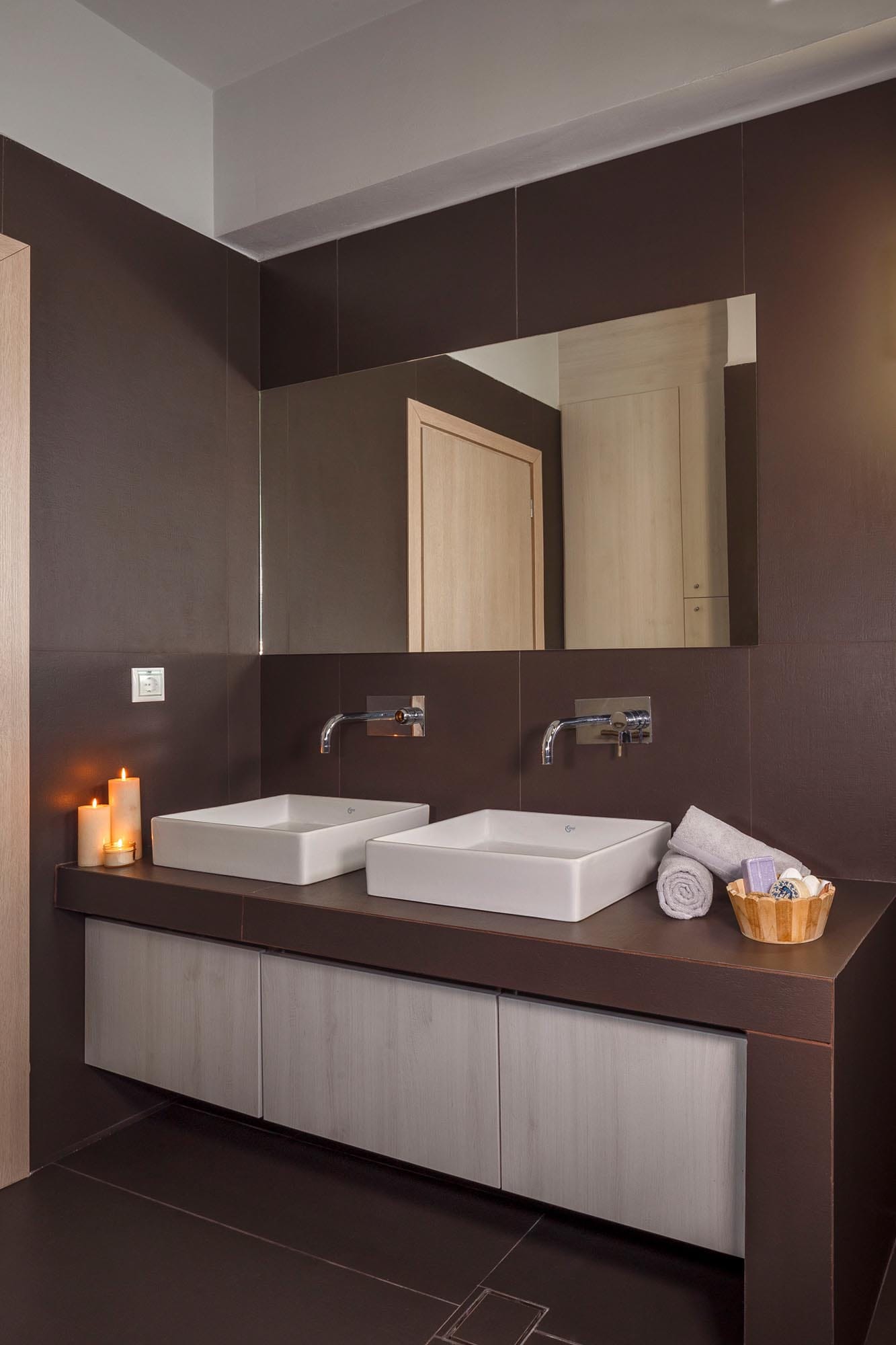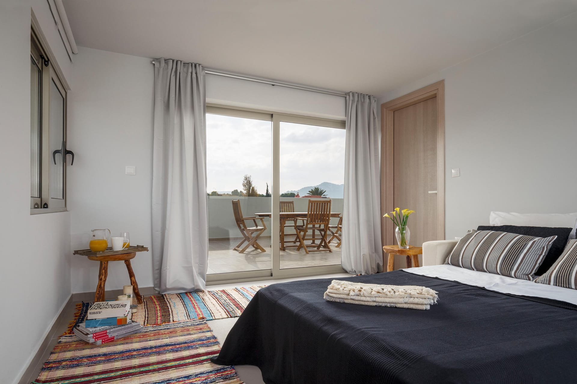 Thalassa Luxury Villa conveniently accommodates up to 8 guests. The villa features three fully air-conditioned bedrooms on the first floor: one double-bedded room and two bedrooms with twin beds (which can be converted into double beds upon request). Additionally, there is a bedroom on the second floor with a comfy double sofa bed. The double-bedded room includes an ensuite bathroom with a shower, while there are two more bathrooms available, one with a bathtub and the other with a shower.