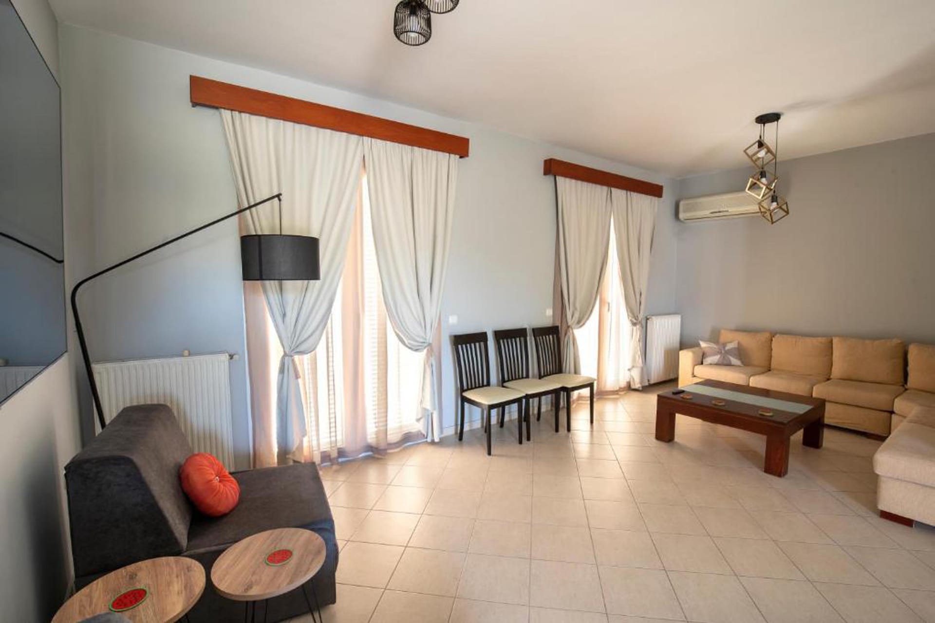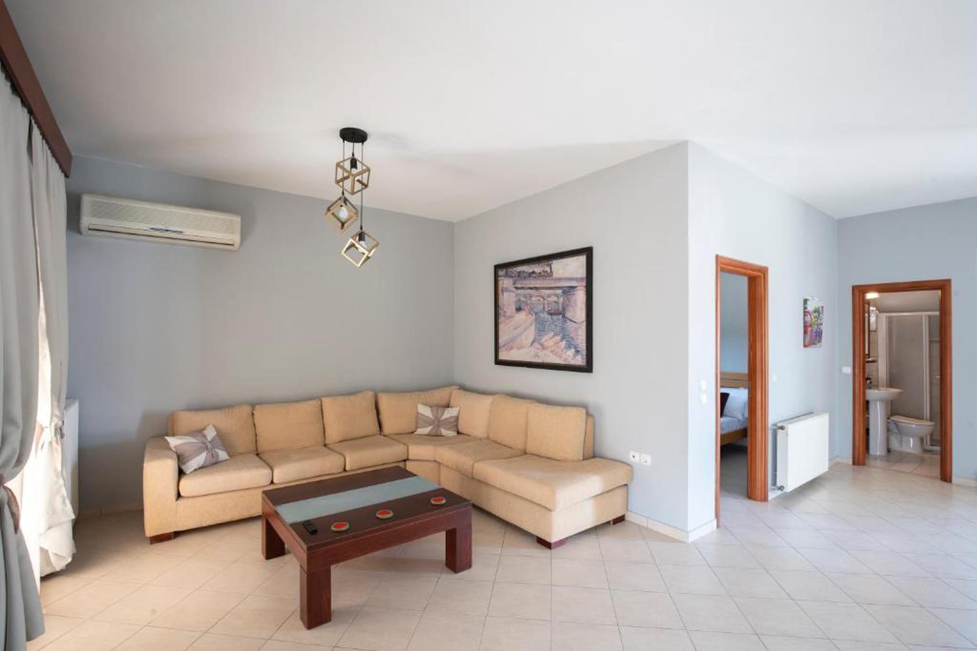 Step into Villa Emerald, your tranquil haven accommodating up to 10 guests. This charming retreat boasts four air-conditioned bedrooms: two with cozy double beds and two with comfortable single beds. With two bathrooms offering both bathtub and shower facilities, convenience is assured. Relax in the spacious living room, complete with a Smart TV and two single sofa beds for additional guests.
