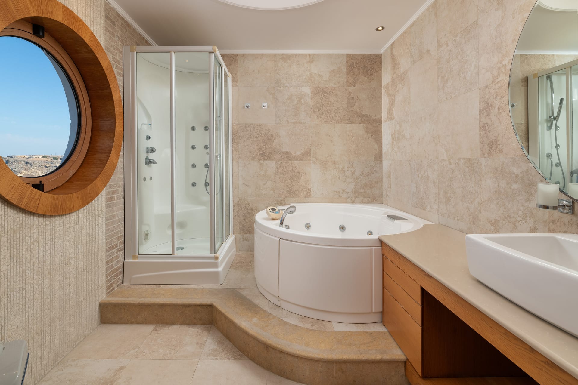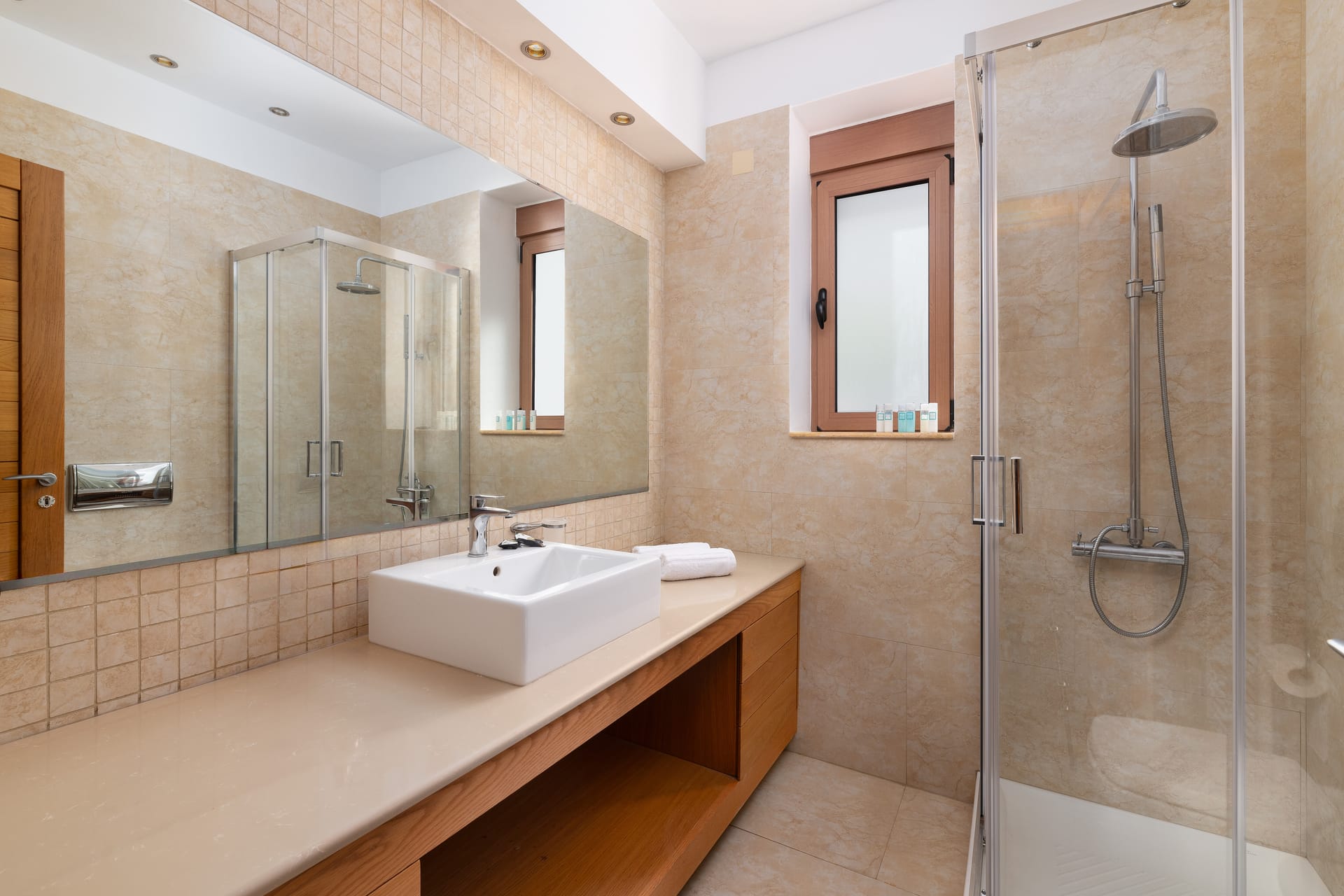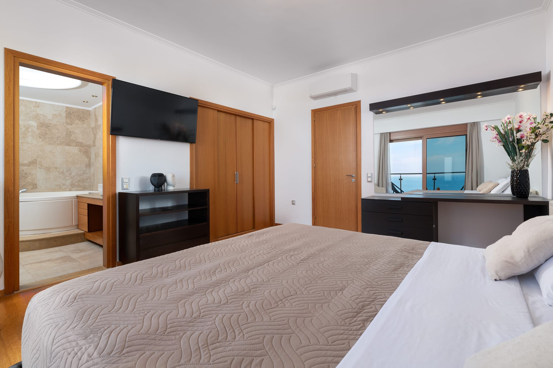 The villa features five tastefully designed bedrooms—four with double beds and one with two single beds. The master suite offers an ensuite bathroom complete with a luxurious jacuzzi and hammam, ideal for ultimate relaxation.